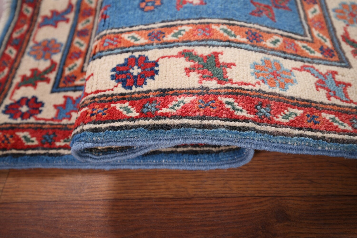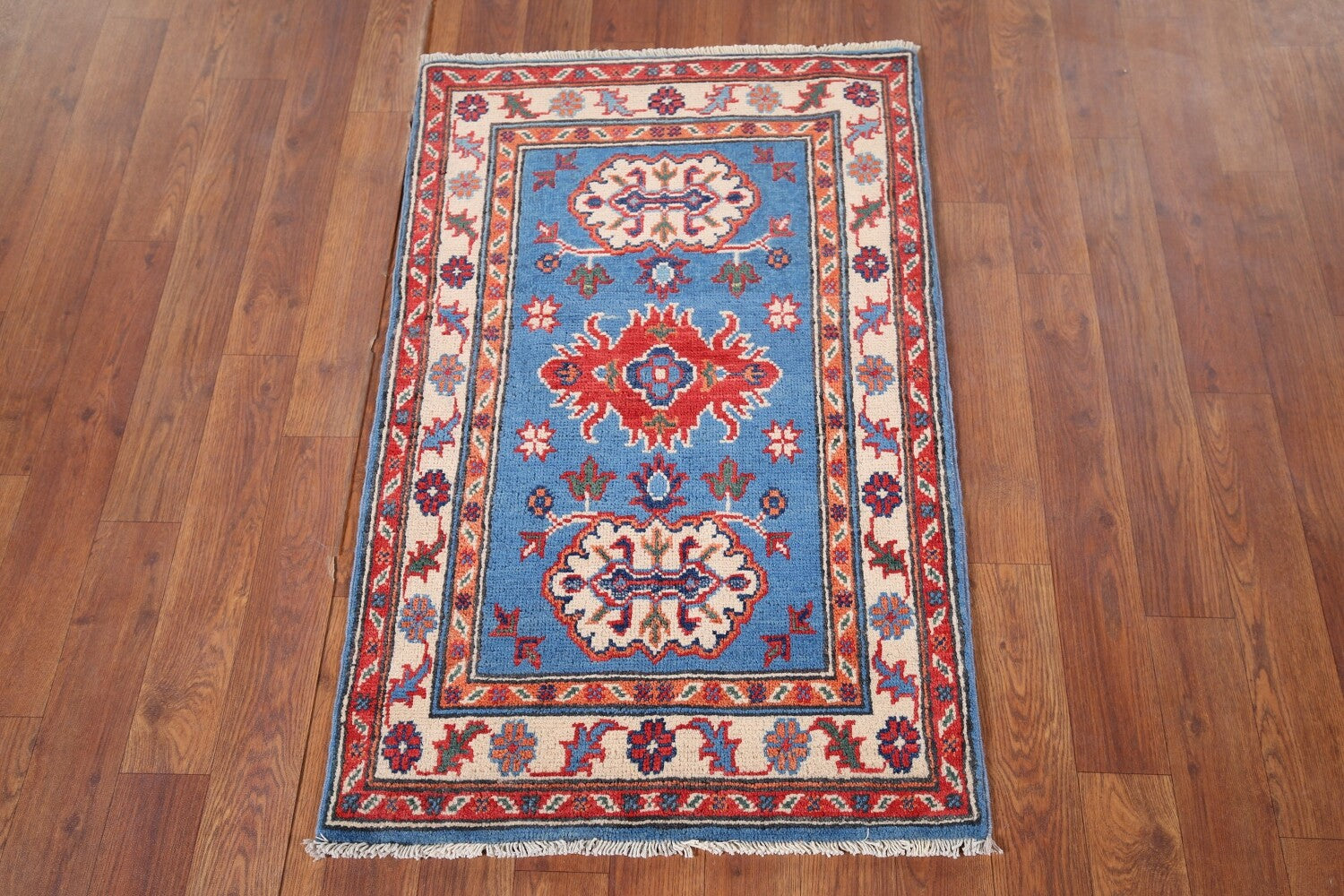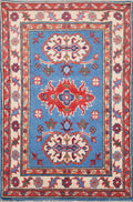 Blue Handmade Kazak Wool Foyer Rug 2x3