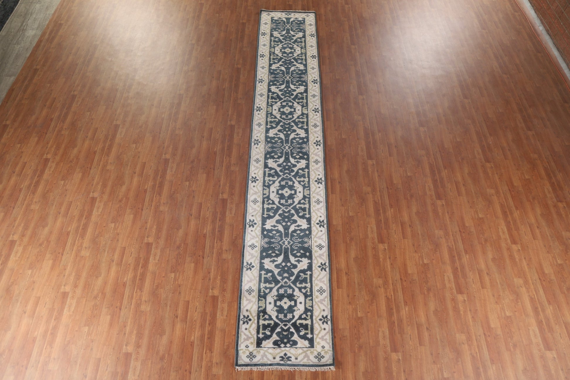 Blue Handmade Oushak Indo Runner Rug 3x16