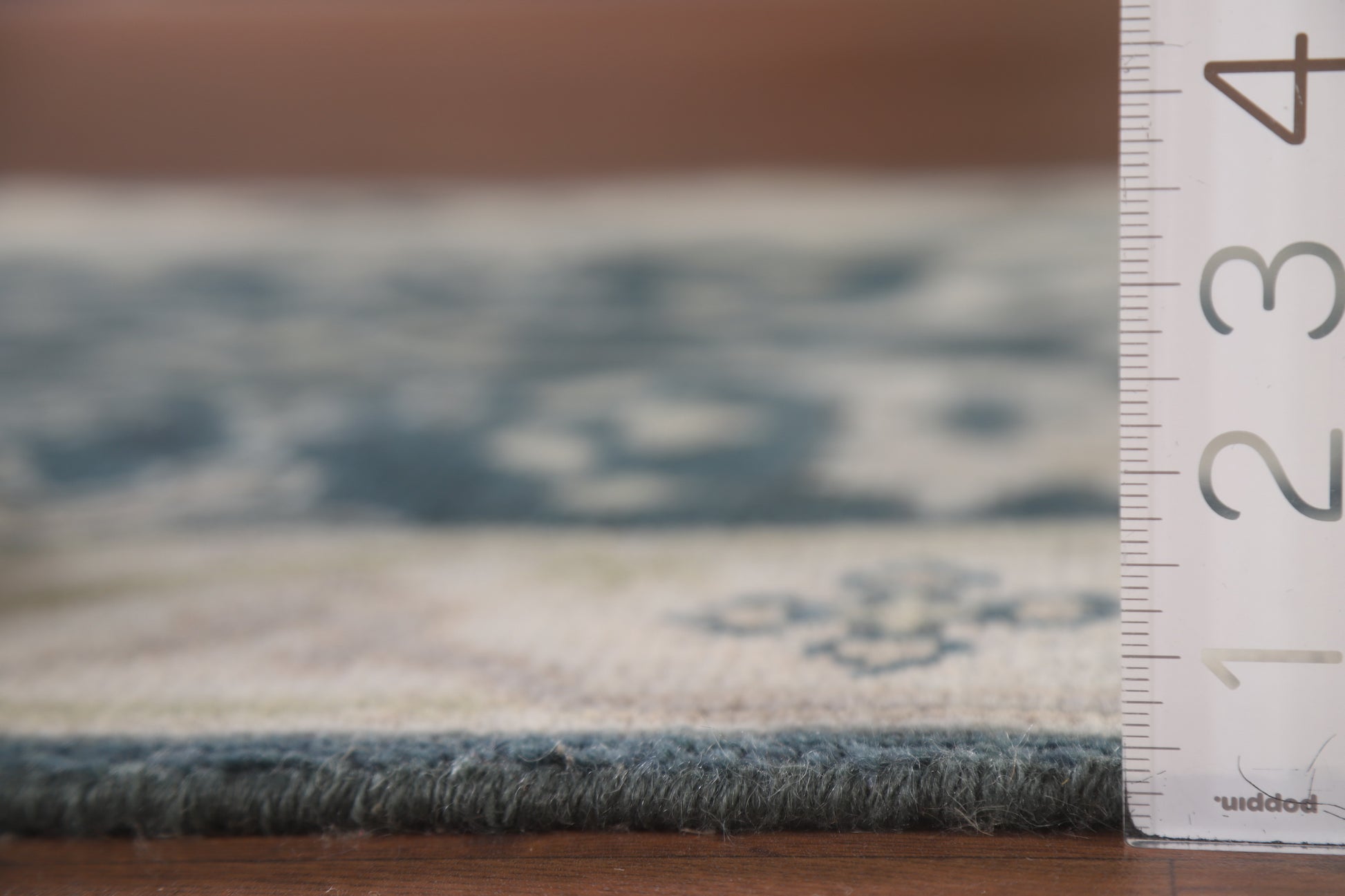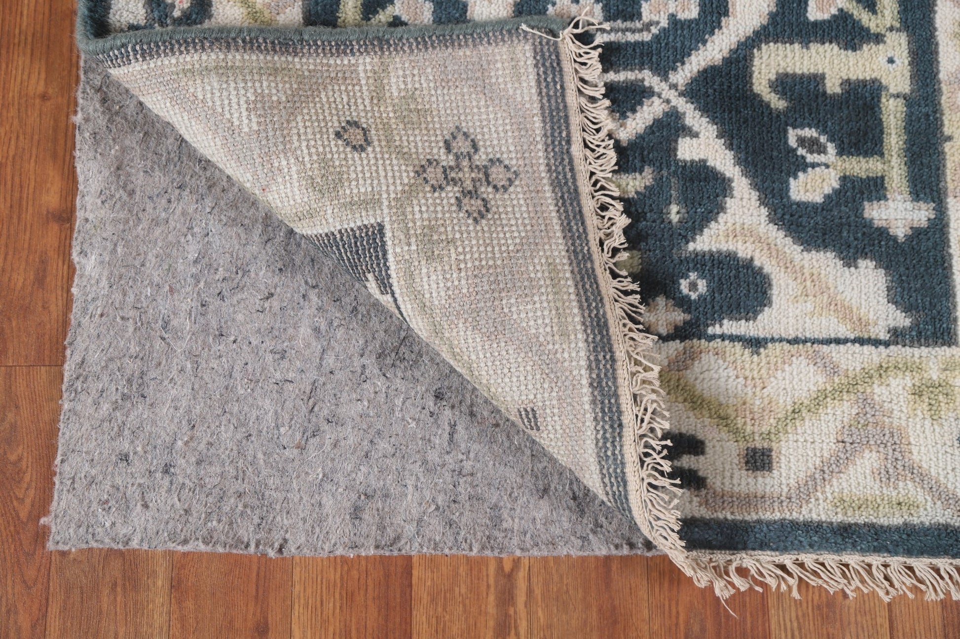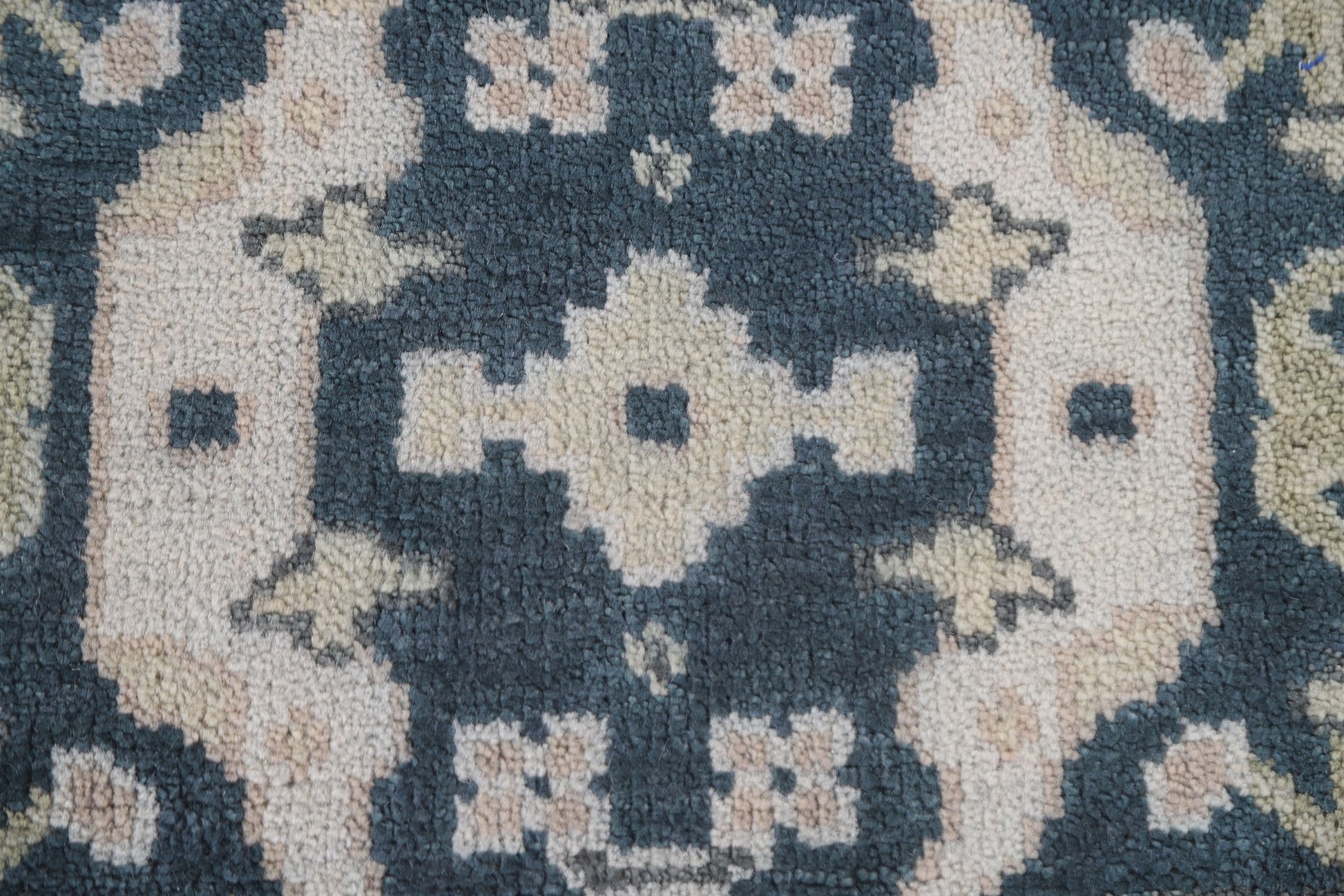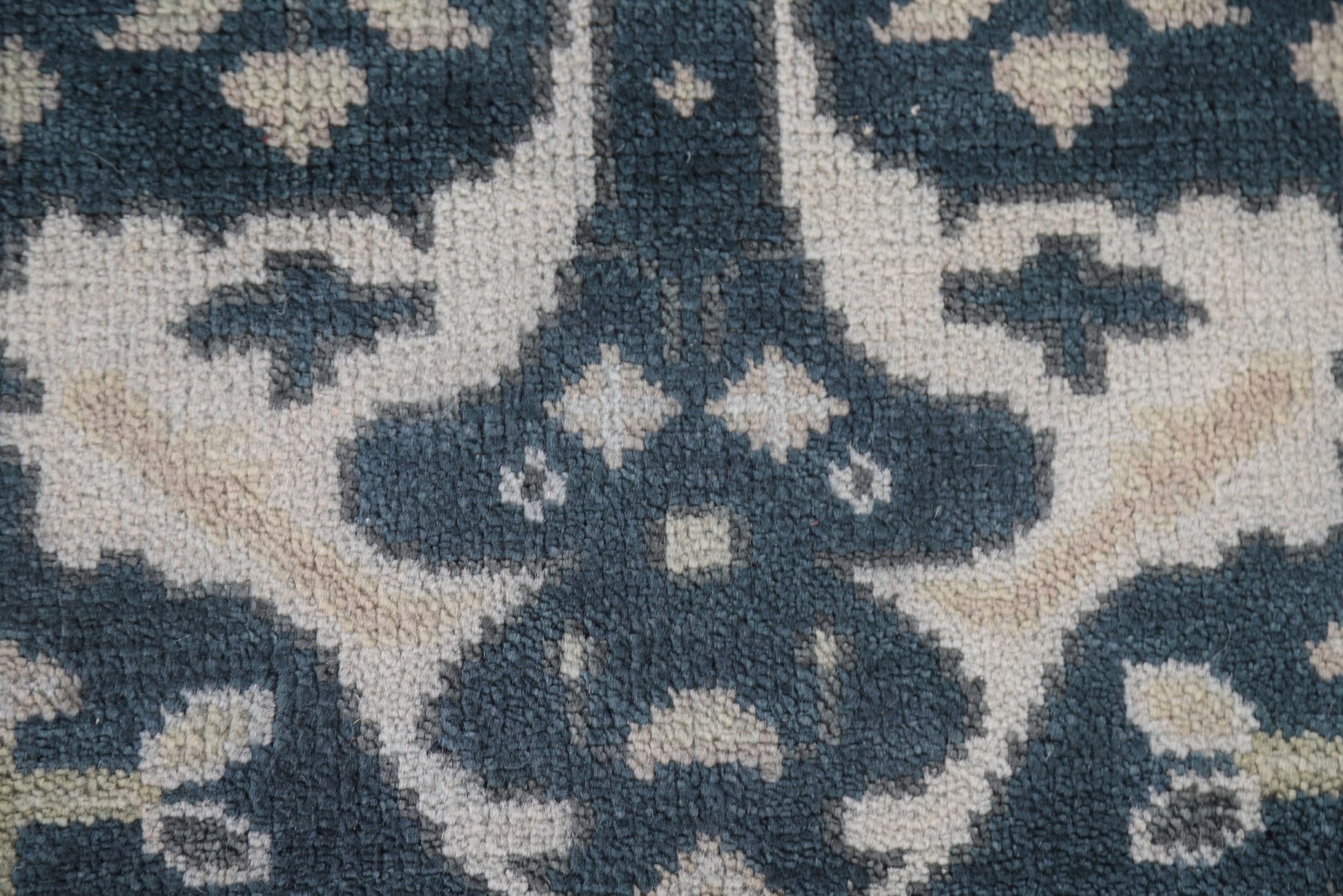 A Beautiful Genuine India Oushak rug is Hand Knotted by skillful weavers in India with 100% Wool Material. This rug is in New, First Quality condition. dimensions are 15' 11'' X 2' 8'' in foot and 485 X 81 in centimeter. the primary color is Navy Blue & Blues.