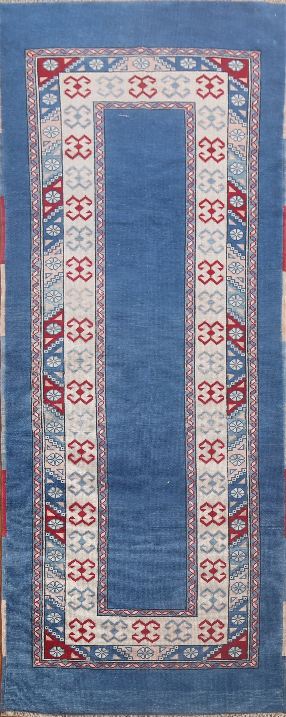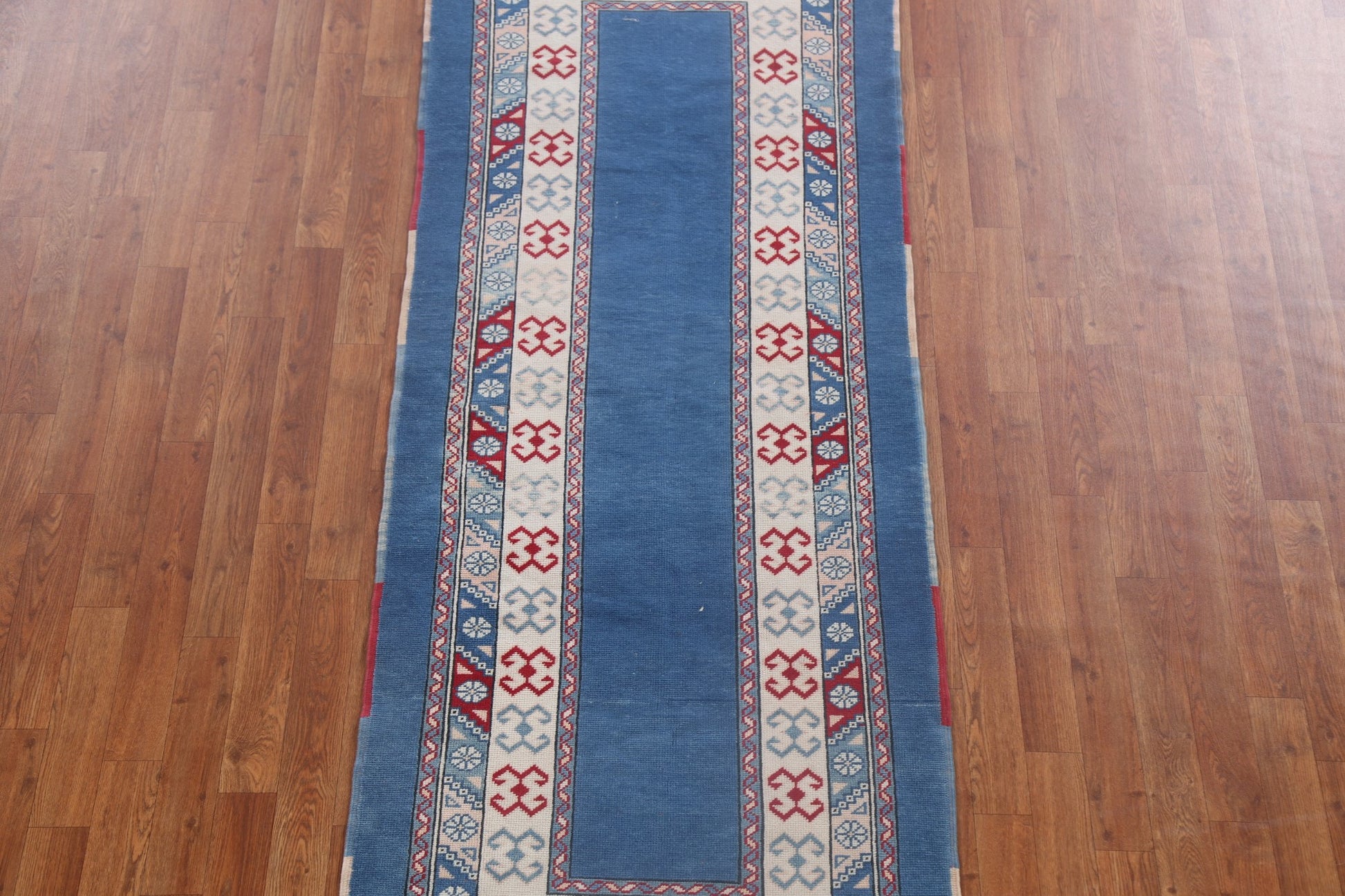 Blue Handmade Oushak Turkish Runner Rug 3x8