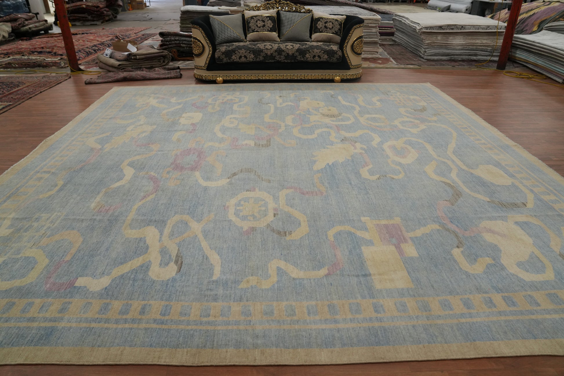 Blue Handmade Ziegler Vegetable Dye Large Rug 15x15