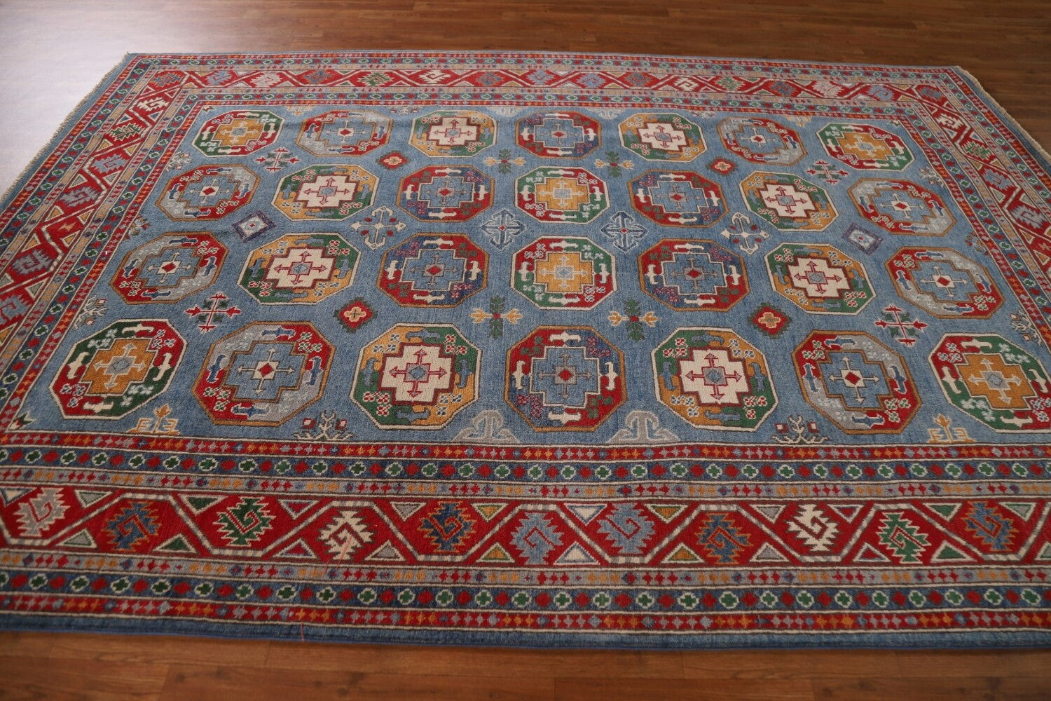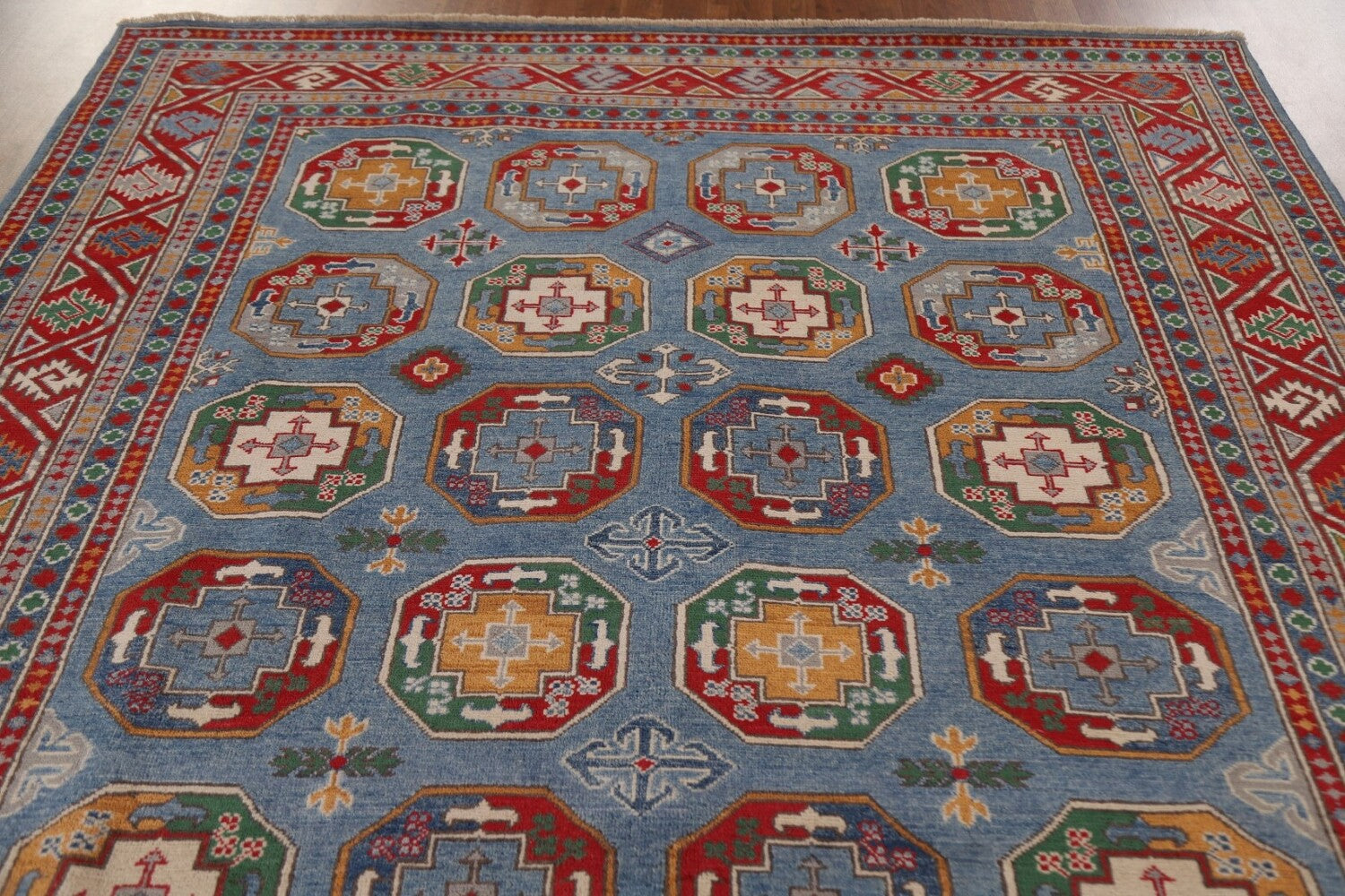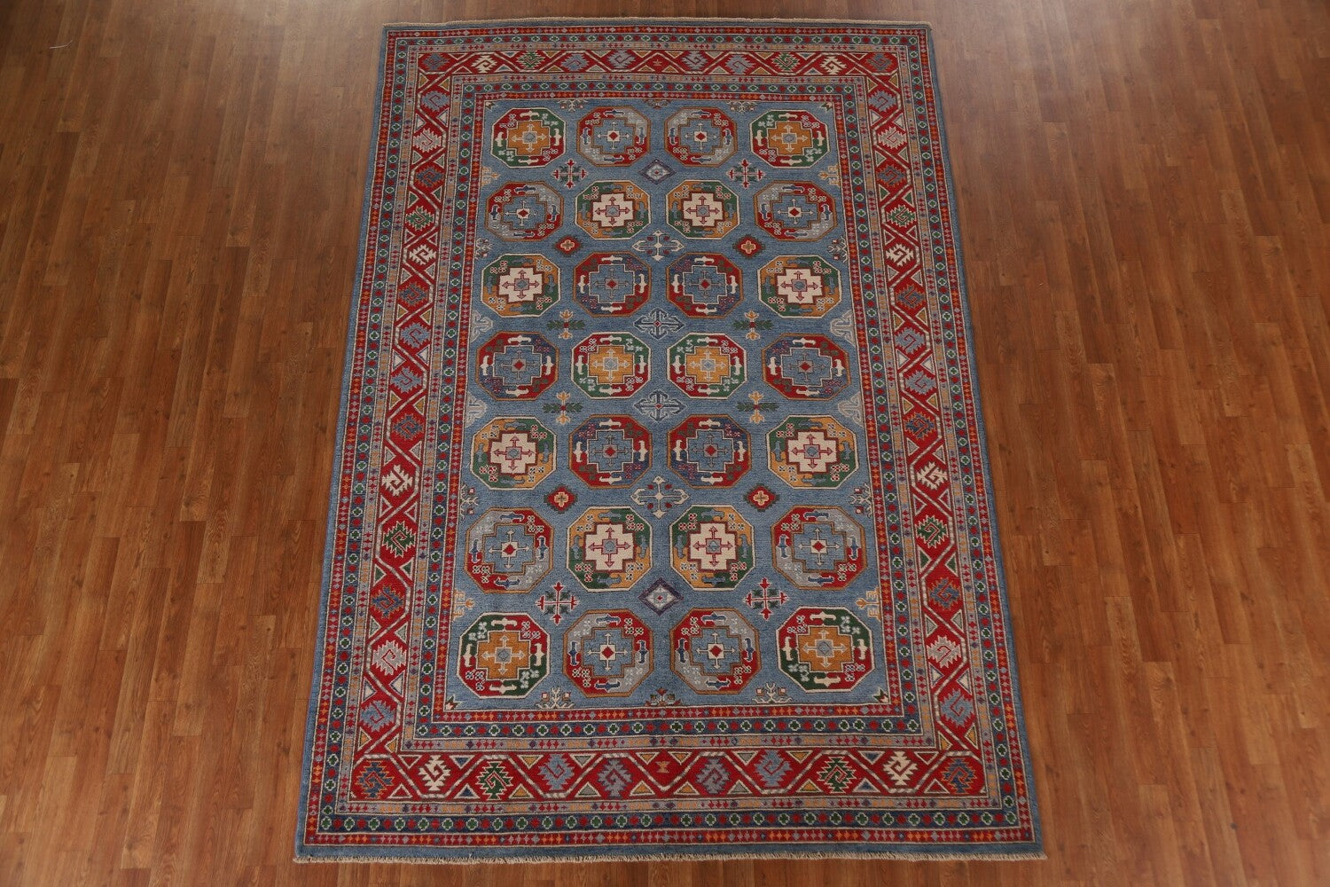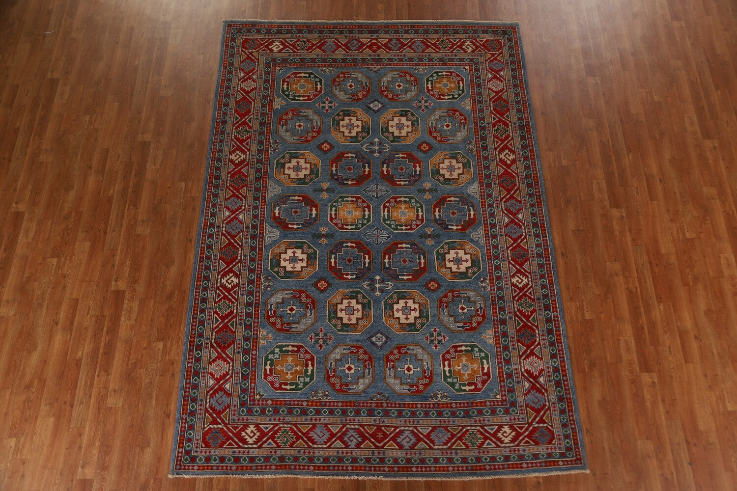 Blue Kazak Geometric Area Rug 7x10
