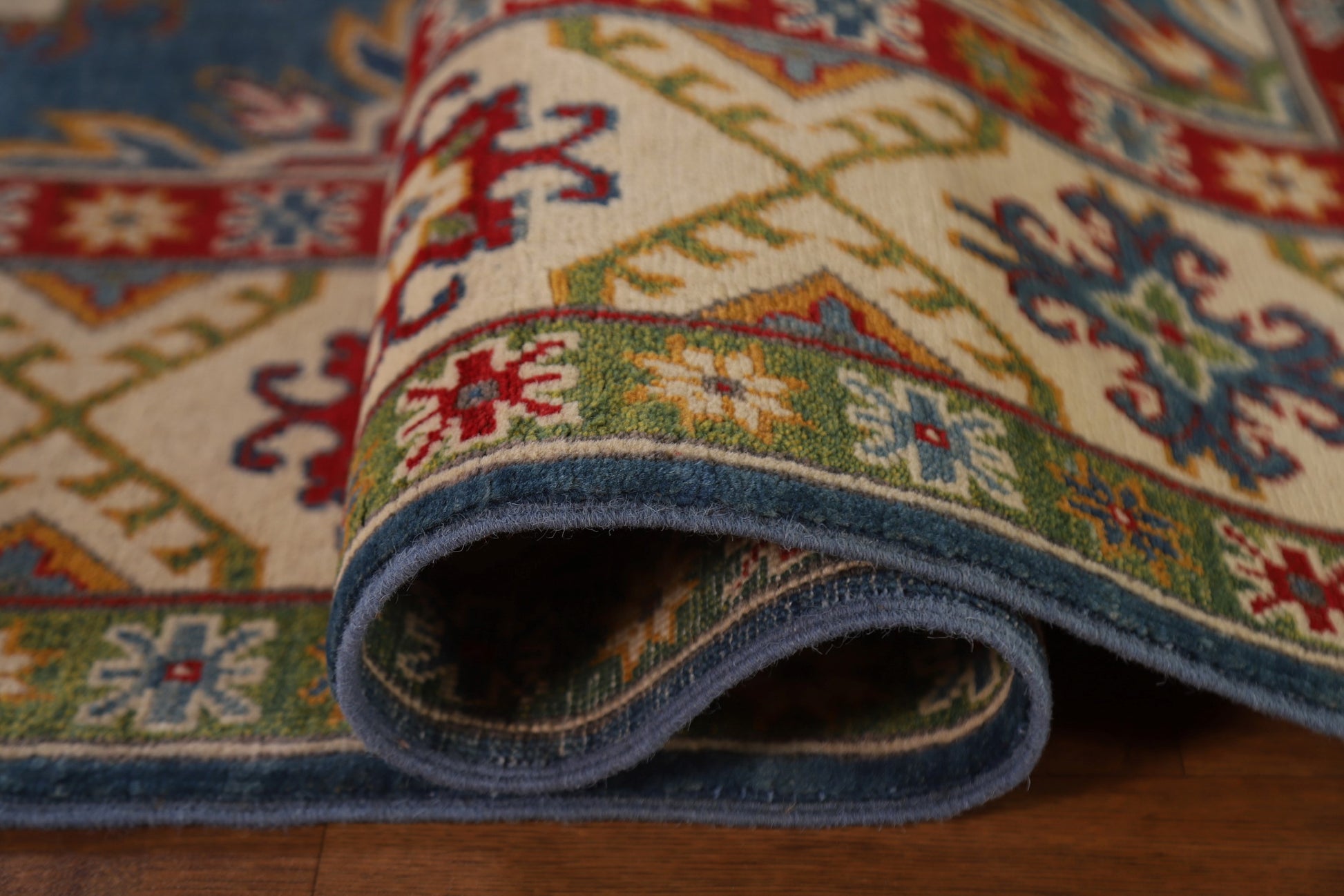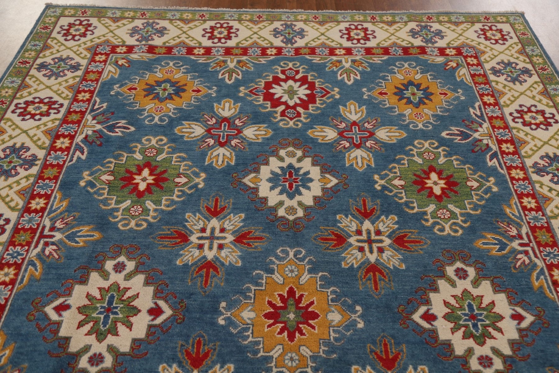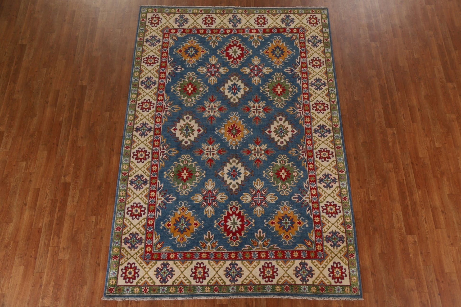 Blue Kazak Geometric Area Rug 7x10