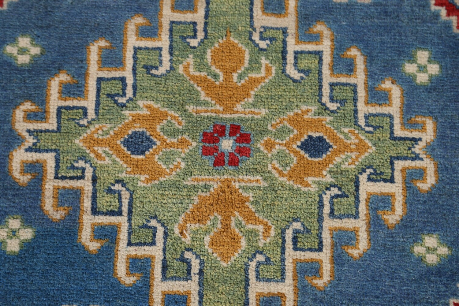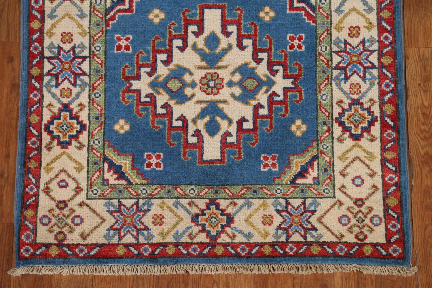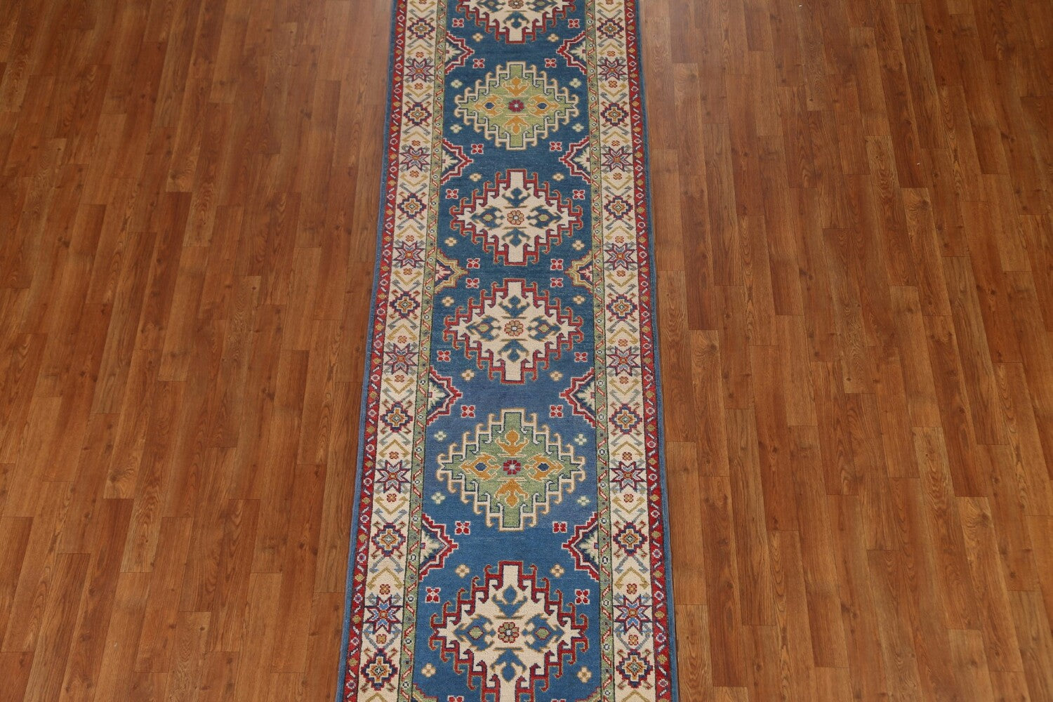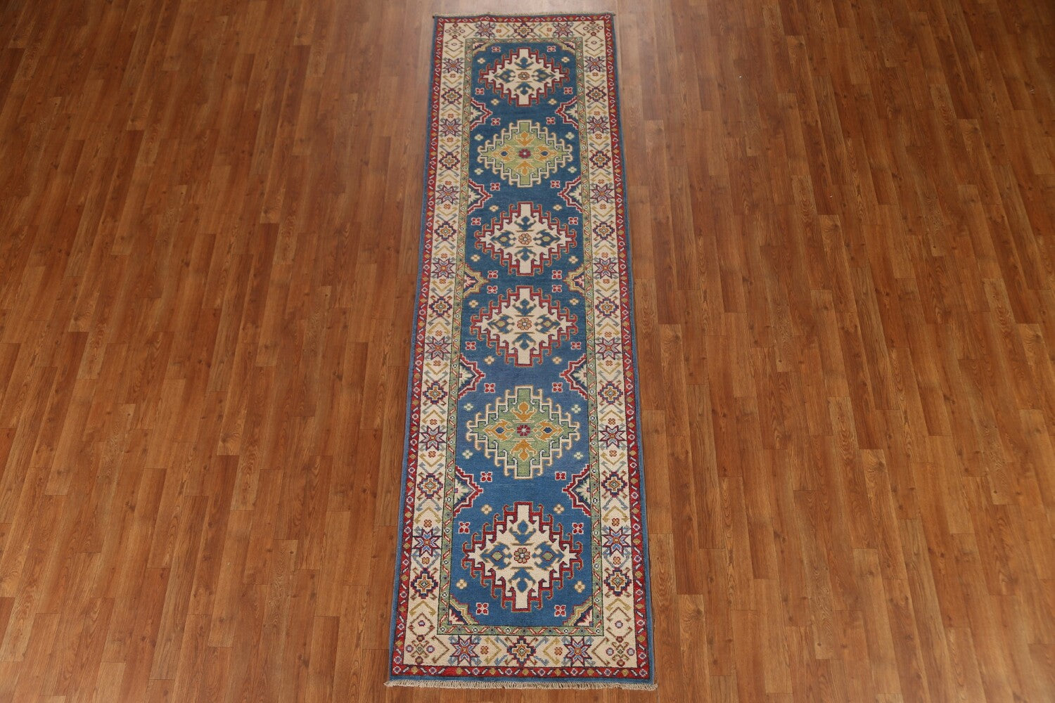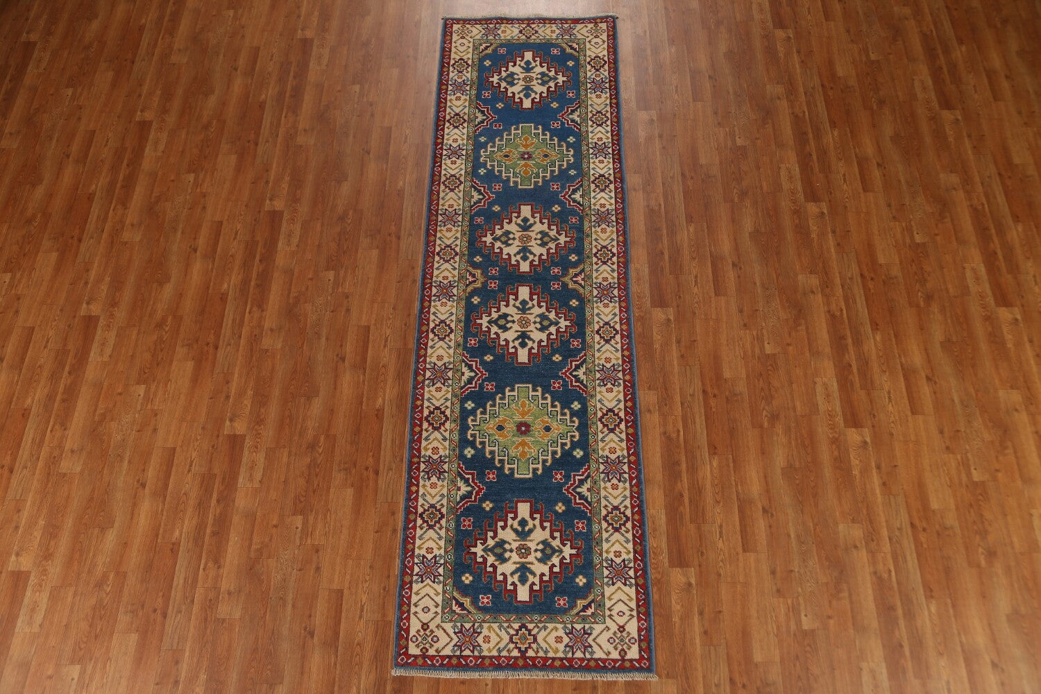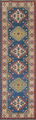 Blue Kazak Geometric Runner Rug 3x10
