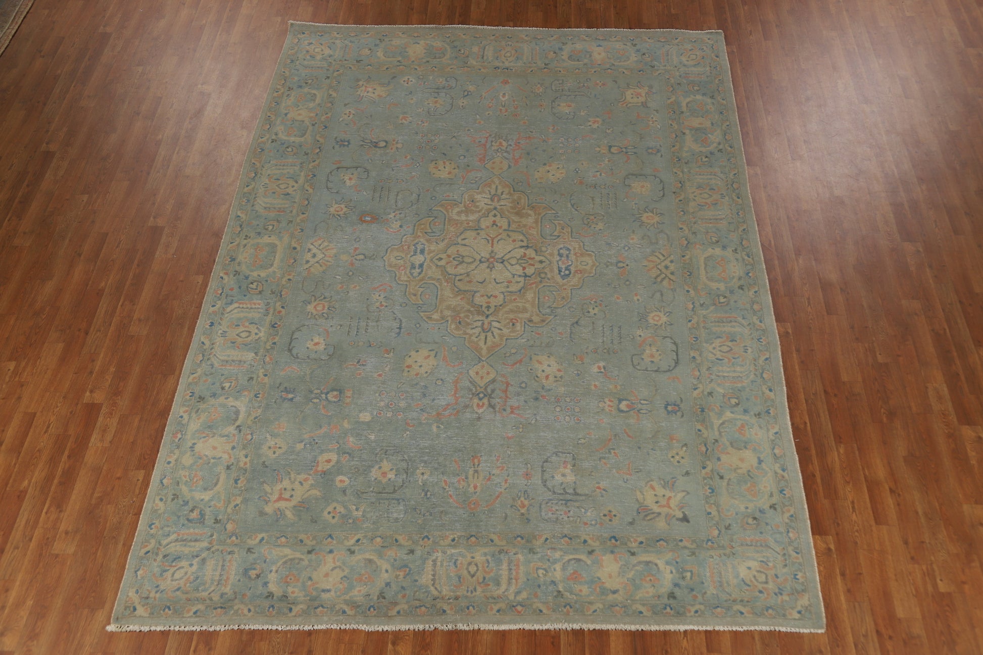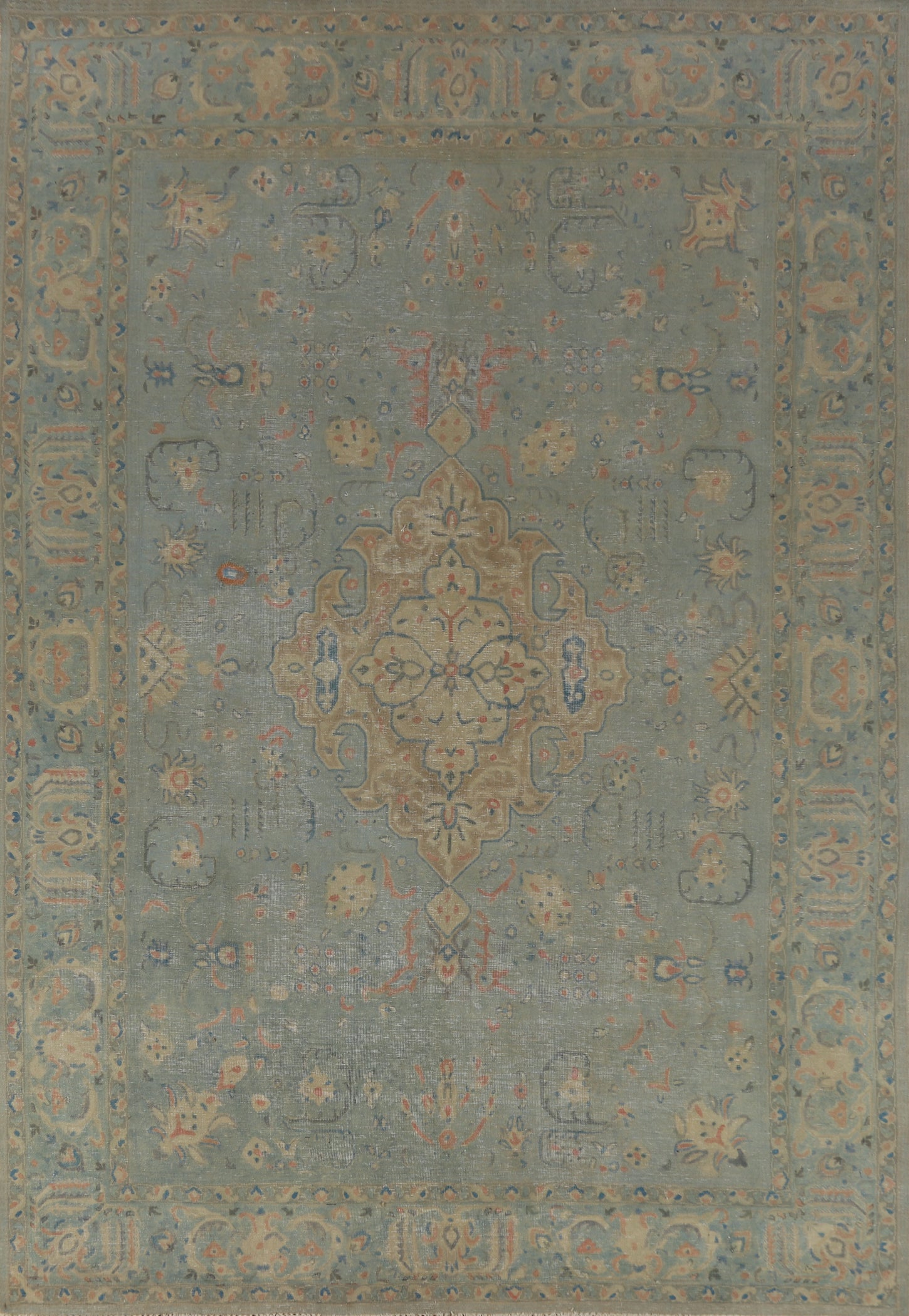 Blue Medallion Wool Tabriz Persian Area Rug 8x12
