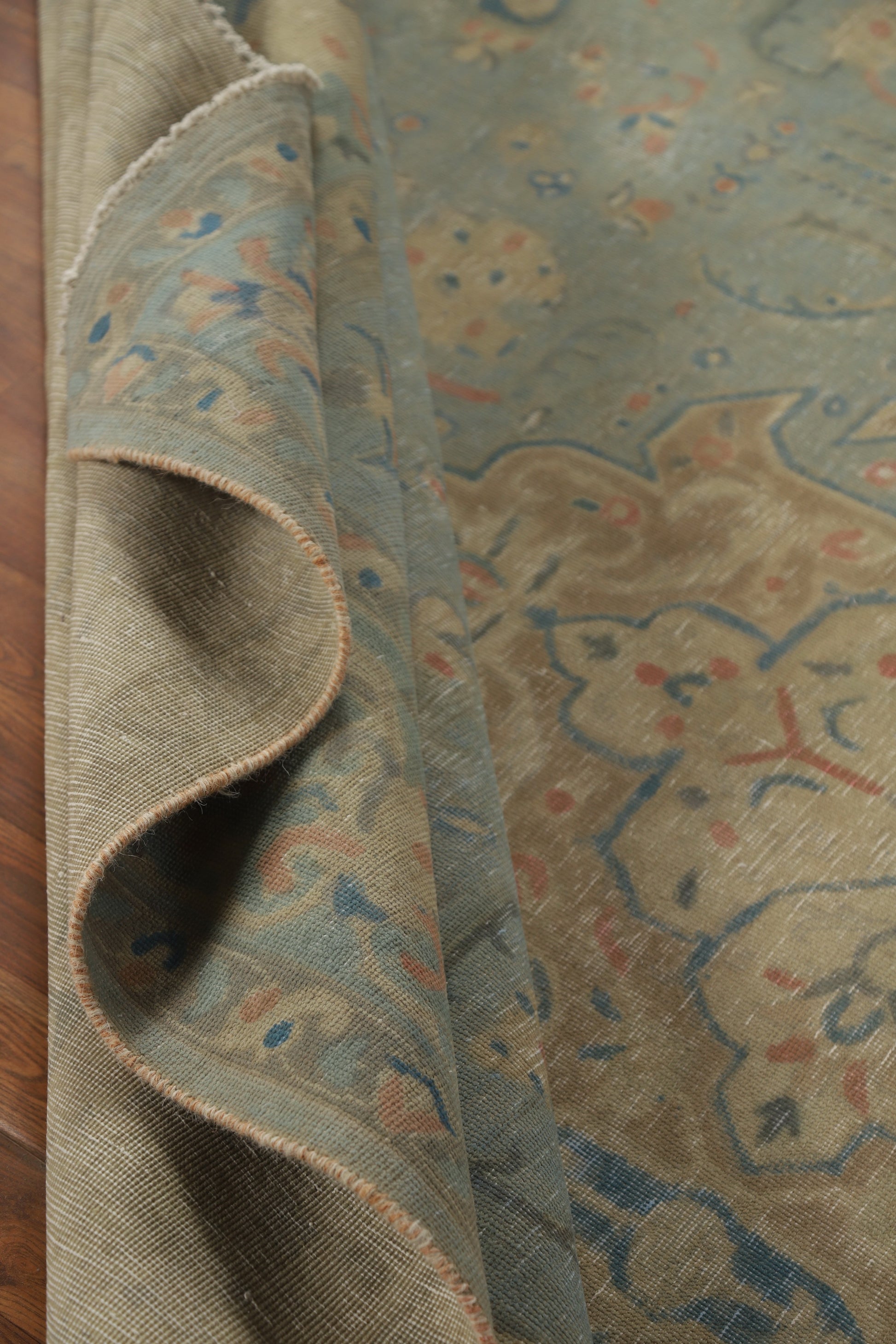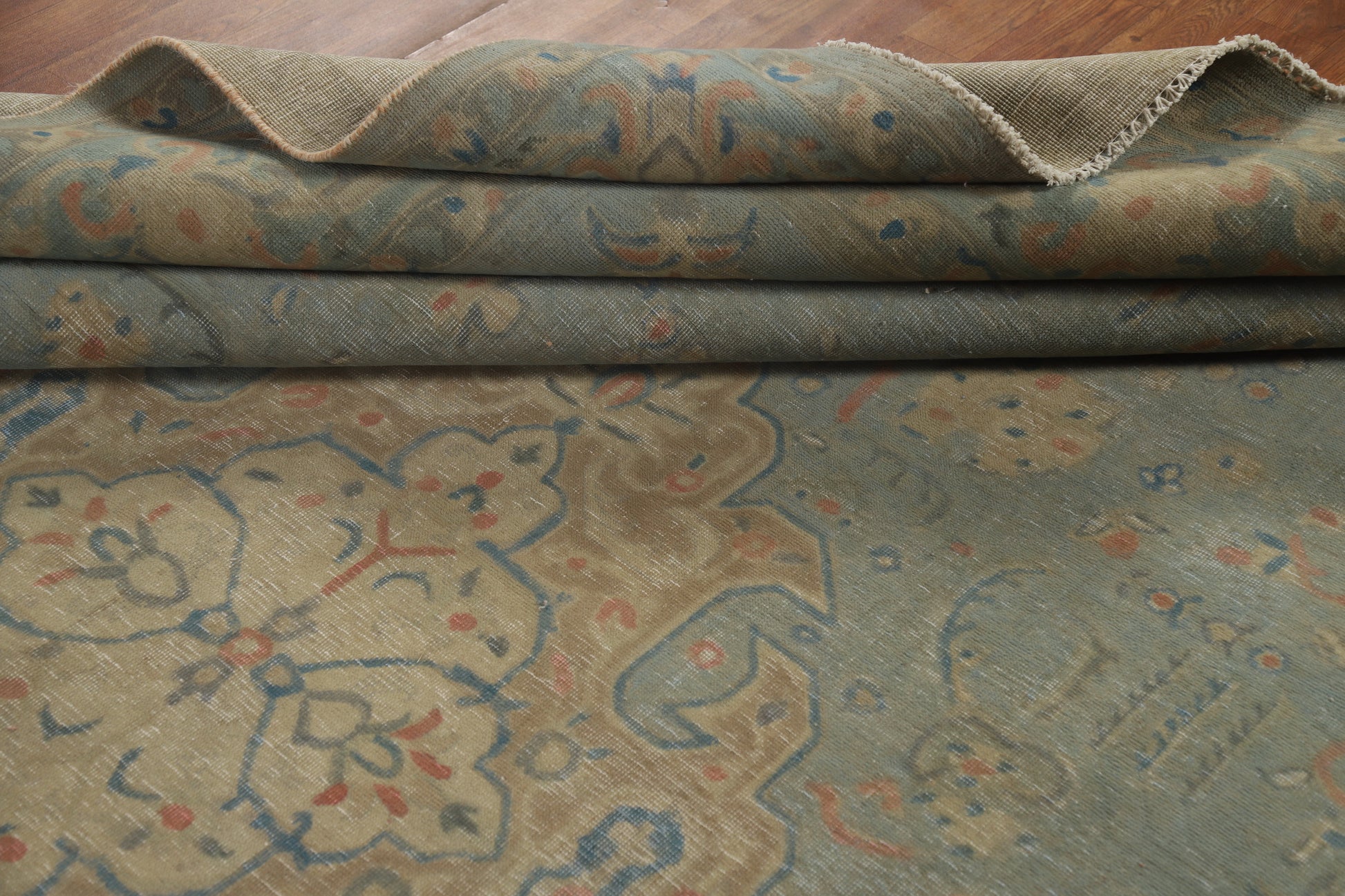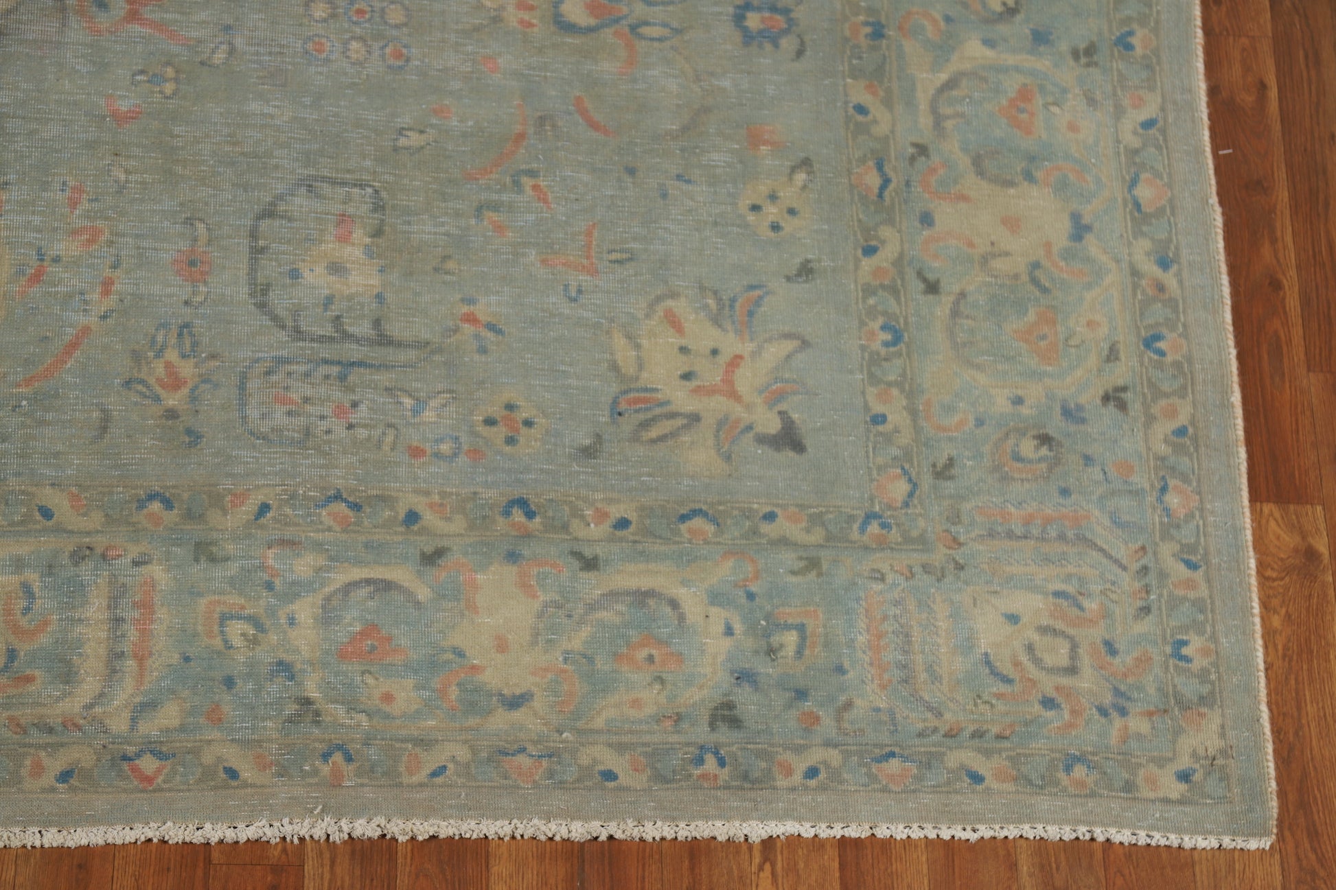 A Beautiful Genuine Persia ( Persia ) Tabriz rug is Hand Knotted by skillful weavers in Persia ( Persia ) with 100% Wool Material. This rug is in Very Good ( Evenly Low Pile-Repair) condition. dimensions are 11' 7'' X 8' 3'' in foot and 353 X 251 in centimeter. the primary color is Navy Blue & Blues.