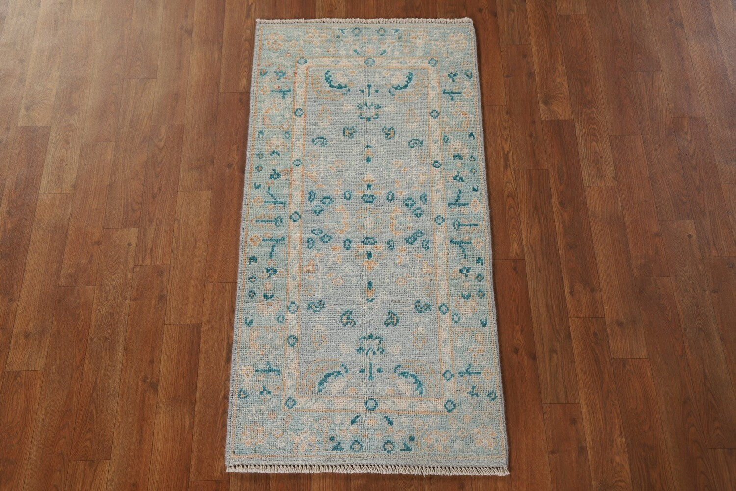 Blue Oushak Vegetable Dye Turkish Foyer Rug 2x4