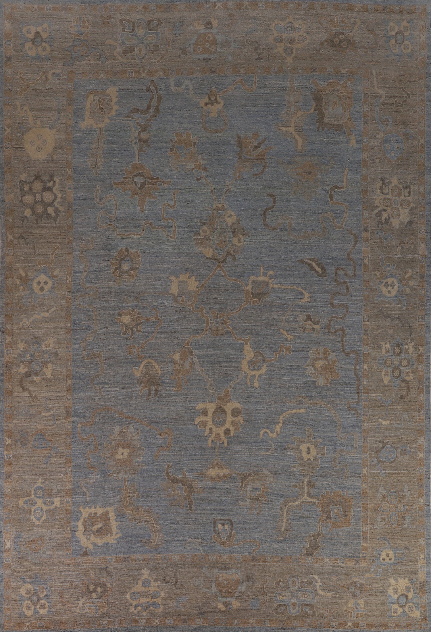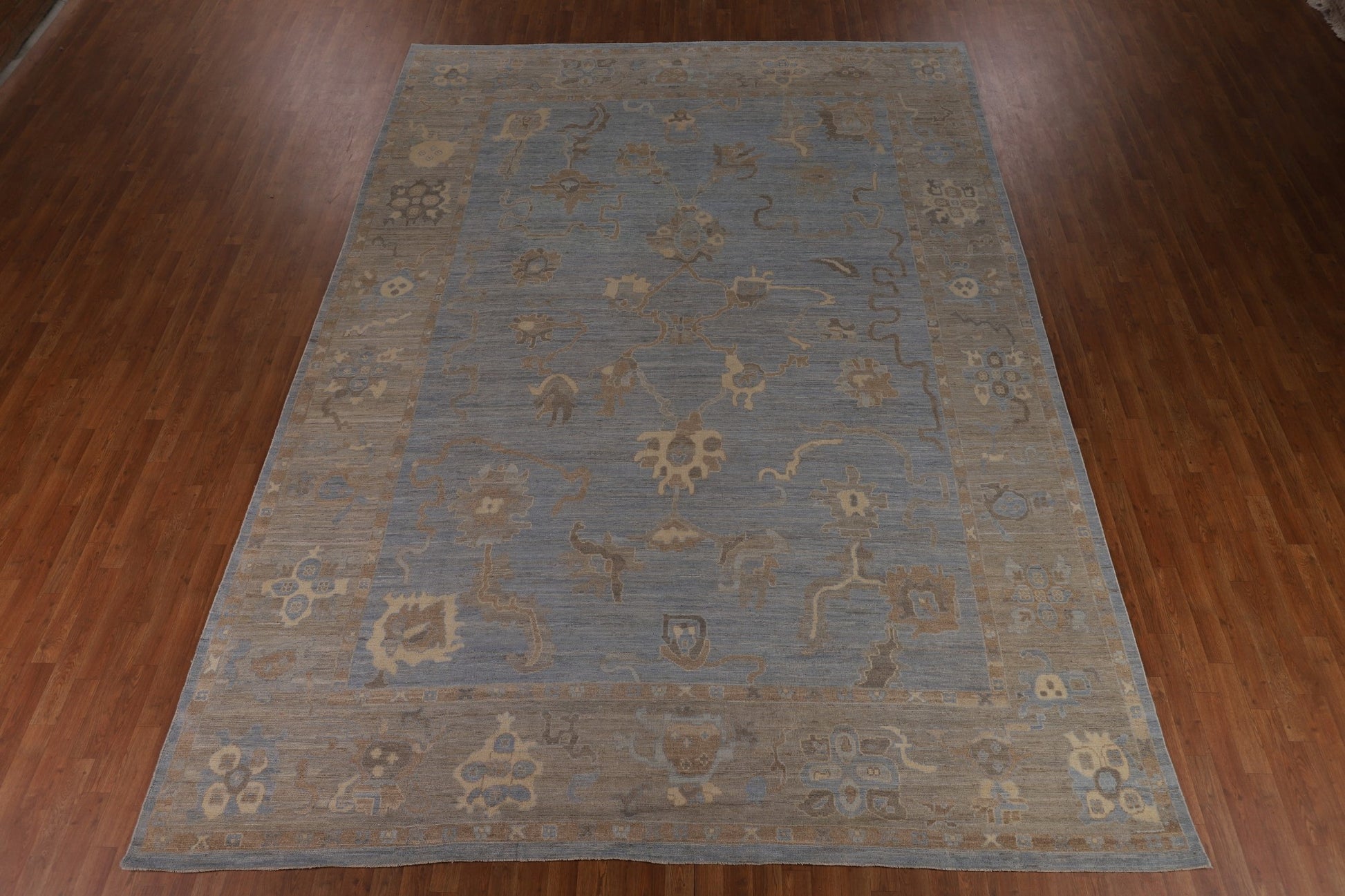 Blues & Grays Oushak Vegetable Dye Turkish Large Rug 10x14
