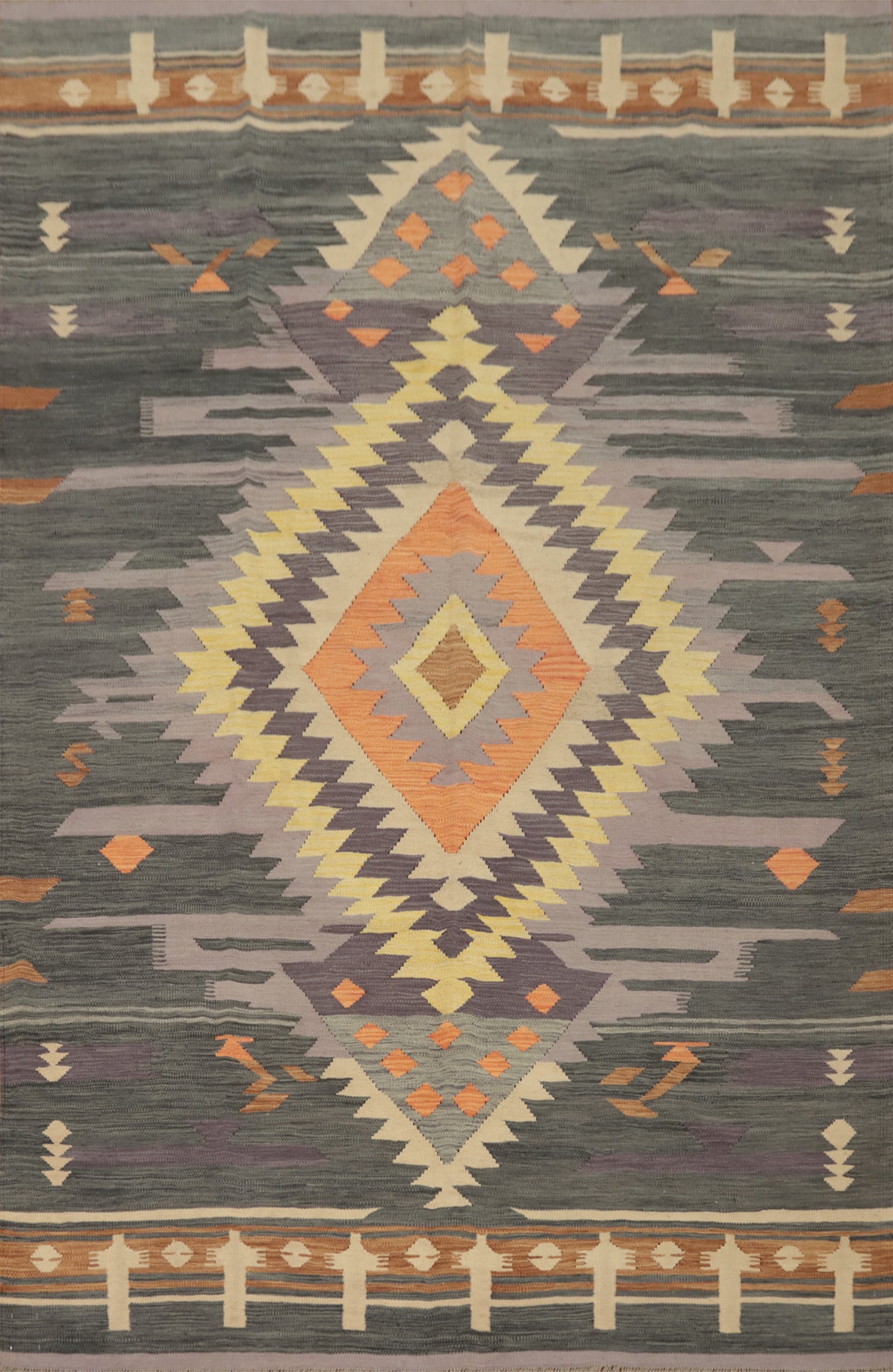 Bold Geometric Design Earthy Southwestern Kilim Rug 7x10