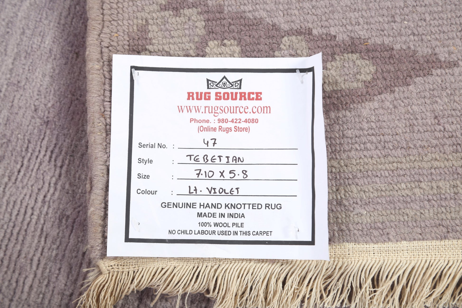 A Beautiful Genuine India Nepal ( Tibetan ) rug is Hand Knotted by skillful weavers in India with 100% Wool Material. This rug is in New, First Quality condition. dimensions are 7' 10'' X 5' 8'' in foot and 239 X 173 in centimeter. the primary color is Purples.