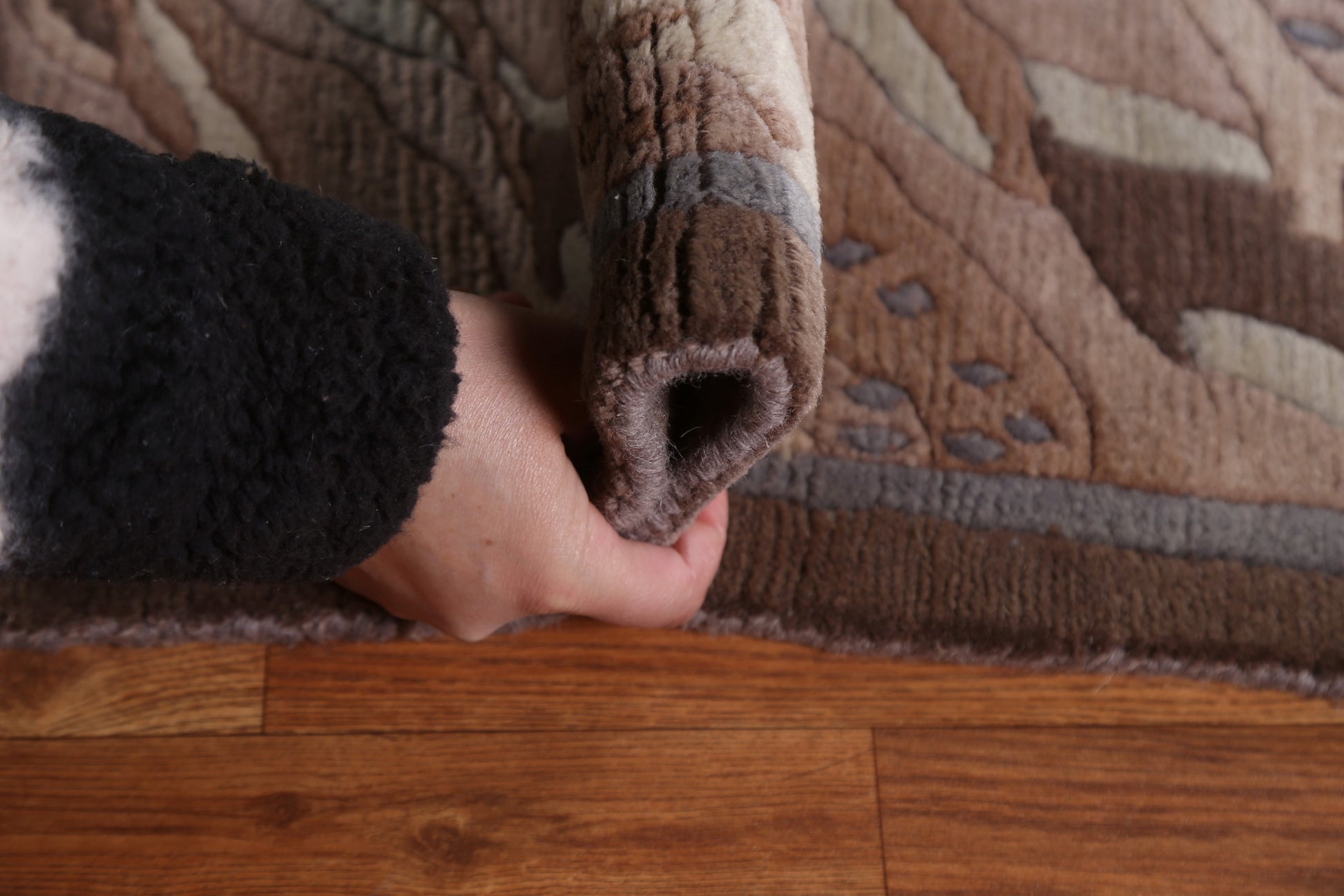 A Beautiful Genuine India Nepalese rug is Hand Knotted by skillful weavers in India with 100% Wool Material. This rug is in New, First Quality condition. dimensions are 8' 0'' X 5' 8'' in foot and 244 X 173 in centimeter. the primary color is Brown.