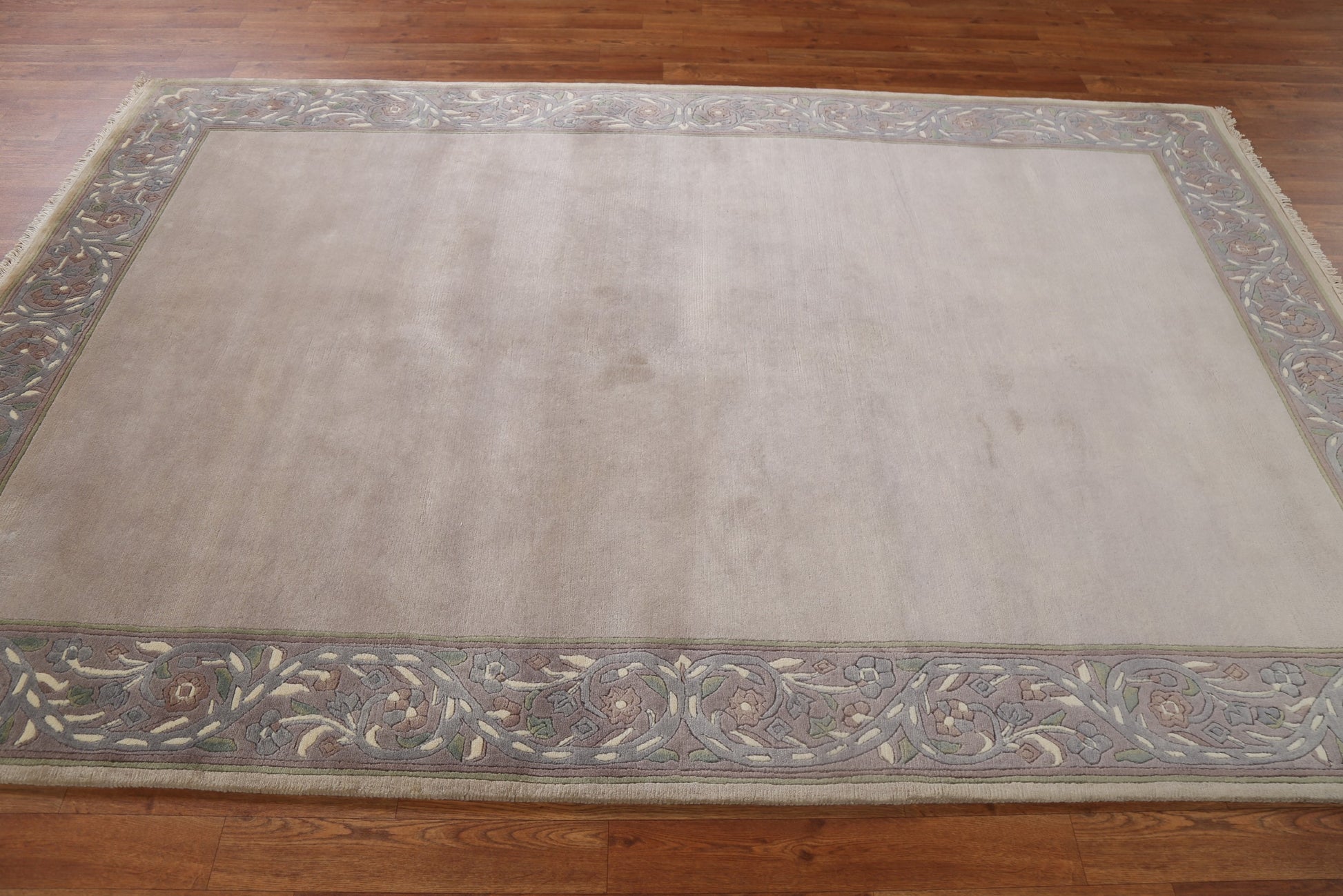 Bordered Wool Nepalese Oriental Area Rug 5x8