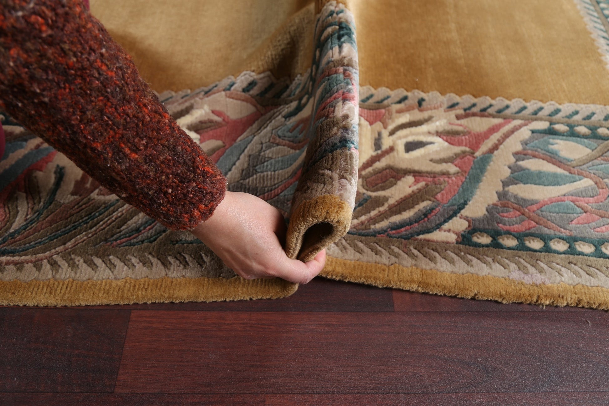 A Beautiful Genuine India Nepalese rug is Hand Knotted by skillful weavers in India with 100% Wool Material. This rug is in New, First Quality condition. dimensions are 10' 3'' X 8' 3'' in foot and 312 X 251 in centimeter. the primary color is Yellow & Gold.