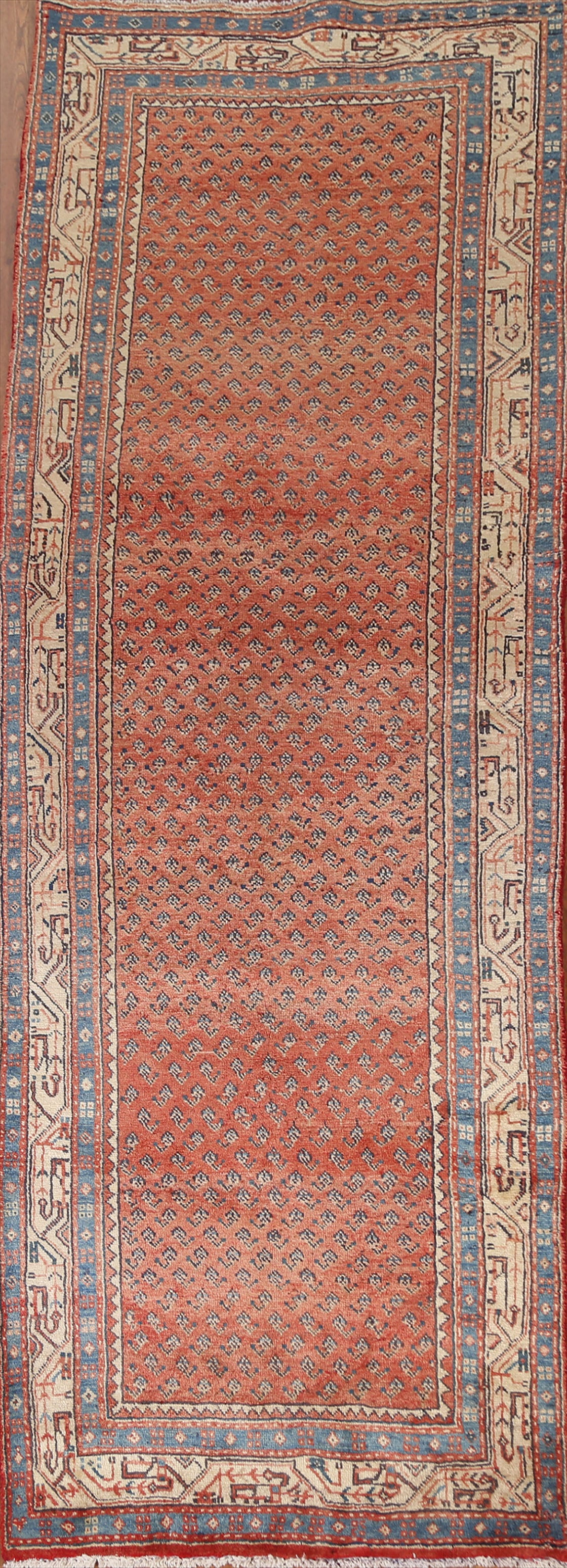 A Beautiful Genuine Persia ( Persia ) Botemir rug is Hand Knotted by skillful weavers in Persia ( Persia ) with 100% Wool Material. This rug is in Very Good condition. dimensions are 10' 4'' X 3' 6'' in foot and 315 X 107 in centimeter. the primary color is Red.