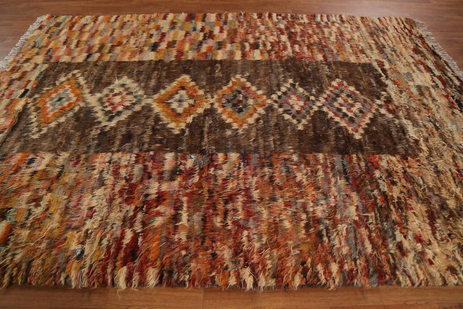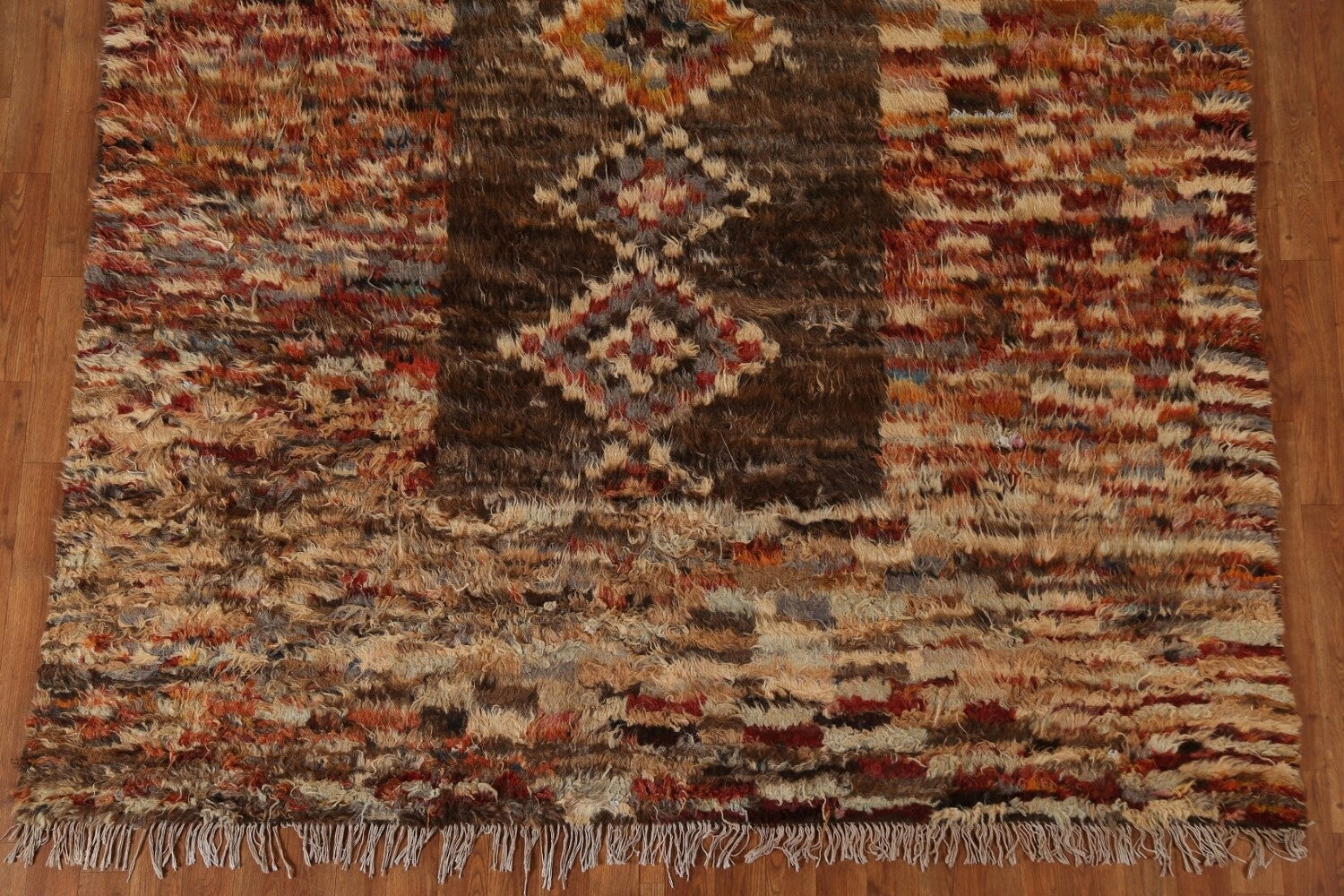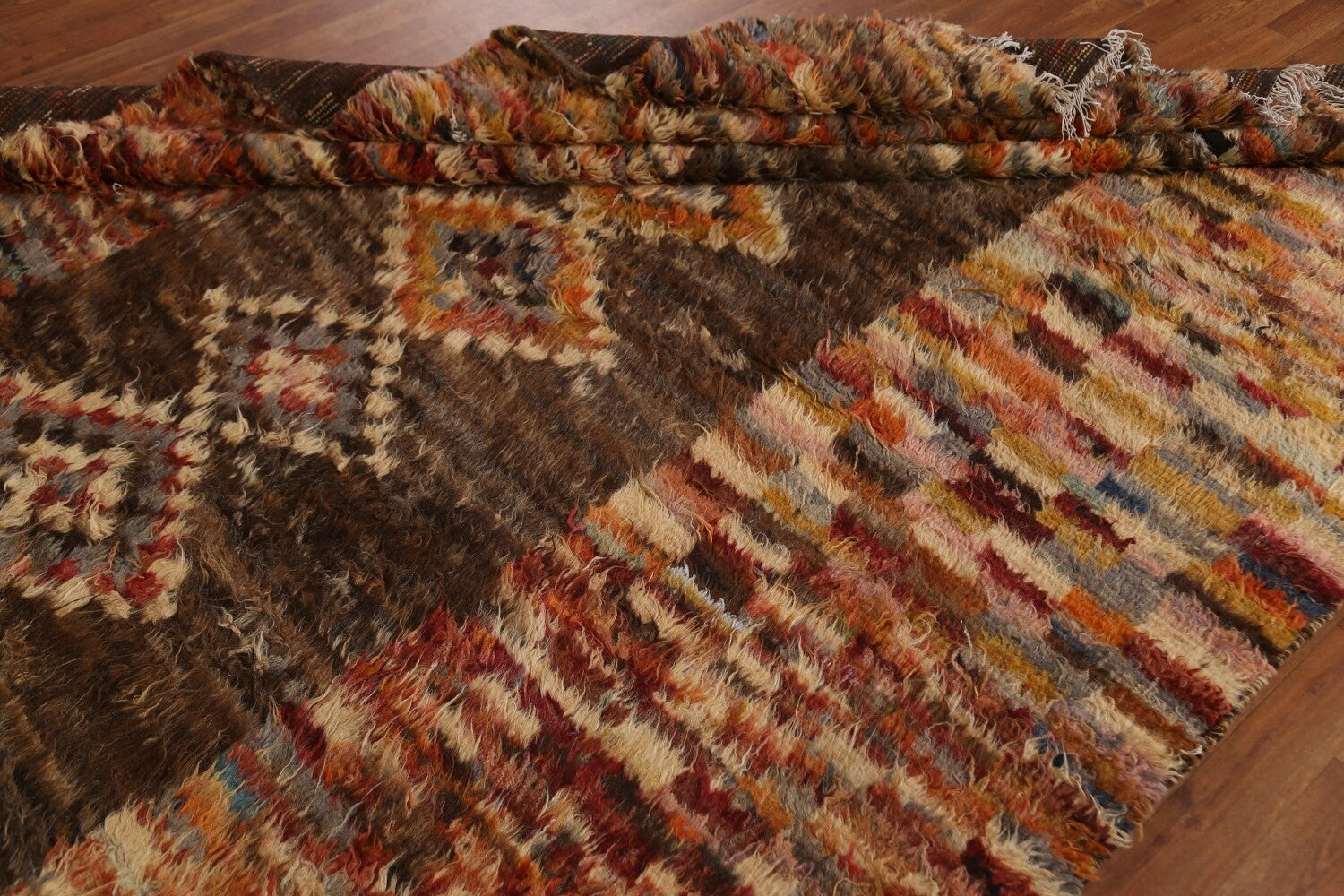 A Beautiful Genuine Pakistan Moroccan rug is Hand Knotted by skillful weavers in Pakistan with 100% Wool Material. This rug is in condition. dimensions are 9' 10'' X 6' 10'' in foot and 300 X 208 in centimeter. the primary color is Brown.