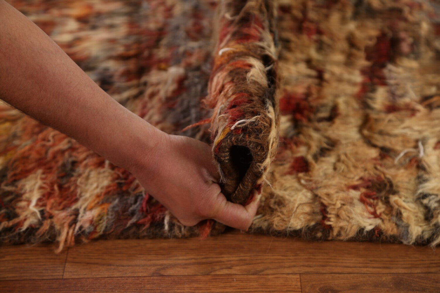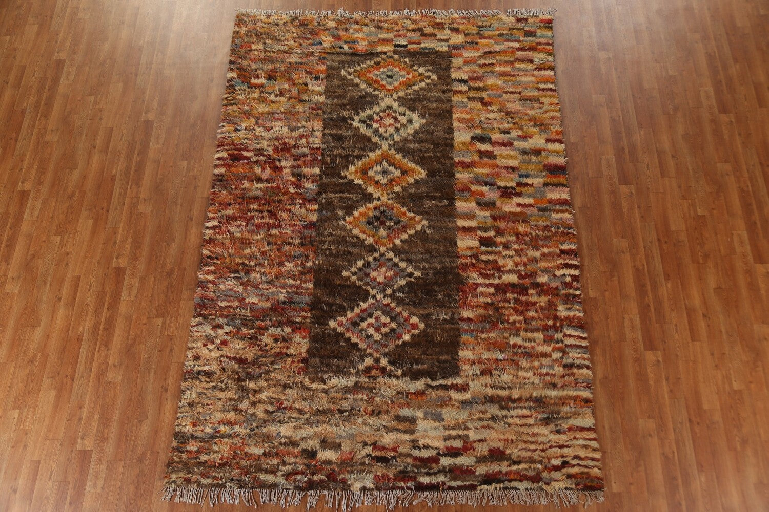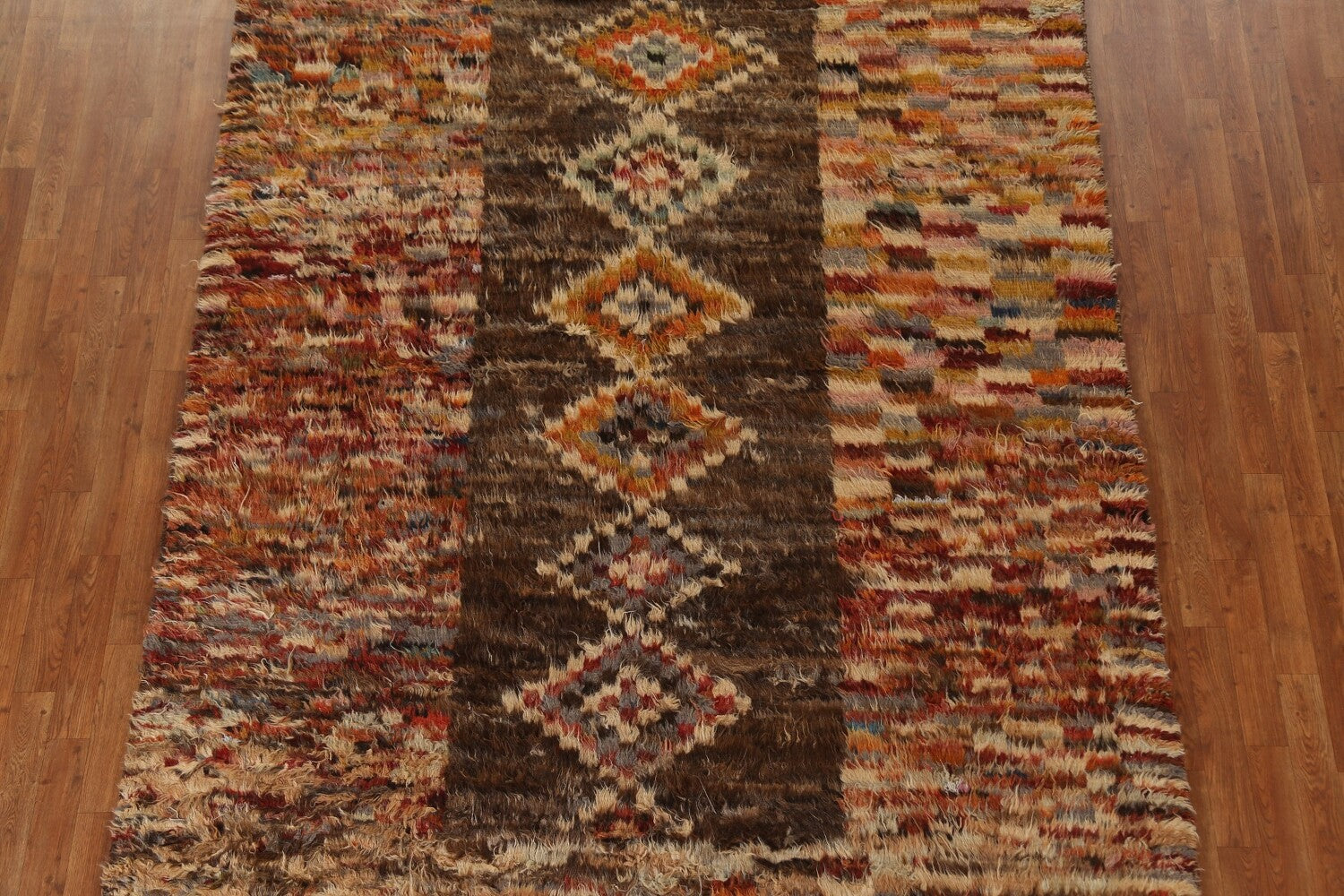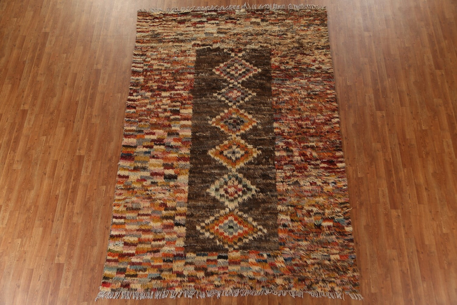 A Beautiful Genuine Pakistan Moroccan rug is Hand Knotted by skillful weavers in Pakistan with 100% Wool Material. This rug is in condition. dimensions are 9' 10'' X 6' 10'' in foot and 300 X 208 in centimeter. the primary color is Brown.