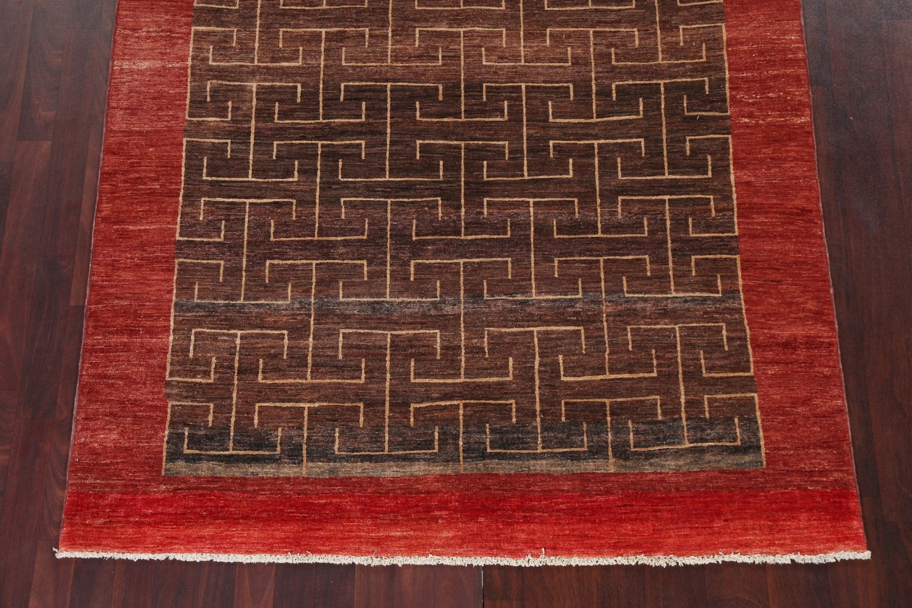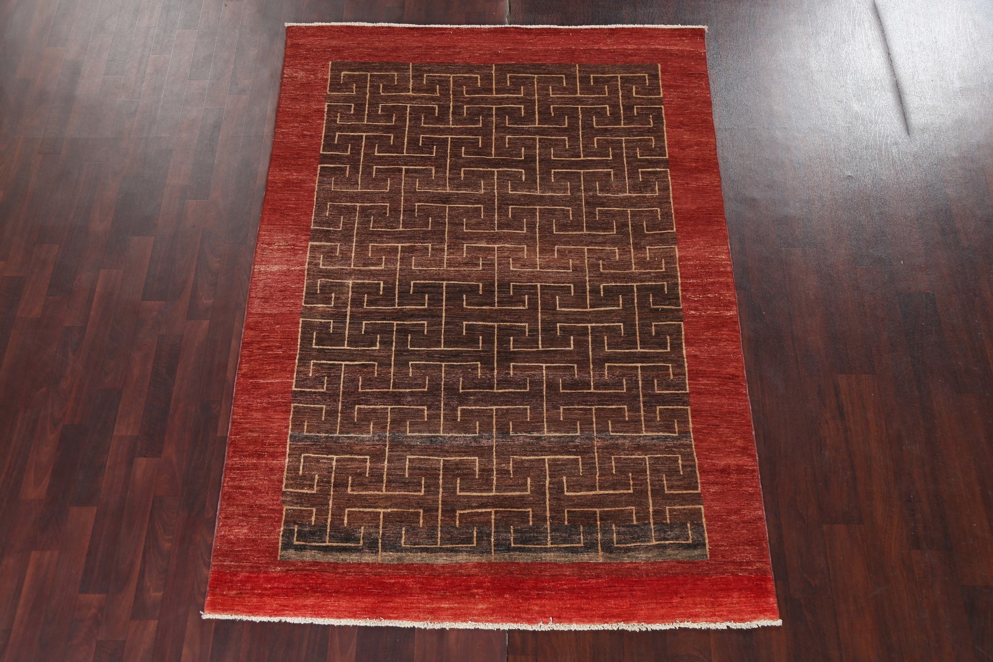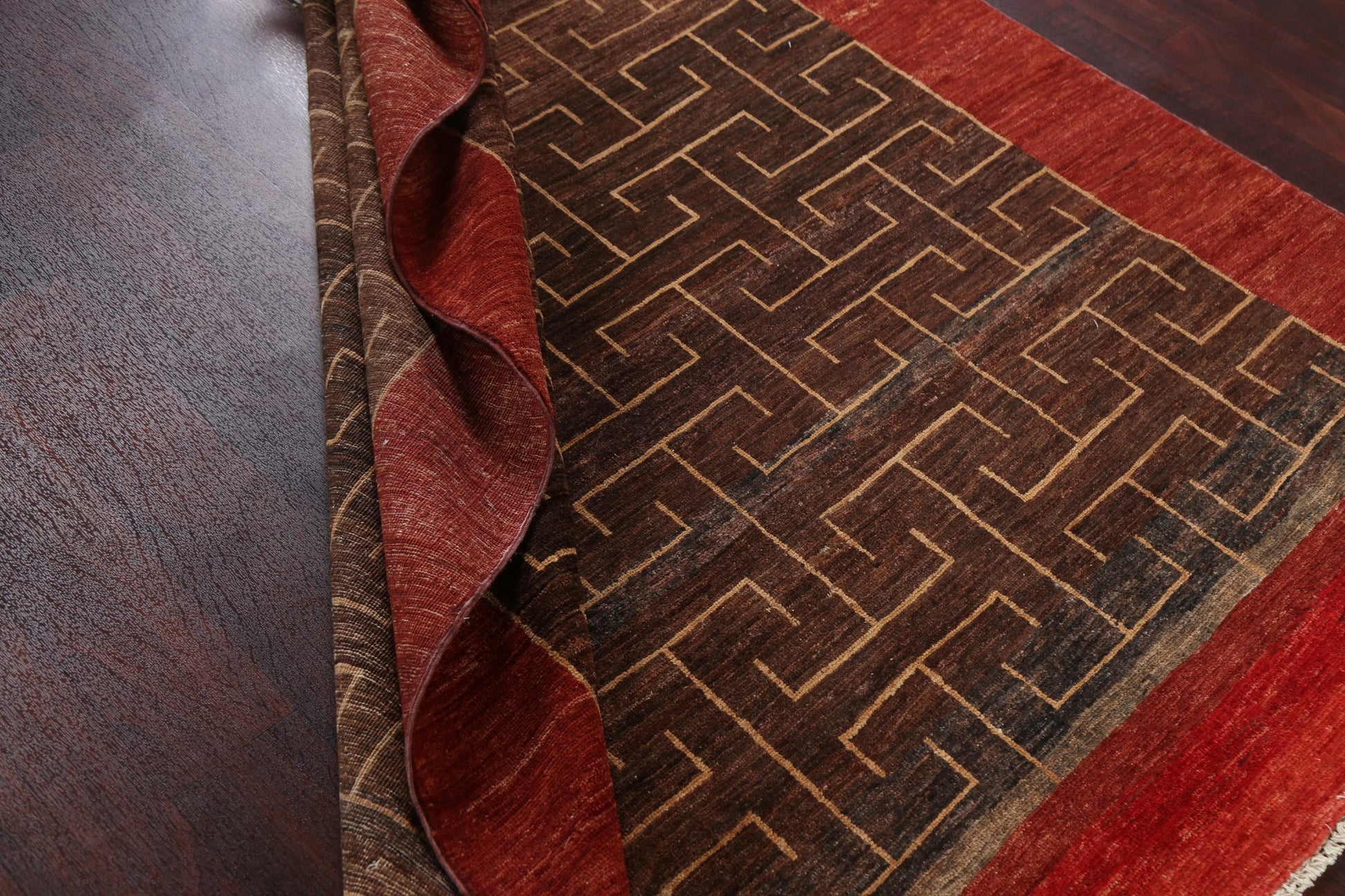 Brown Geometric Gabbeh Kashkoli Oriental Wool Rug 6x8