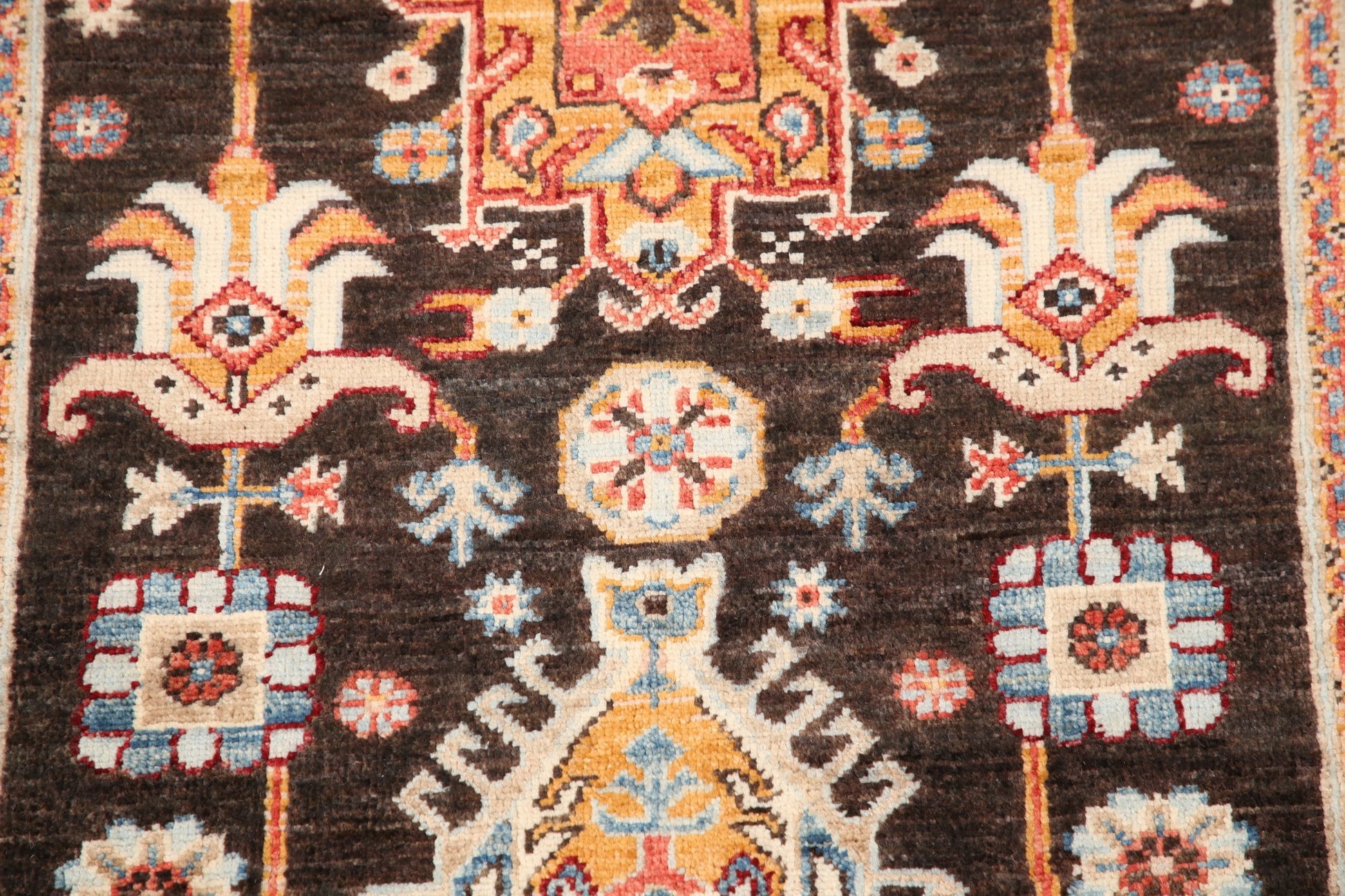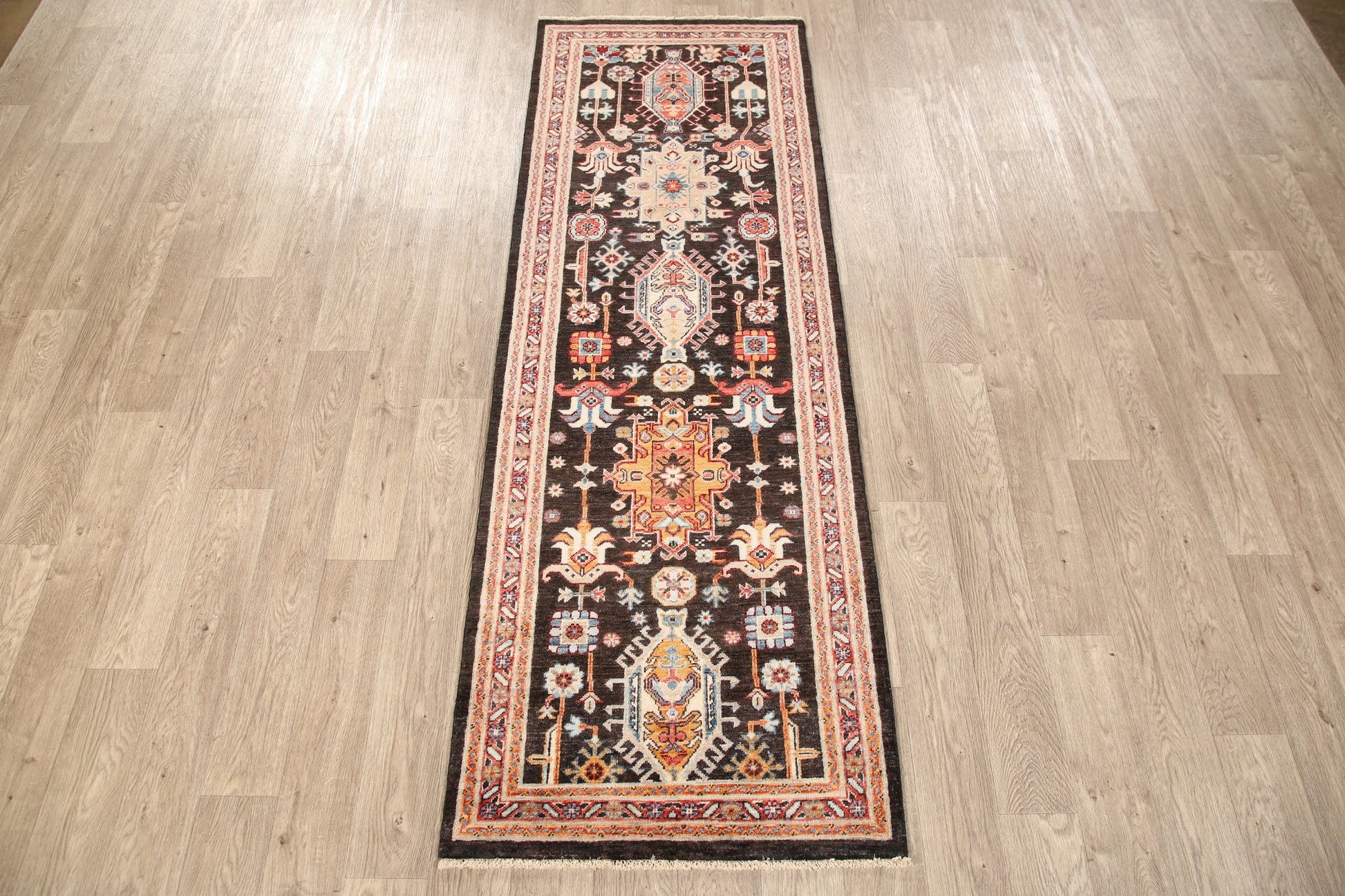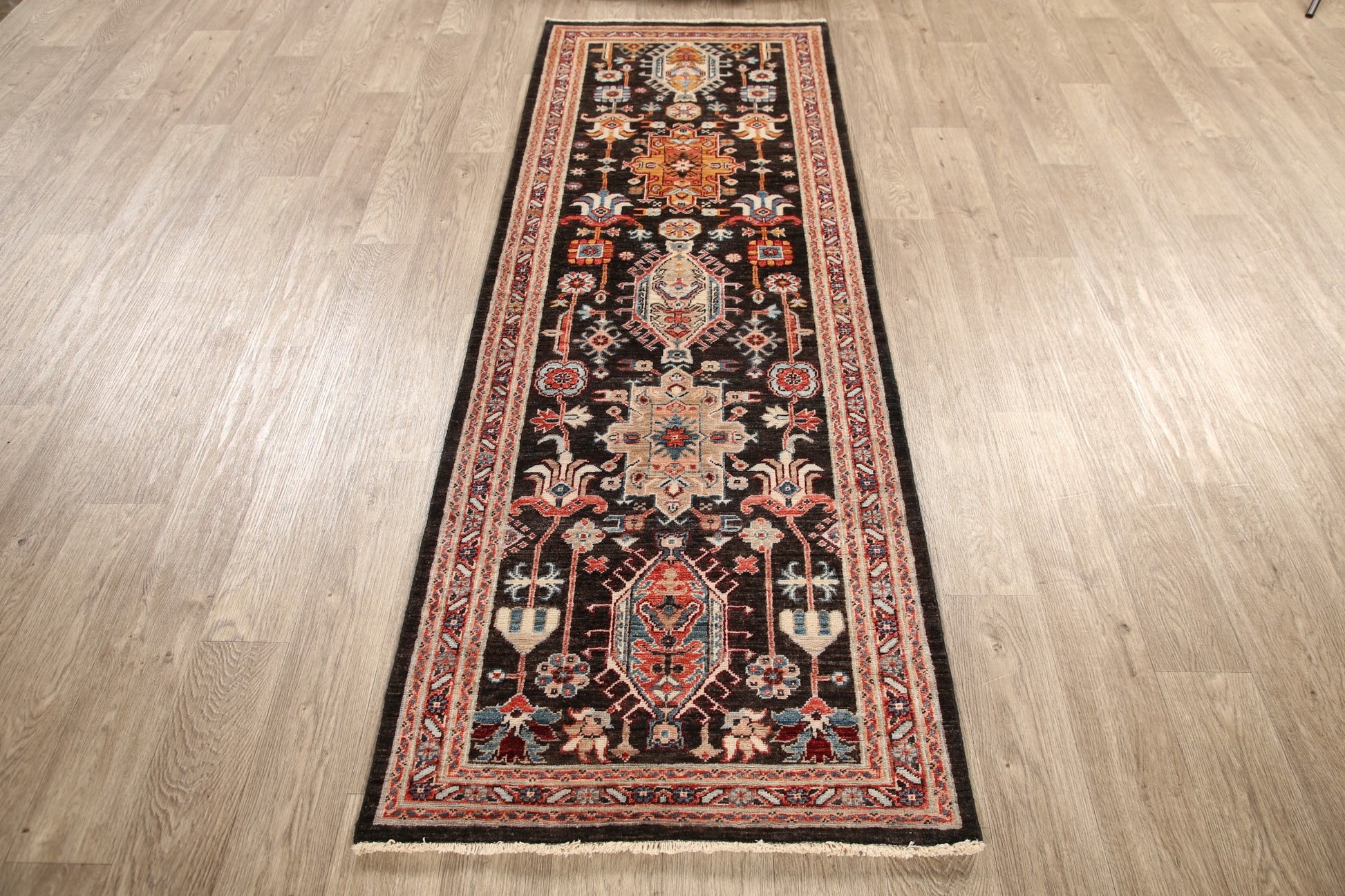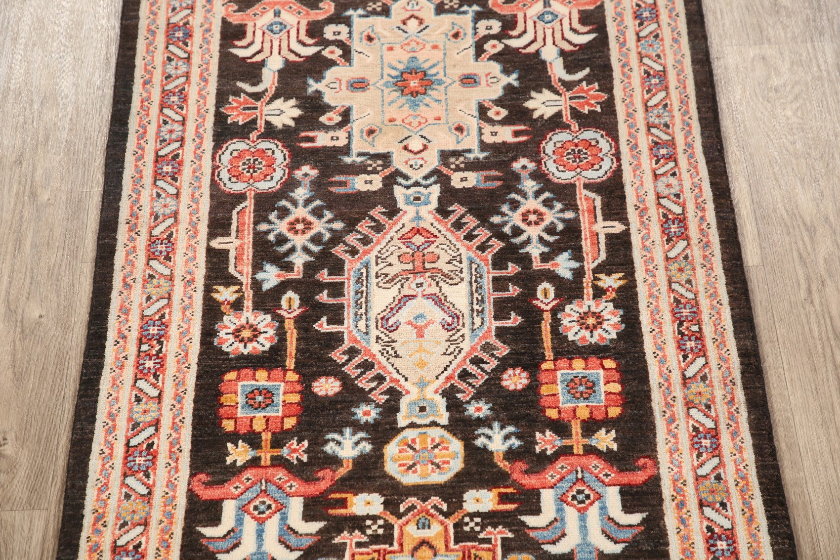 Brown Geometric Heriz Serapi Oriental Runner Rug 3x8