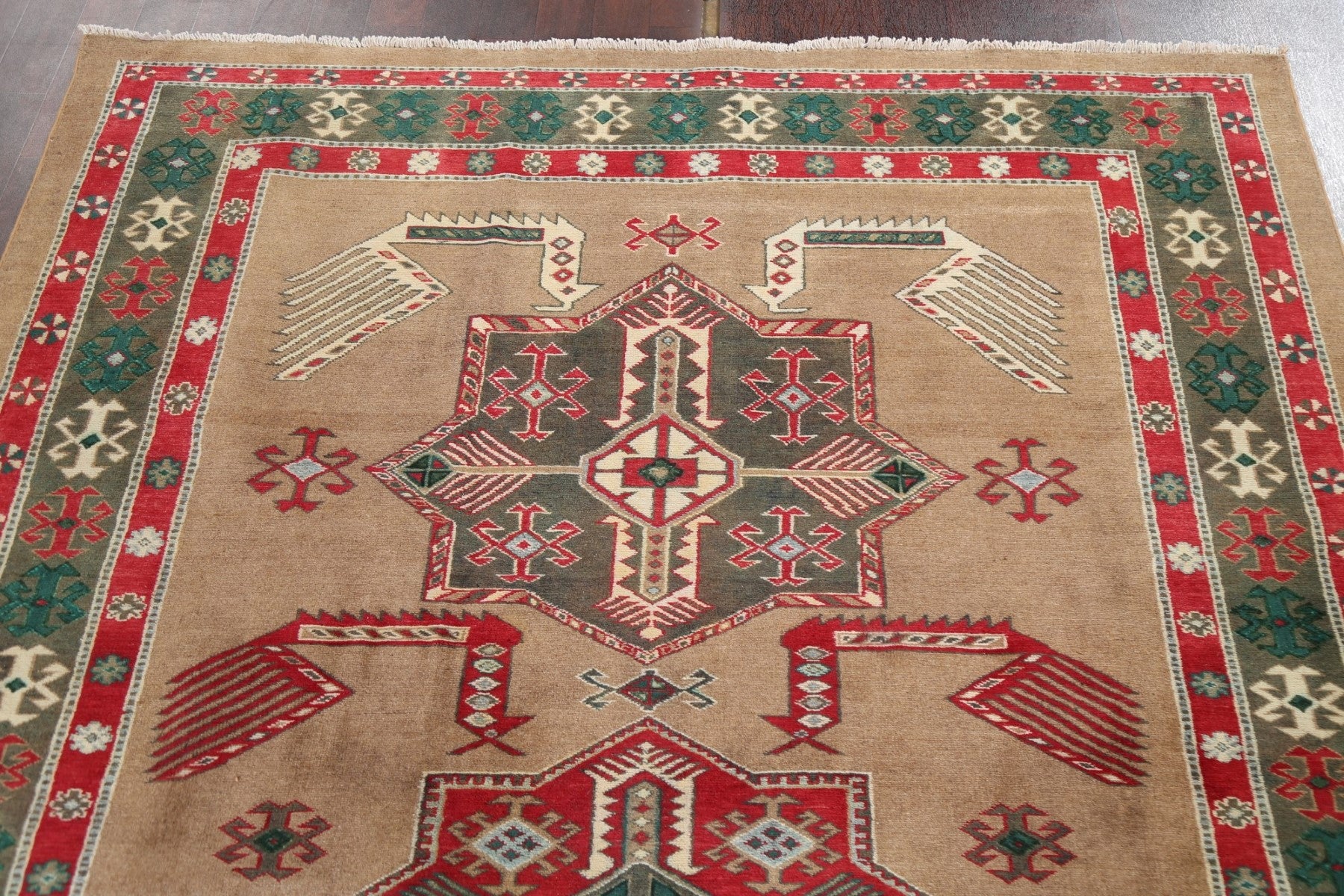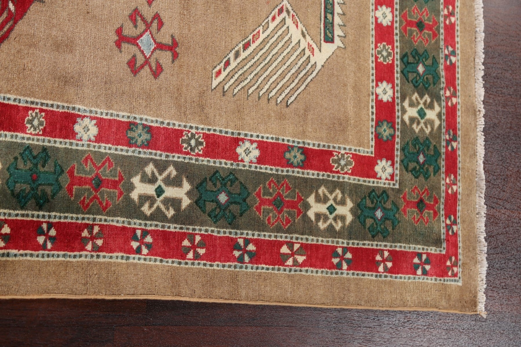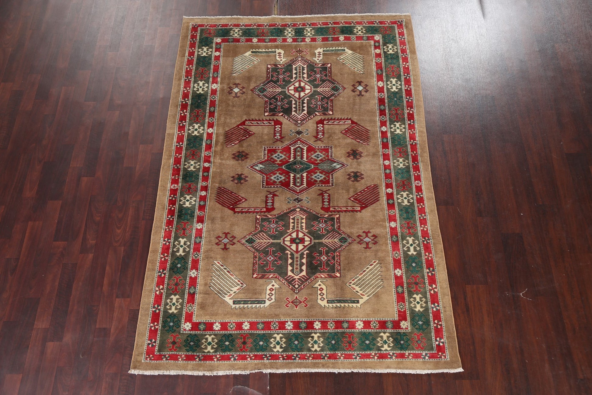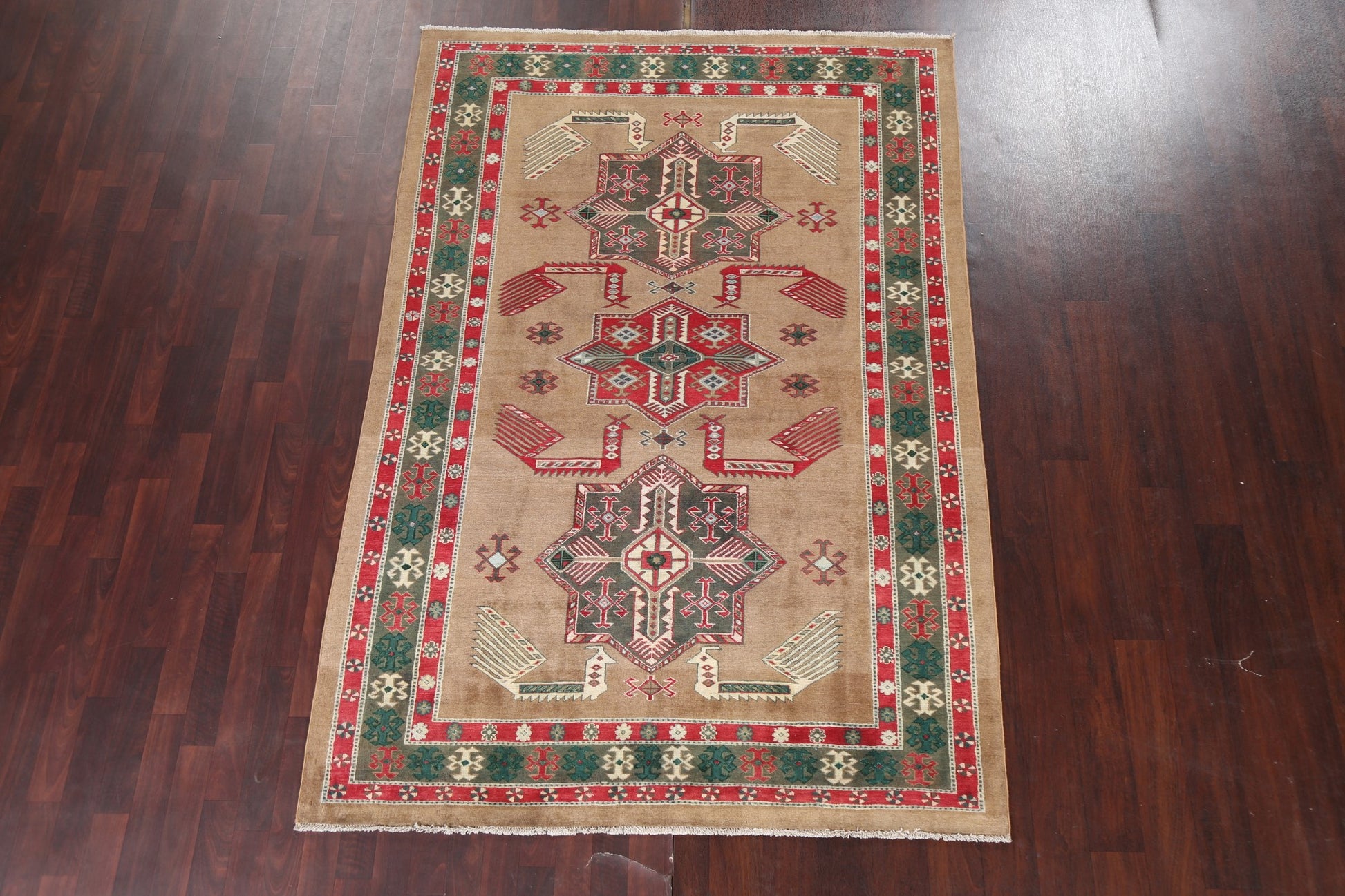 Brown Geometric Kazak Oriental Wool Rug 6x8