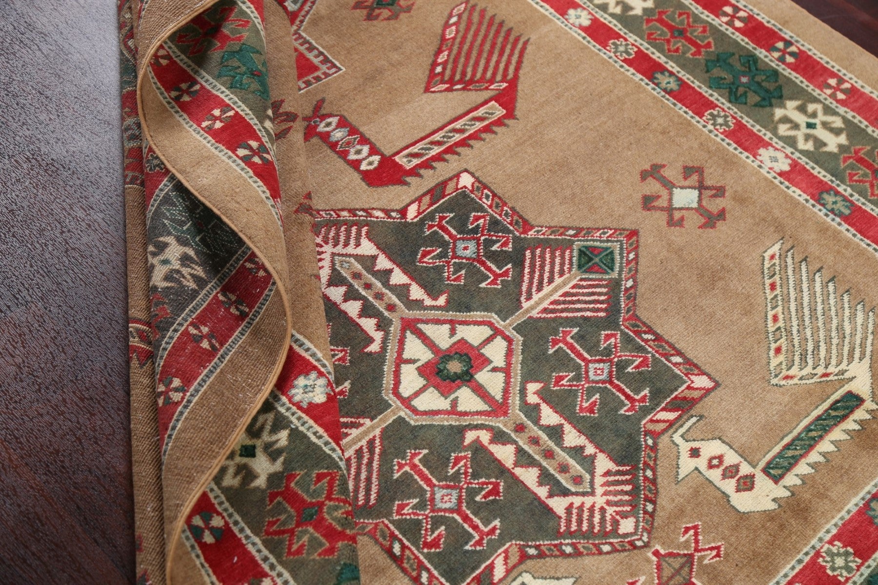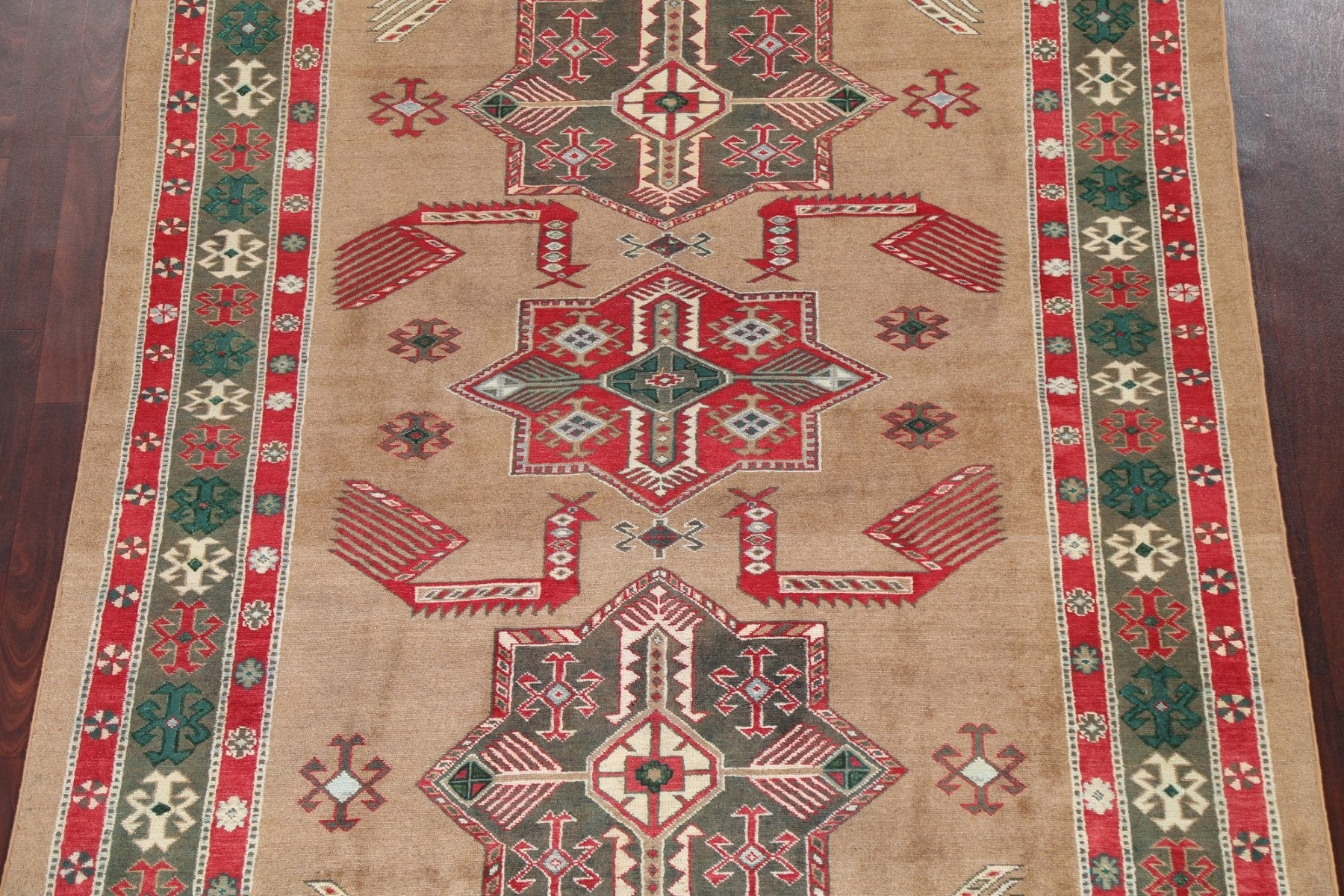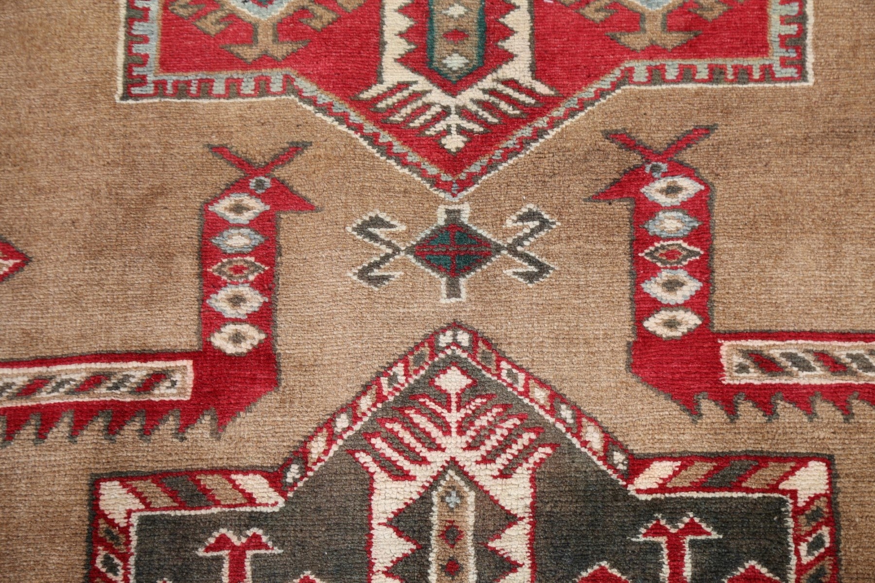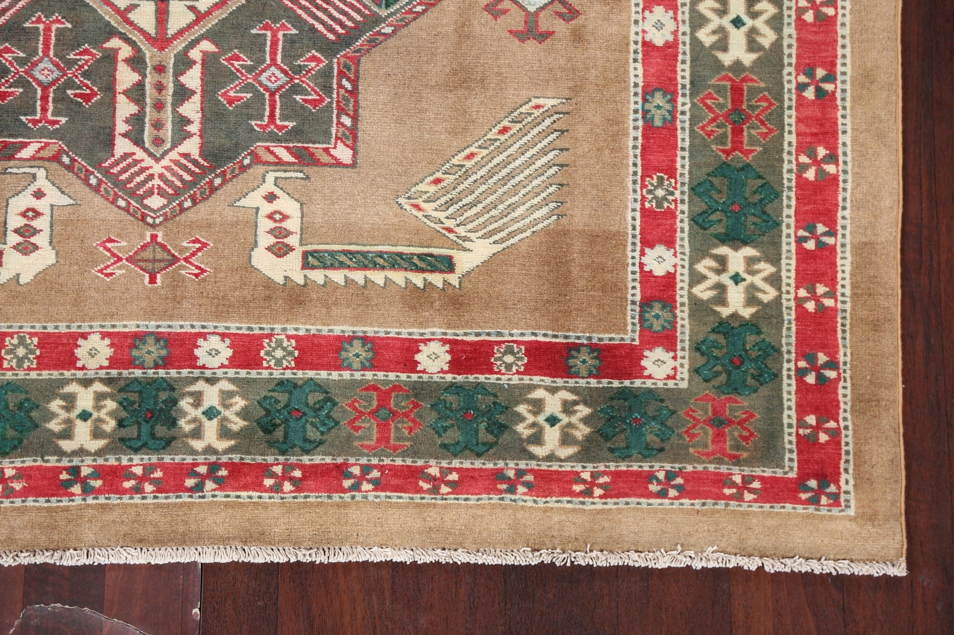 Brown Geometric Kazak Oriental Wool Rug 6x8
