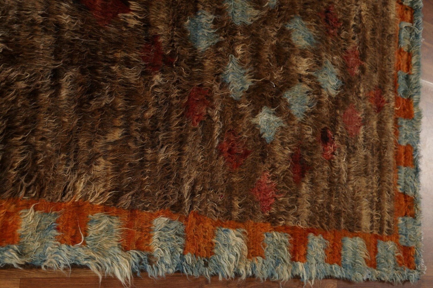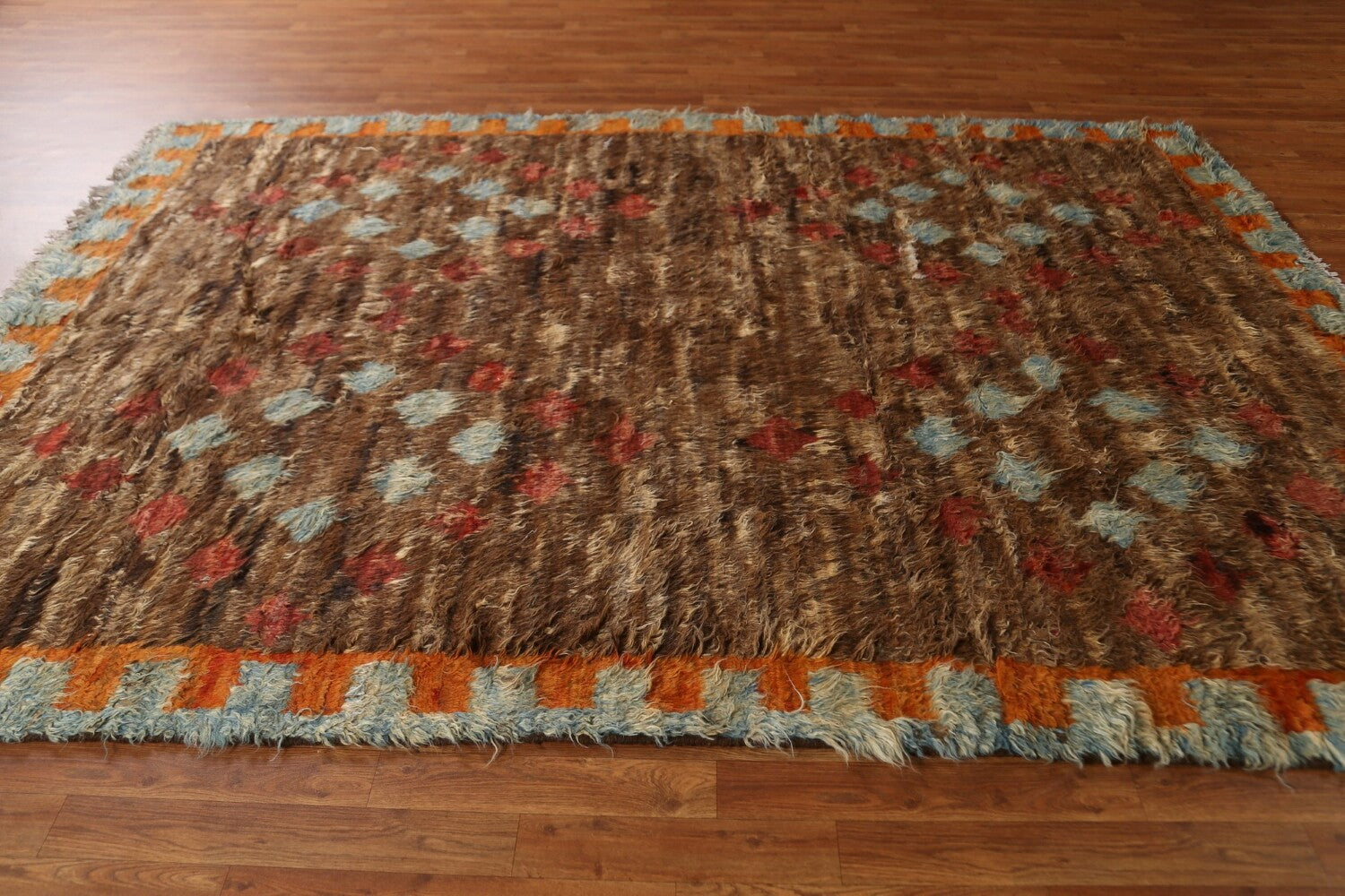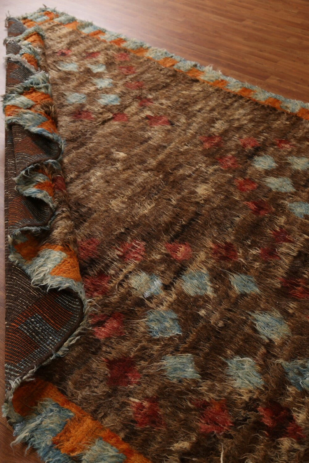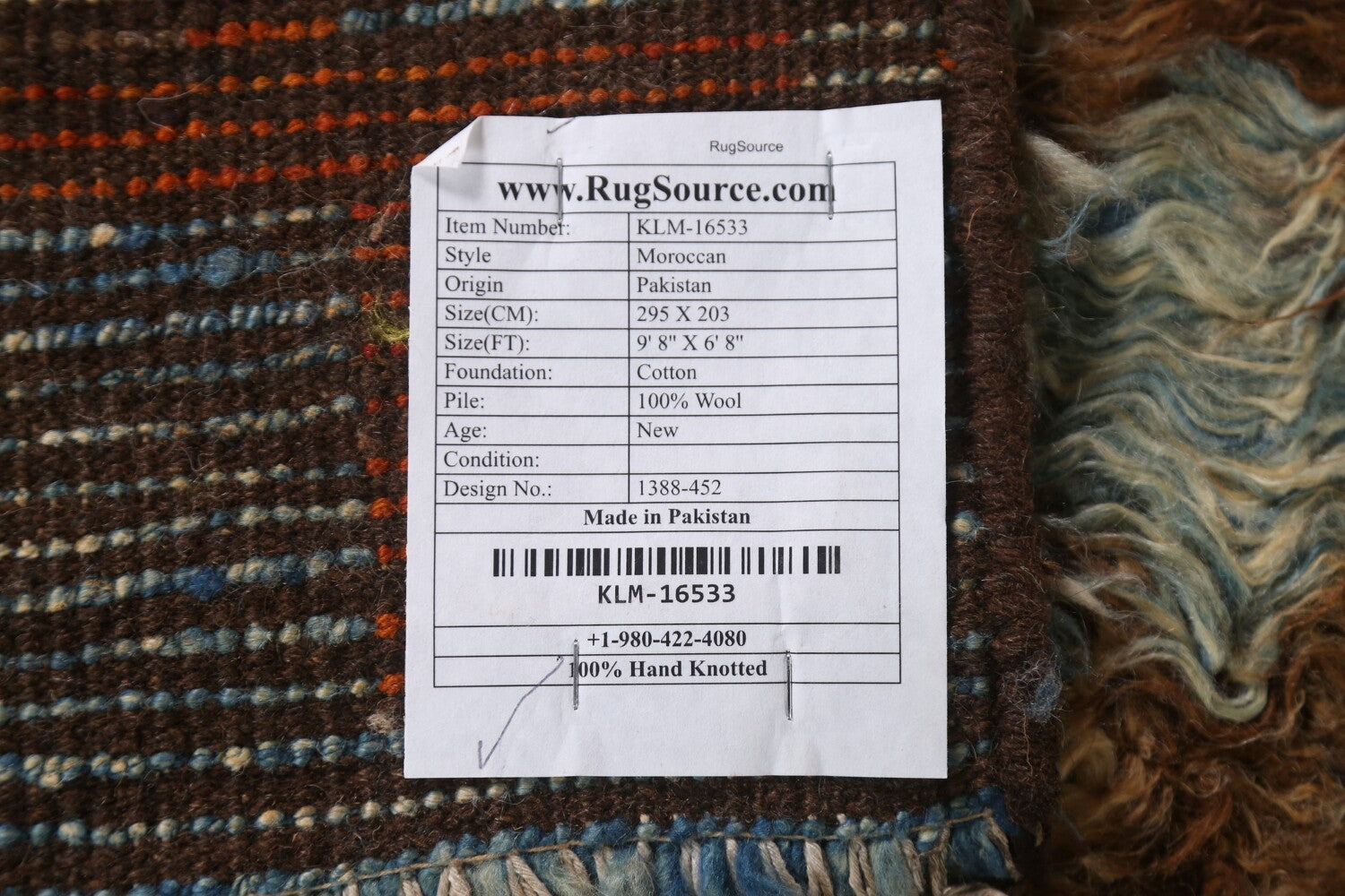 A Beautiful Genuine Pakistan Moroccan rug is Hand Knotted by skillful weavers in Pakistan with 100% Wool Material. This rug is in condition. dimensions are 9' 8'' X 6' 8'' in foot and 295 X 203 in centimeter. the primary color is Brown.