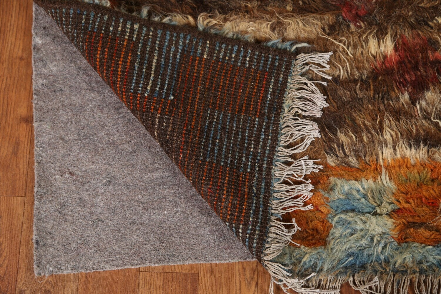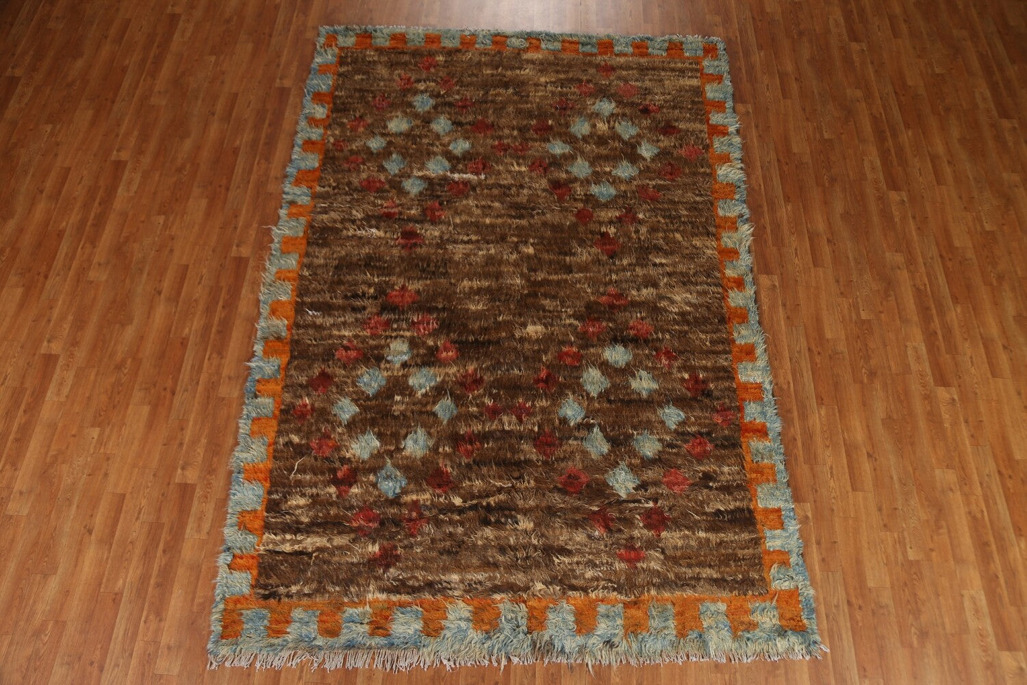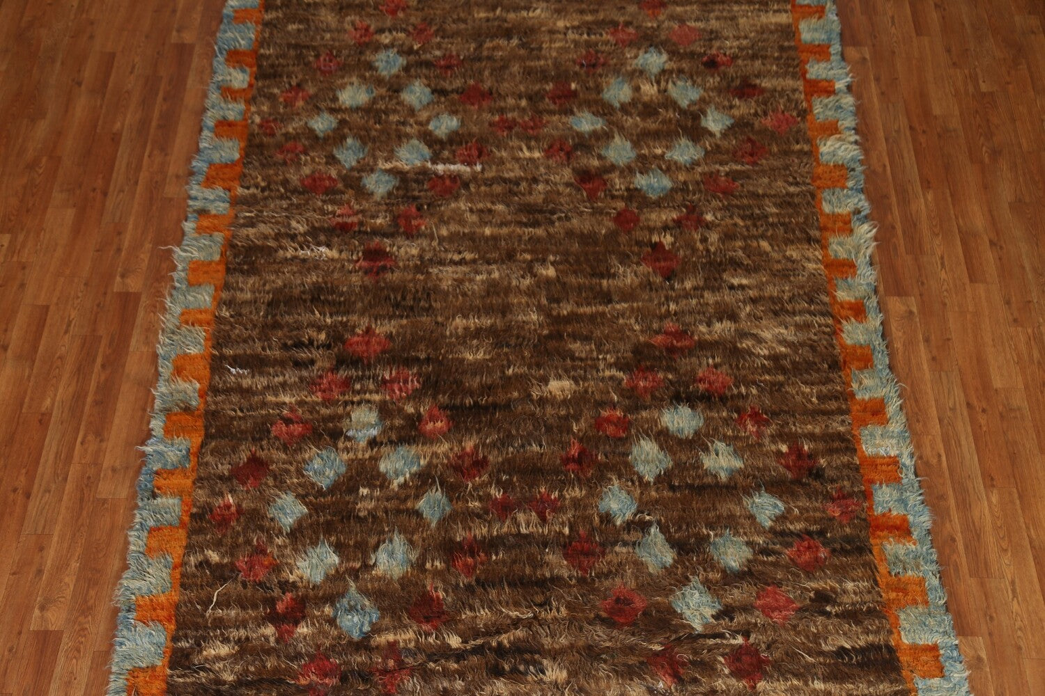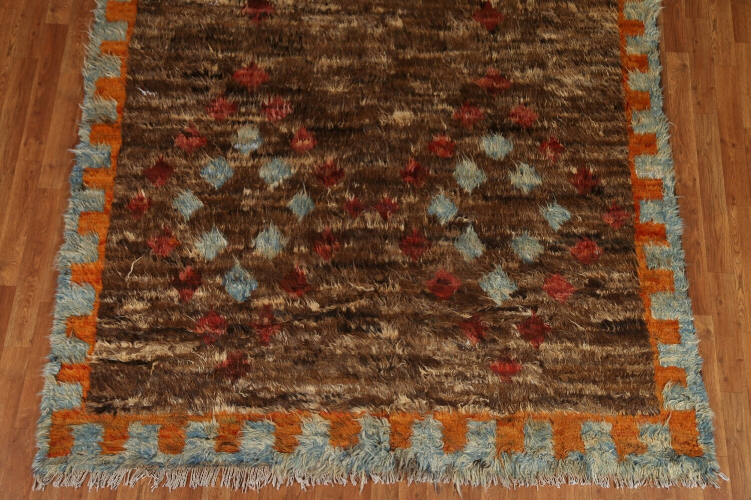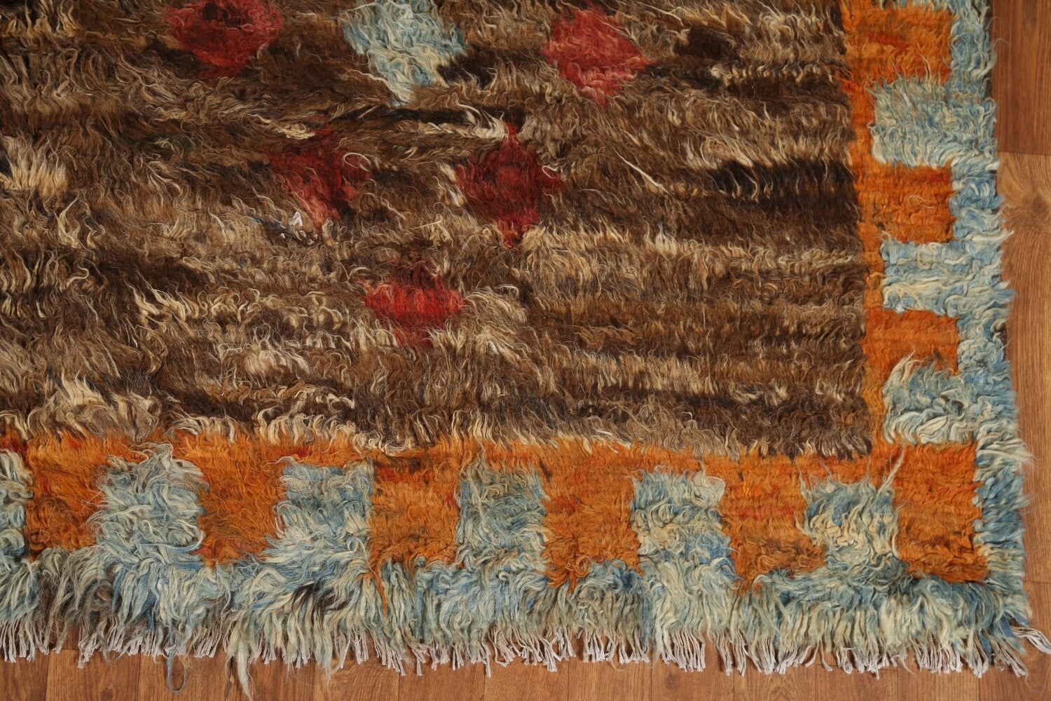 A Beautiful Genuine Pakistan Moroccan rug is Hand Knotted by skillful weavers in Pakistan with 100% Wool Material. This rug is in condition. dimensions are 9' 8'' X 6' 8'' in foot and 295 X 203 in centimeter. the primary color is Brown.