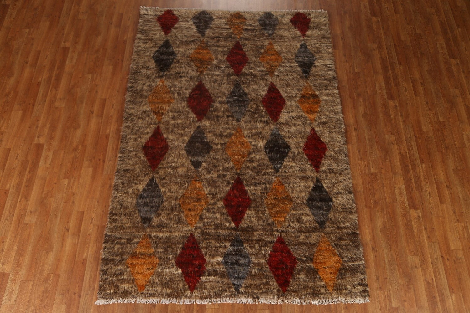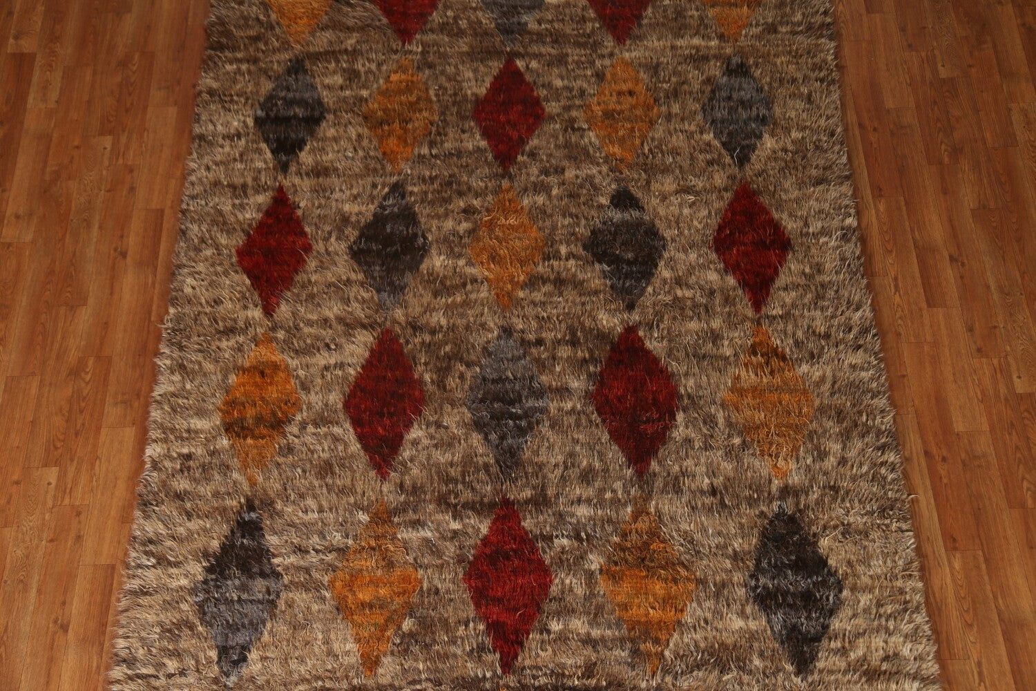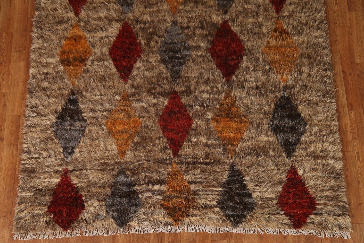 A Beautiful Genuine Pakistan Moroccan rug is Hand Knotted by skillful weavers in Pakistan with 100% Wool Material. This rug is in condition. dimensions are 8' 9'' X 6' 0'' in foot and 267 X 183 in centimeter. the primary color is Brown.