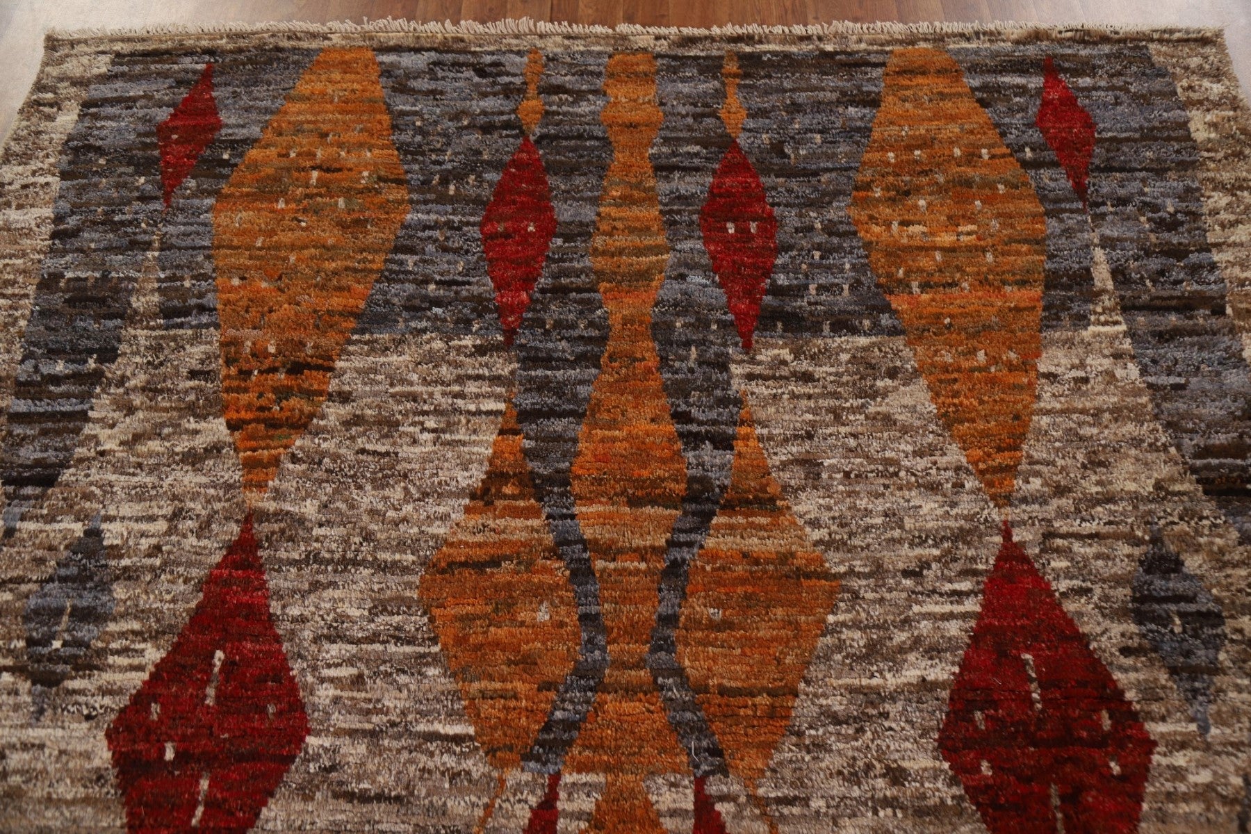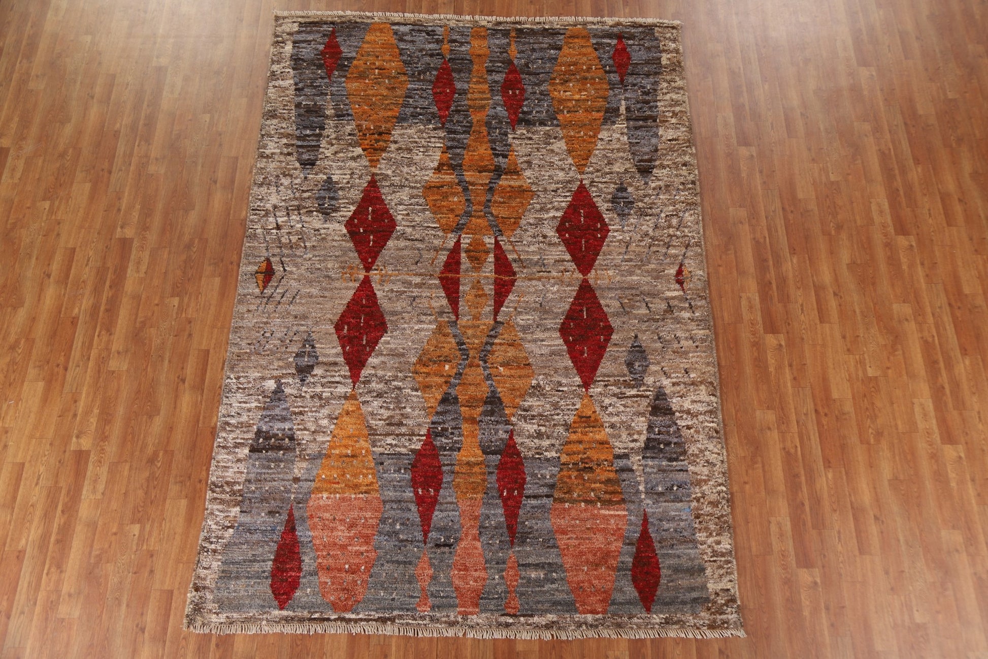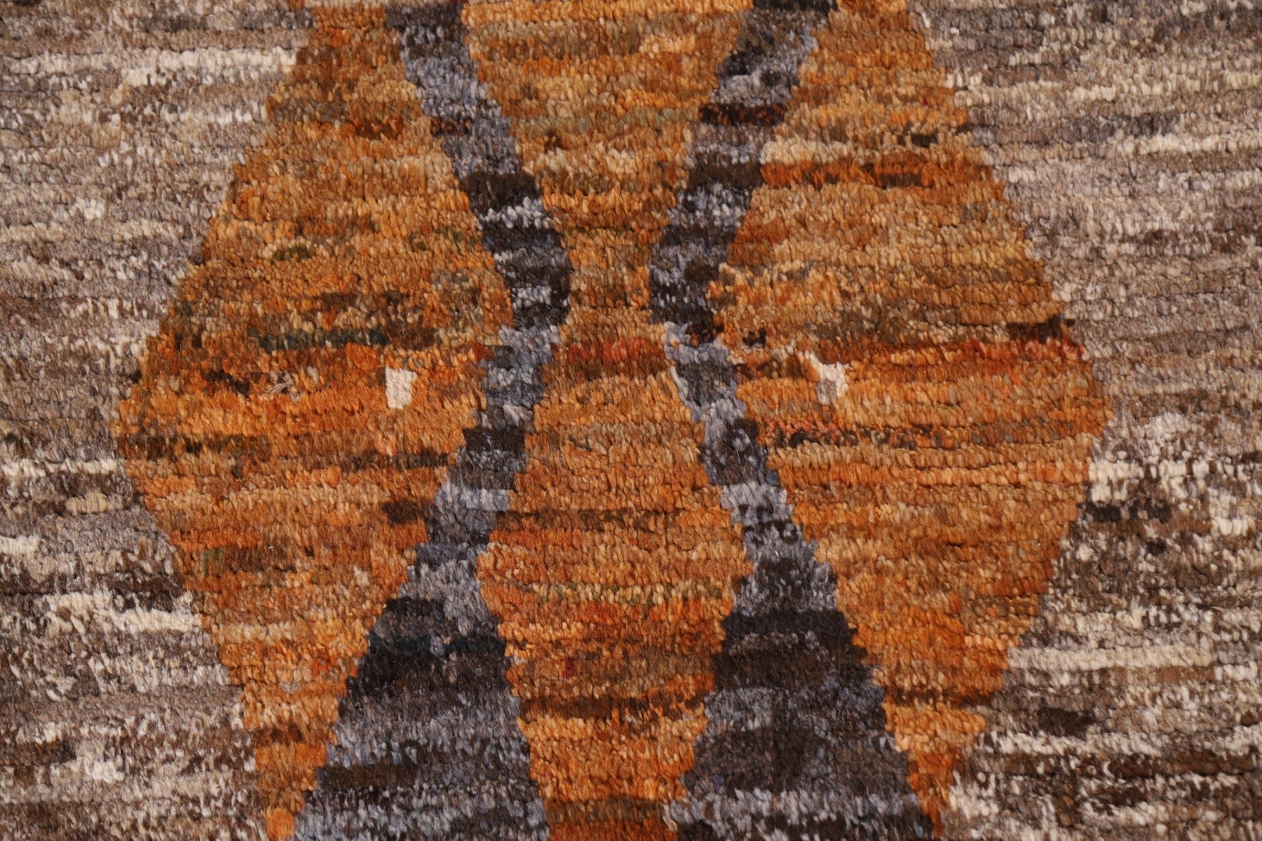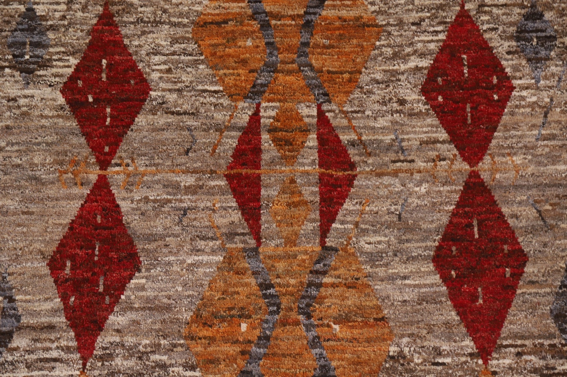 A Beautiful Genuine Pakistan Moroccan rug is Hand Knotted by skillful weavers in Pakistan with 100% Wool Material. This rug is in condition. dimensions are 9' 10'' X 6' 10'' in foot and 300 X 208 in centimeter. the primary color is Brown.