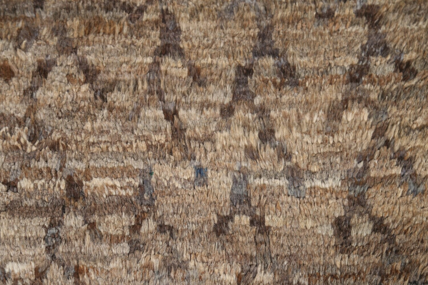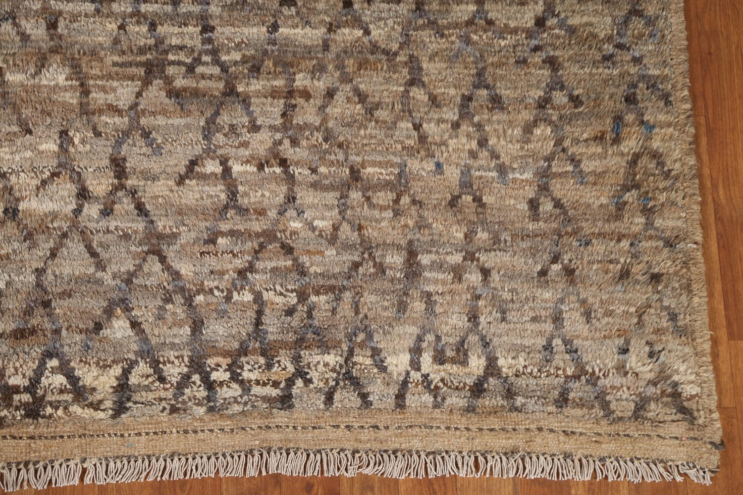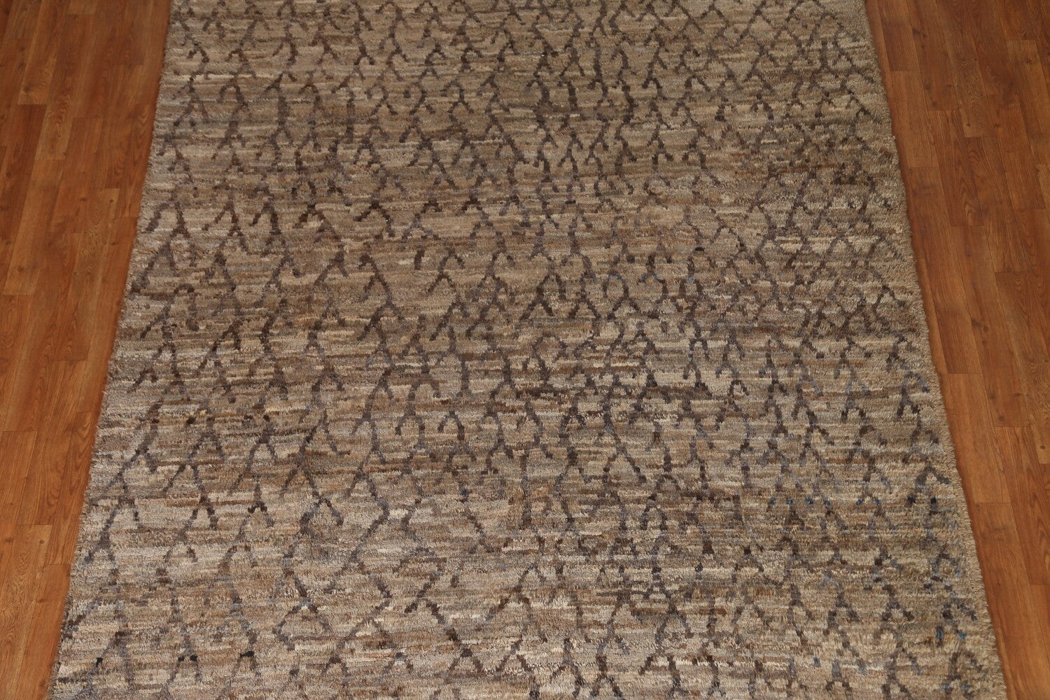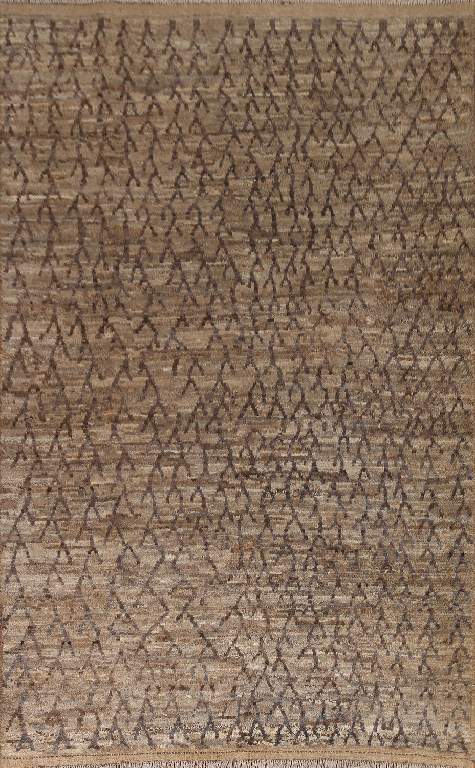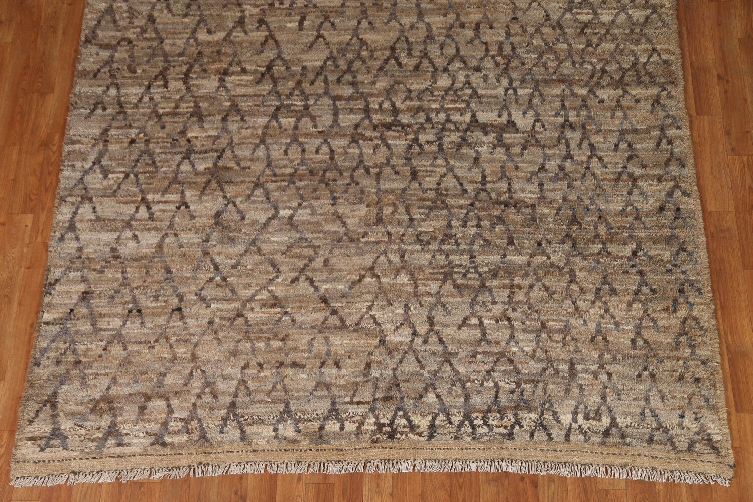 A Beautiful Genuine Pakistan Moroccan rug is Hand Knotted by skillful weavers in Pakistan with 100% Wool Material. This rug is in condition. dimensions are 9' 8'' X 6' 10'' in foot and 295 X 208 in centimeter. the primary color is Brown.