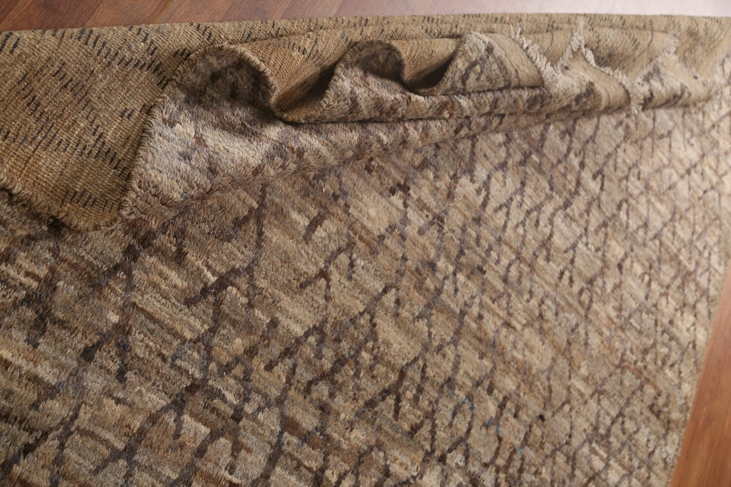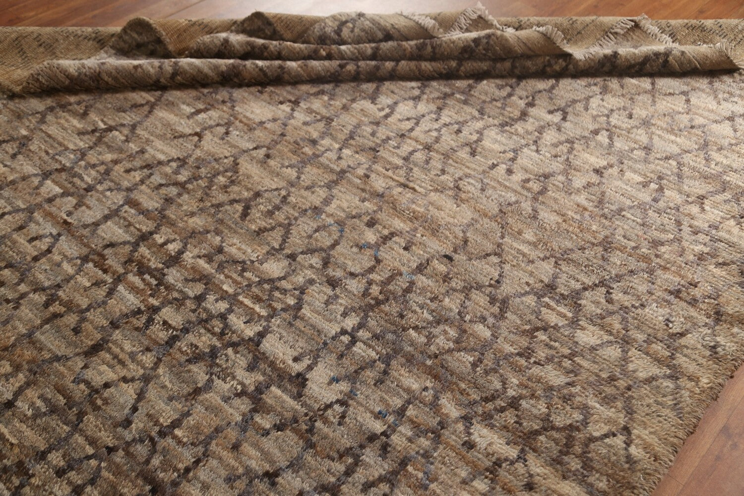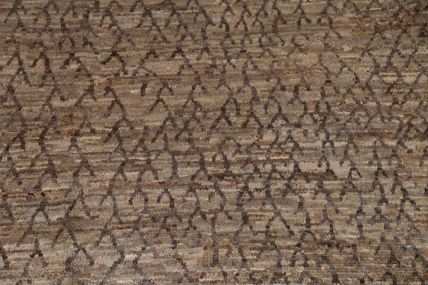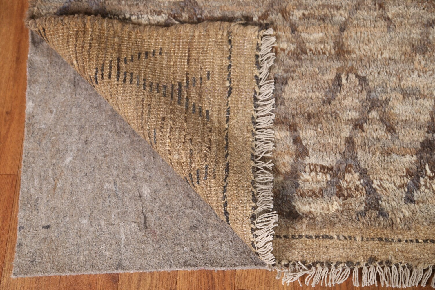 A Beautiful Genuine Pakistan Moroccan rug is Hand Knotted by skillful weavers in Pakistan with 100% Wool Material. This rug is in condition. dimensions are 9' 8'' X 6' 10'' in foot and 295 X 208 in centimeter. the primary color is Brown.