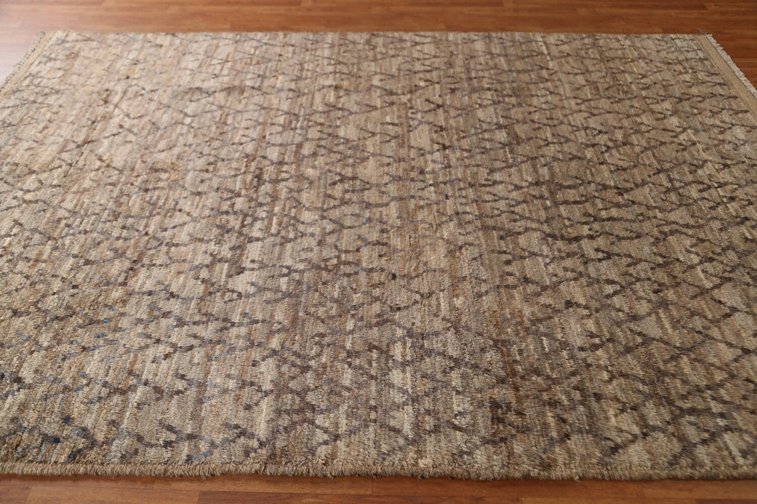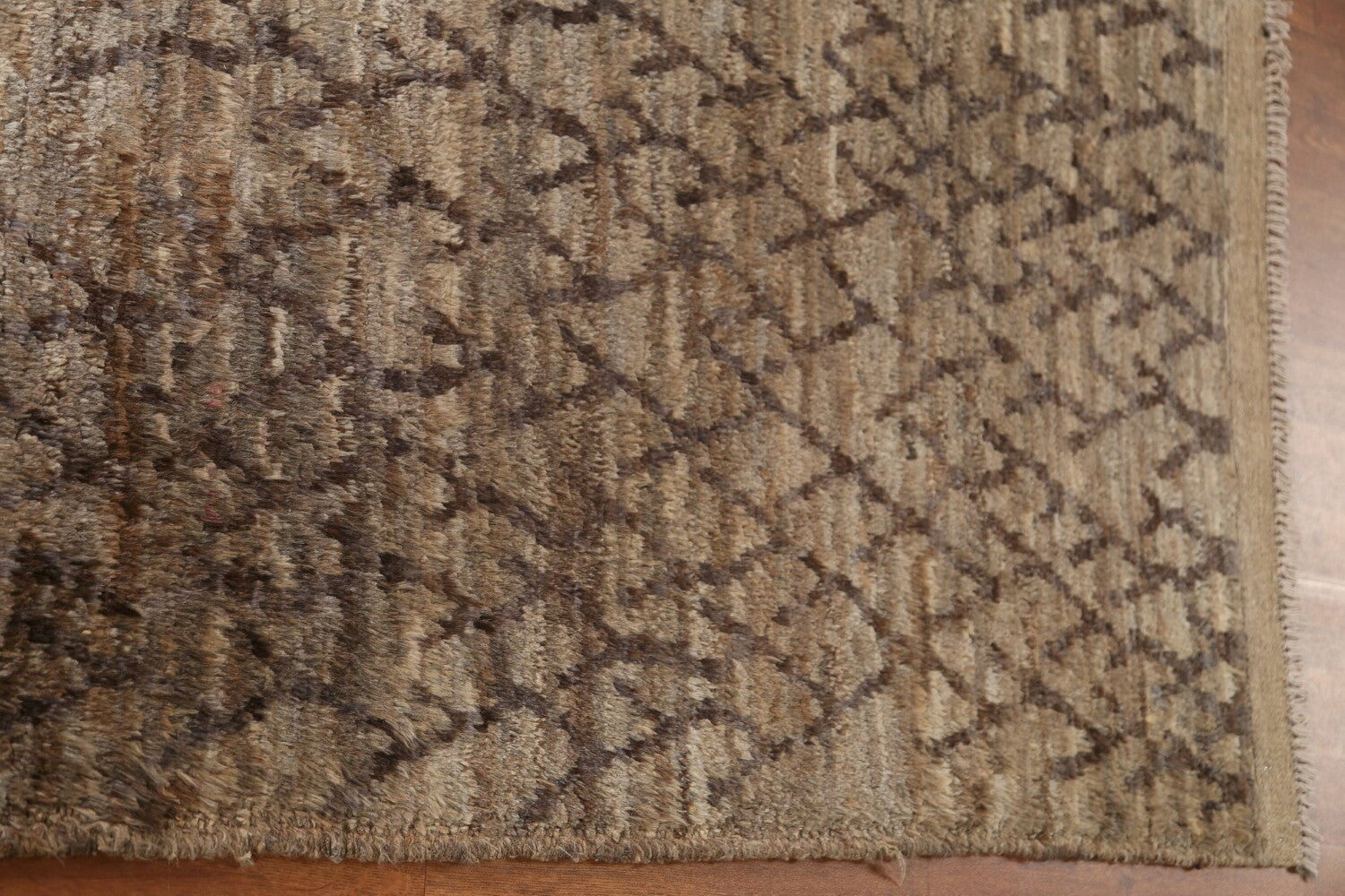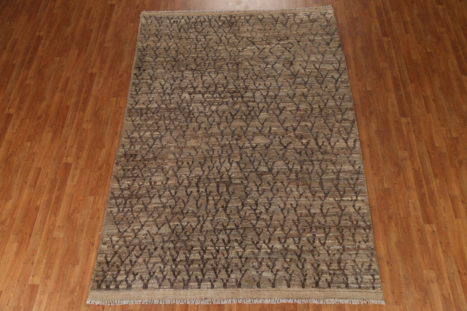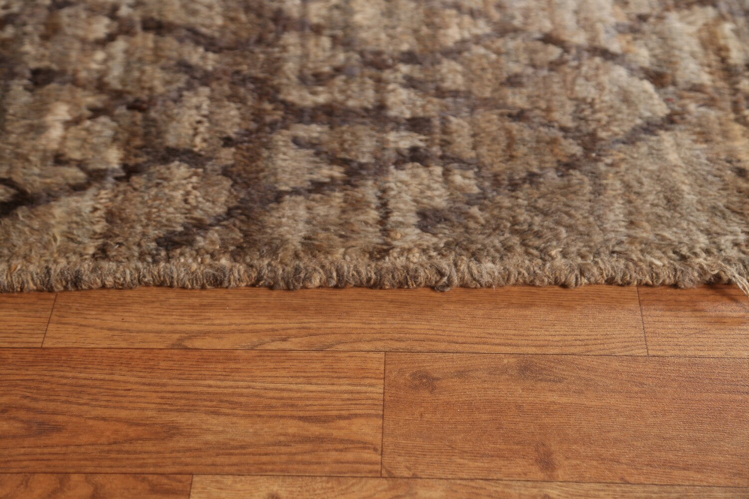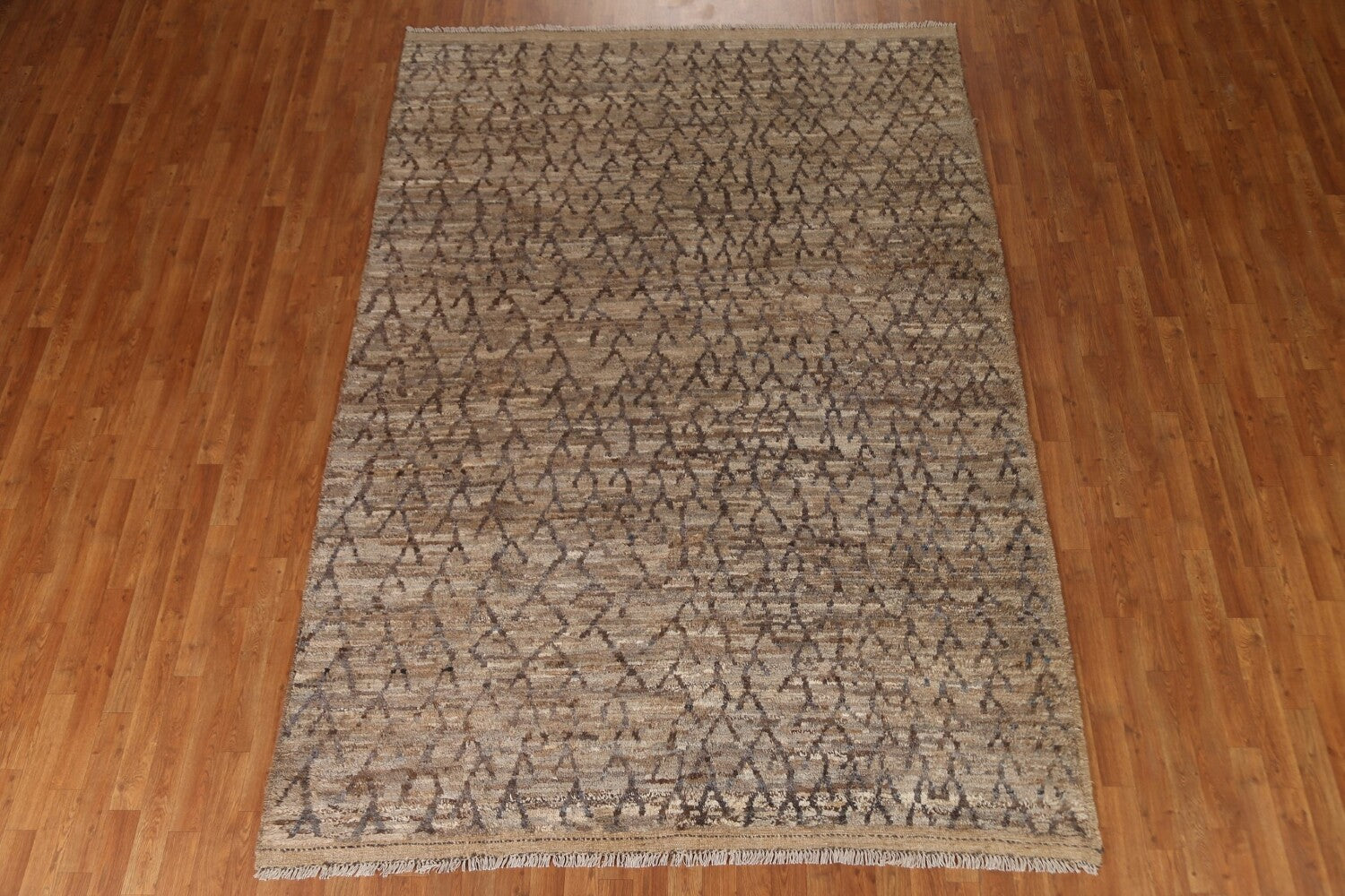 A Beautiful Genuine Pakistan Moroccan rug is Hand Knotted by skillful weavers in Pakistan with 100% Wool Material. This rug is in condition. dimensions are 9' 8'' X 6' 10'' in foot and 295 X 208 in centimeter. the primary color is Brown.