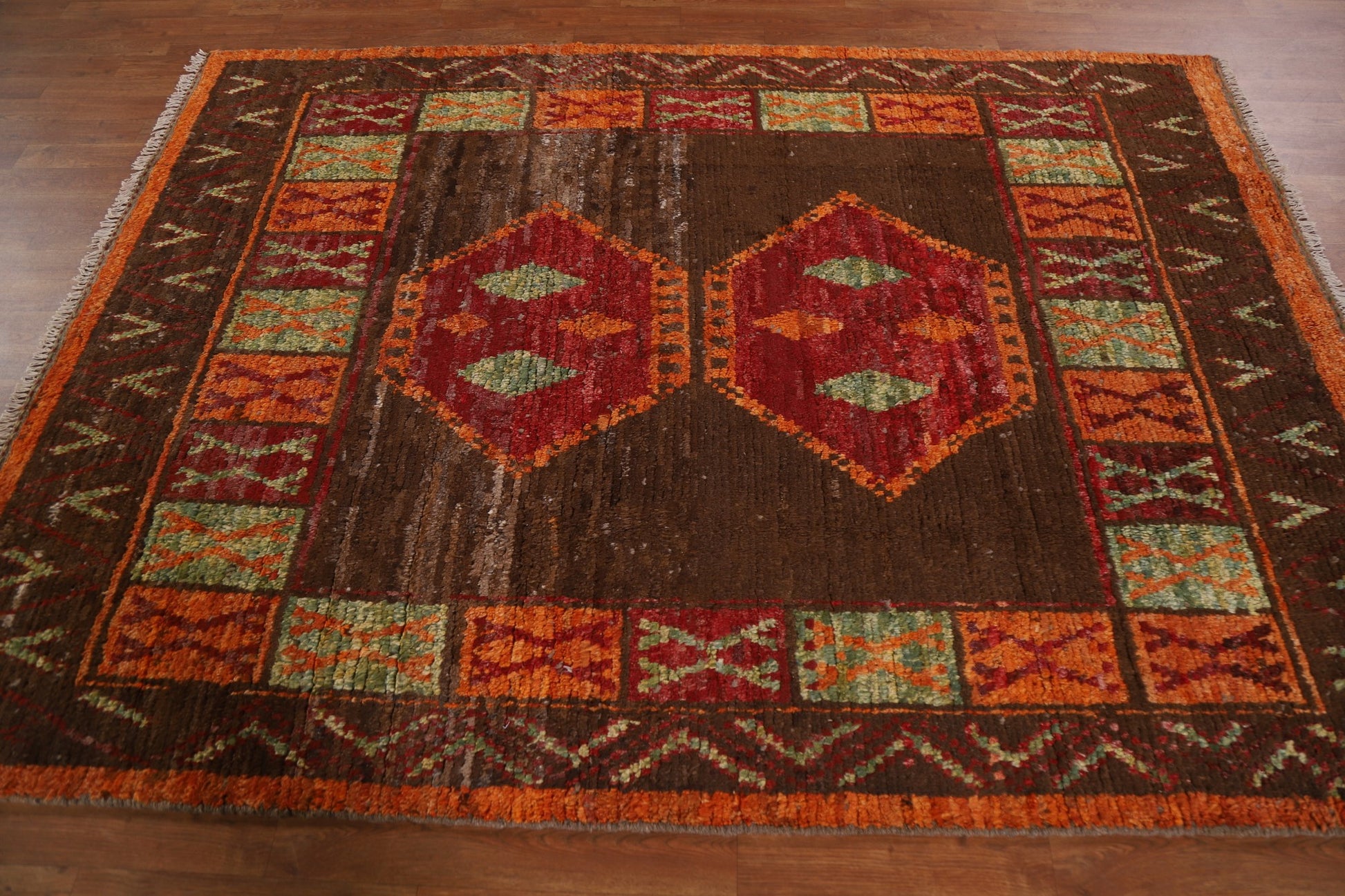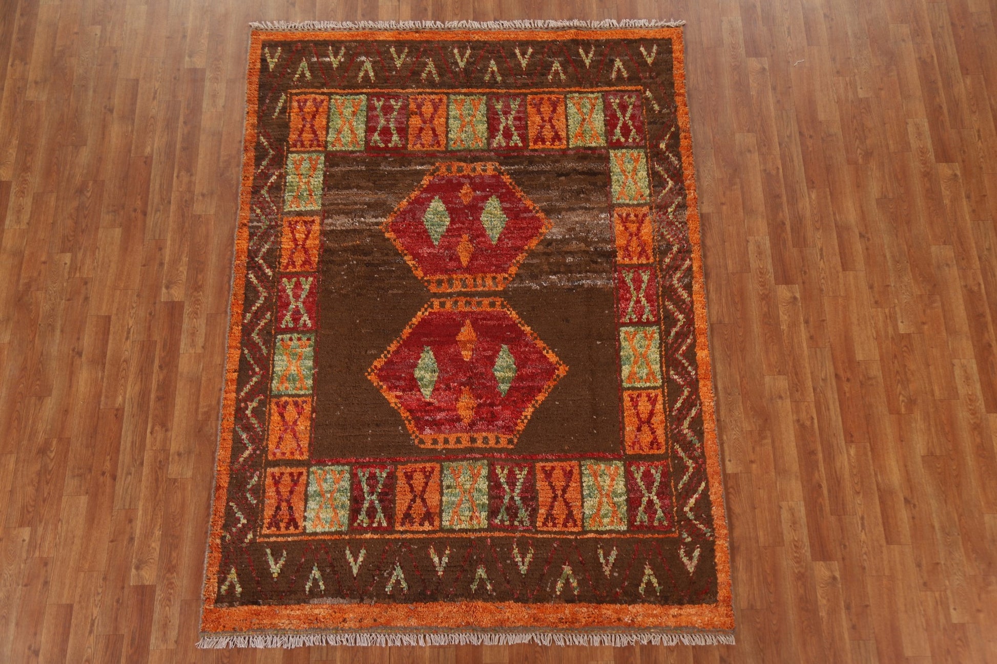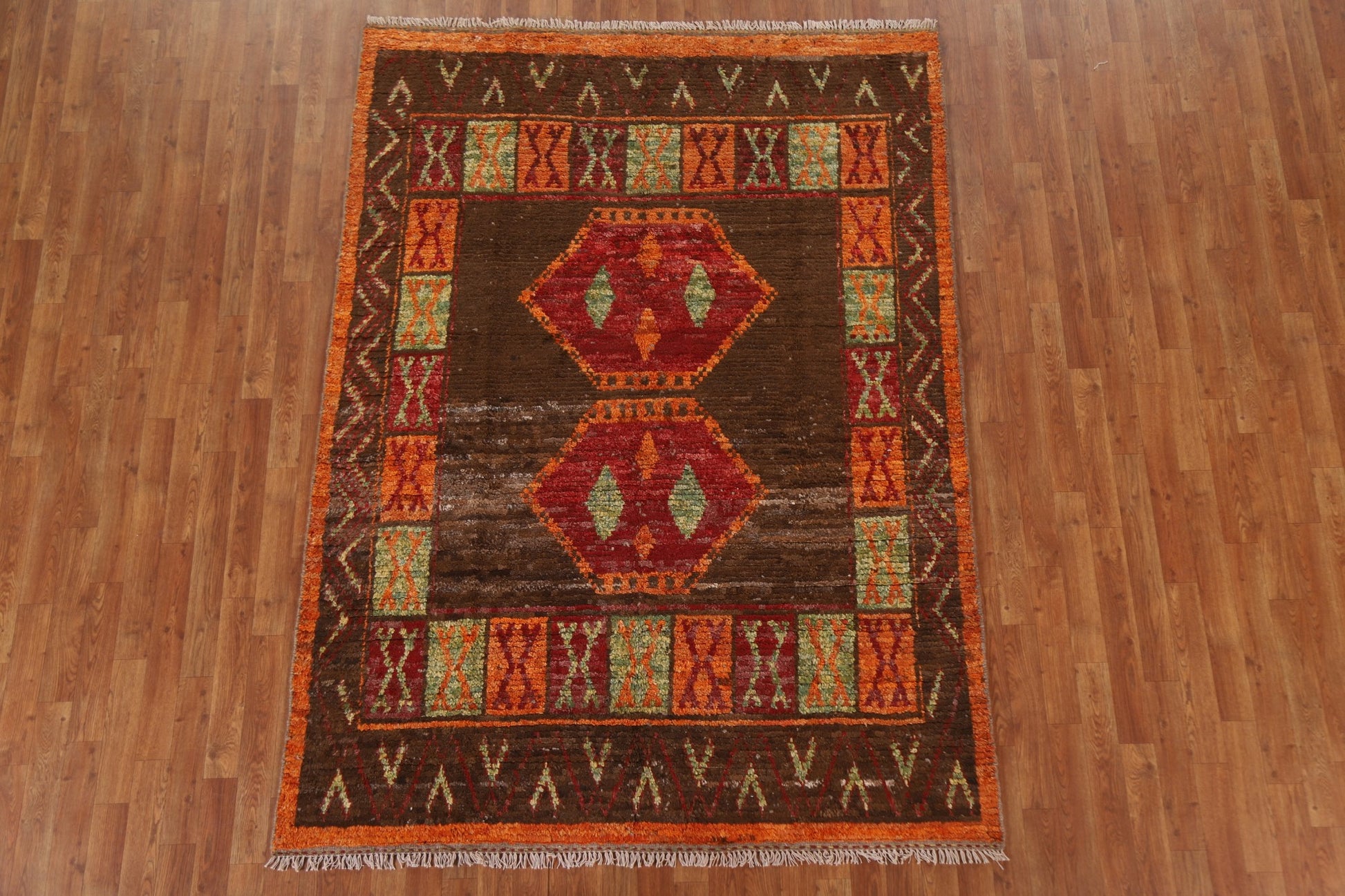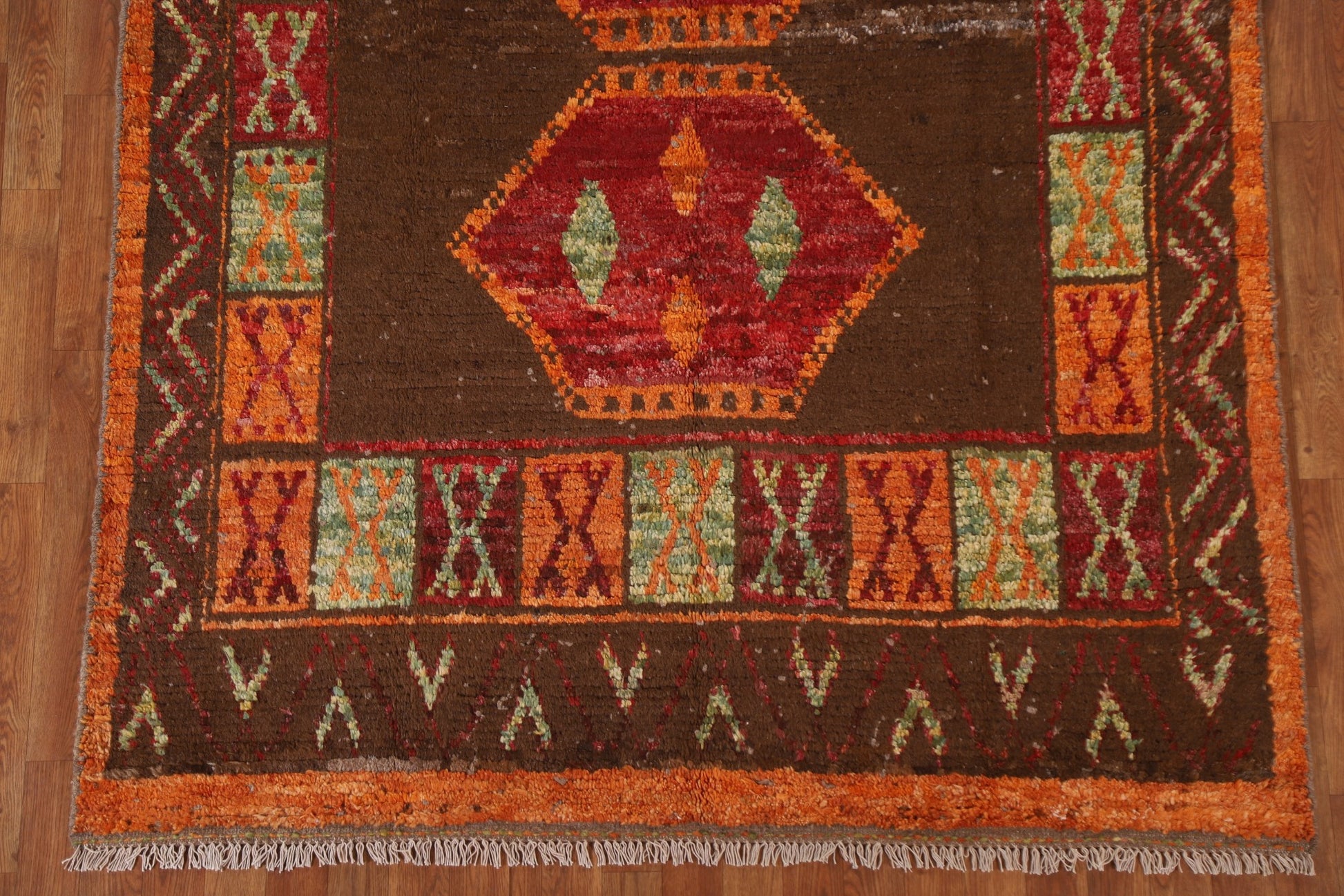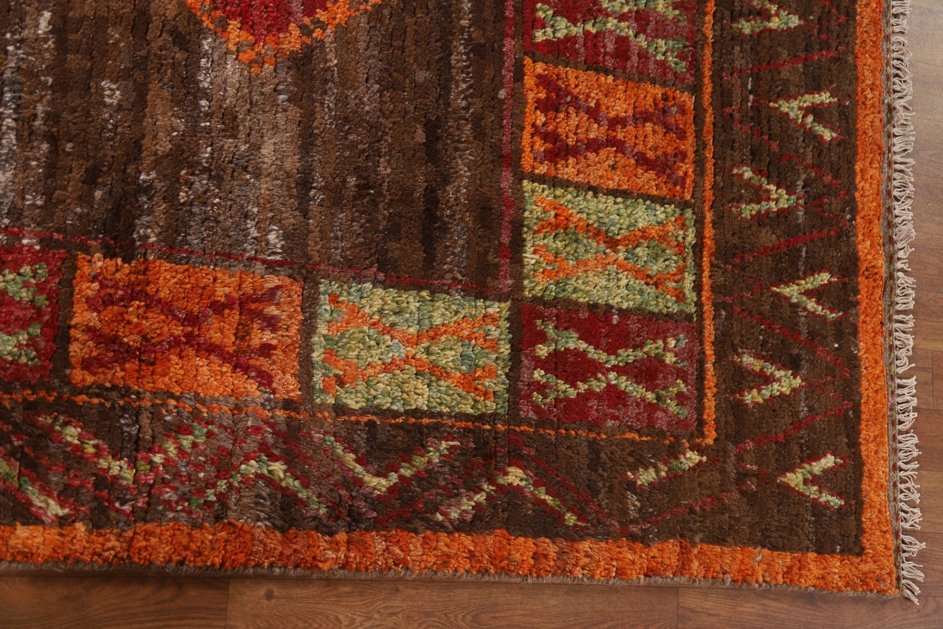 A Beautiful Genuine Pakistan Moroccan rug is Hand Knotted by skillful weavers in Pakistan with 100% Wool Material. This rug is in condition. dimensions are 7' 9'' X 5' 7'' in foot and 236 X 170 in centimeter. the primary color is Brown.