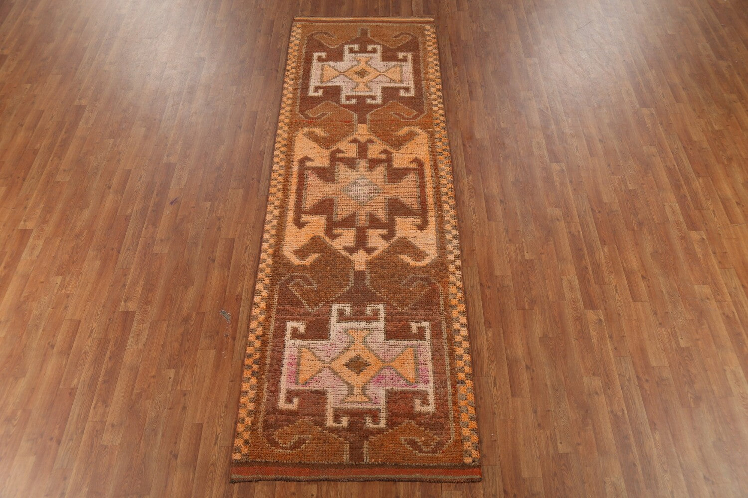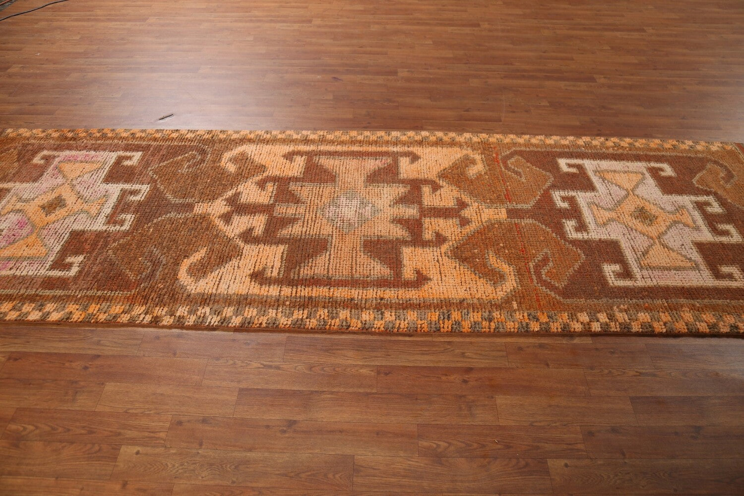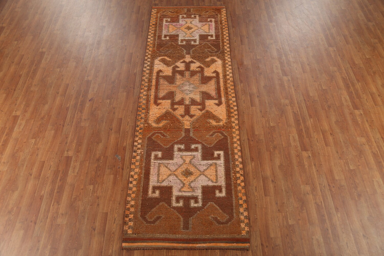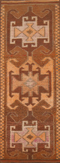 Brown & Orange Wool Oushak Turkish Runner Rug 3x11