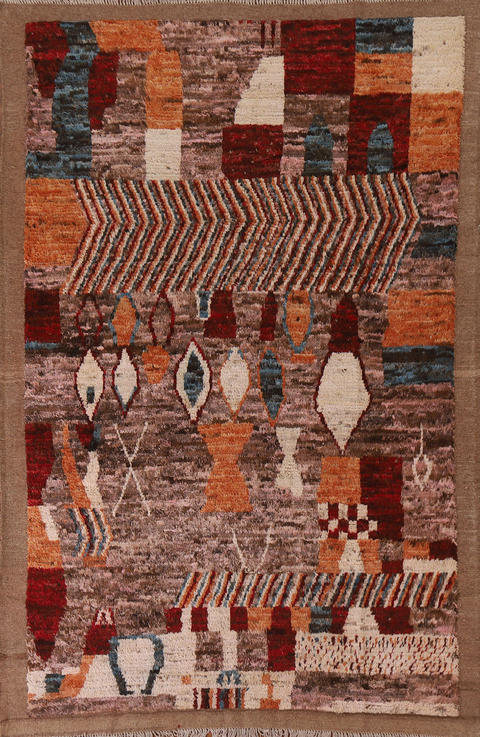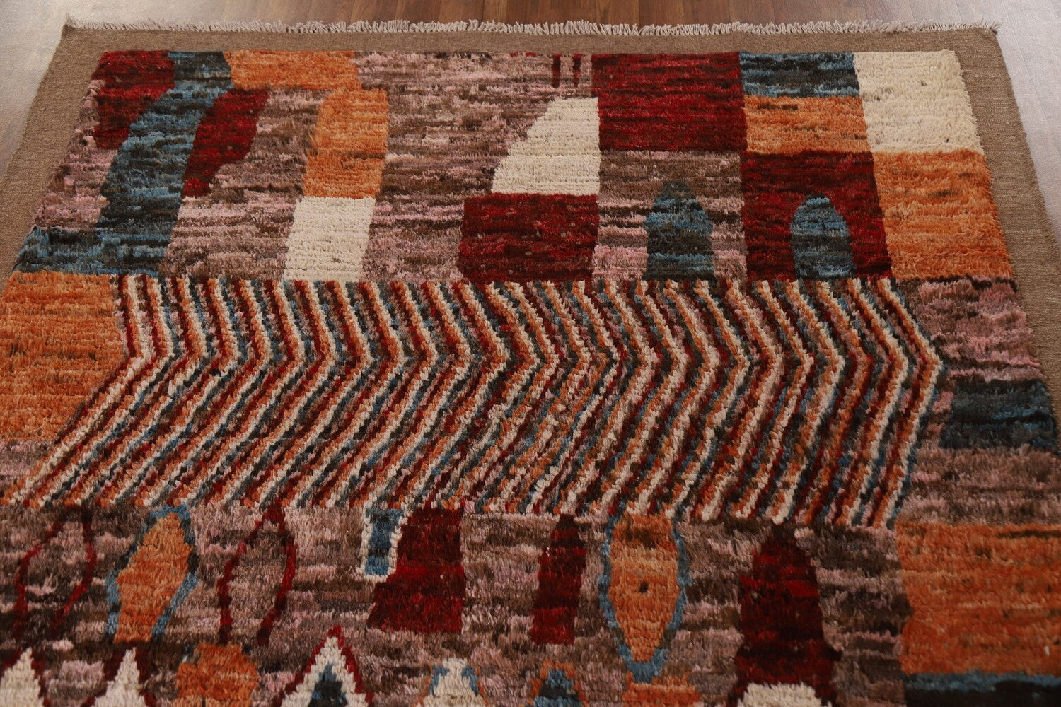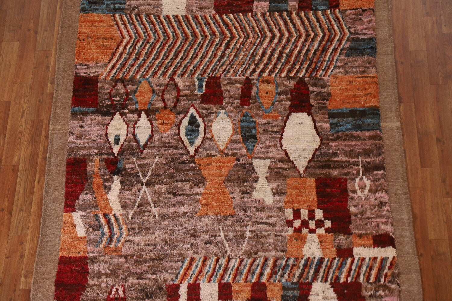 A Beautiful Genuine Pakistan Moroccan rug is Hand Knotted by skillful weavers in Pakistan with 100% Wool Material. This rug is in condition. dimensions are 8' 0'' X 5' 6'' in foot and 244 X 168 in centimeter. the primary color is Brown.
