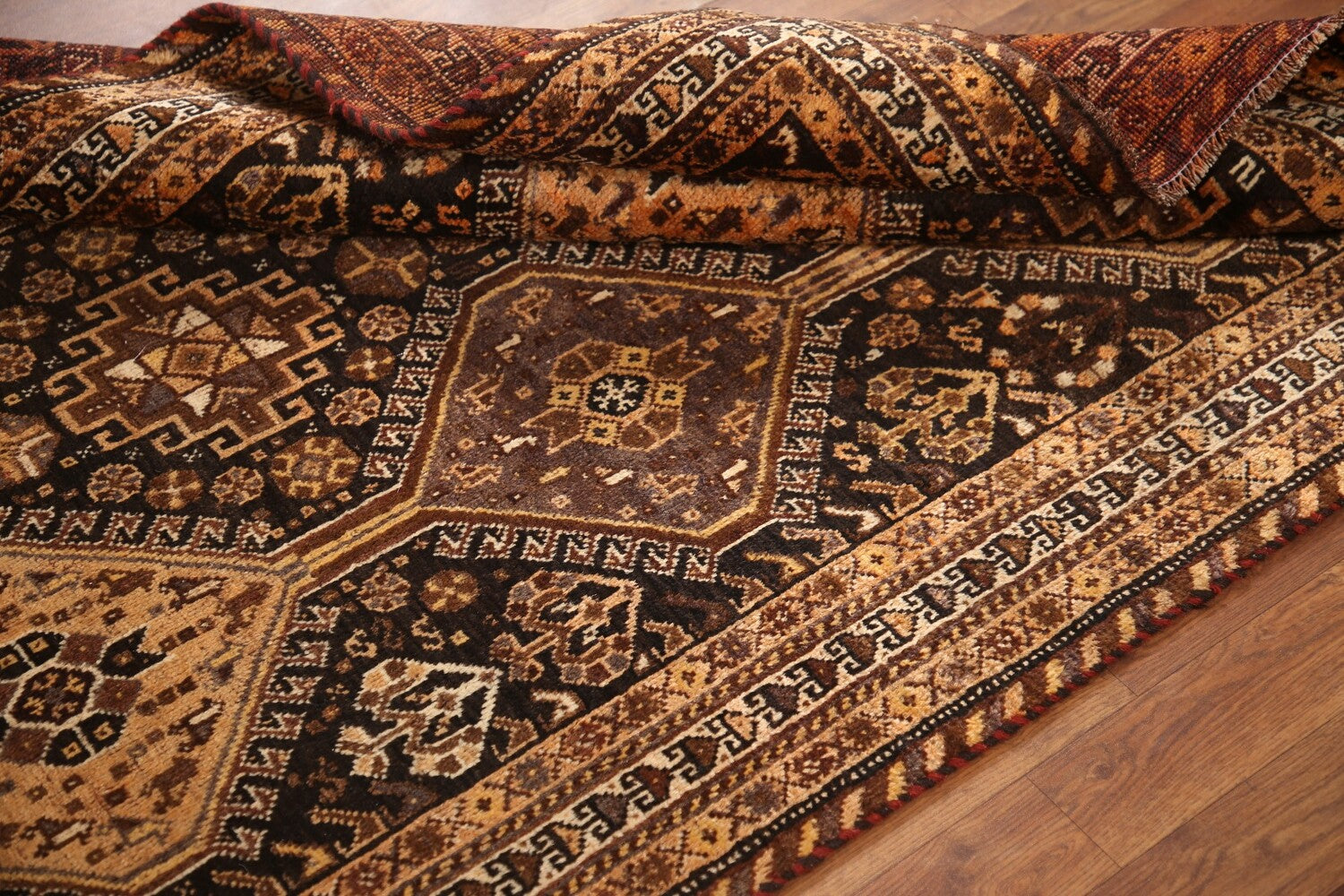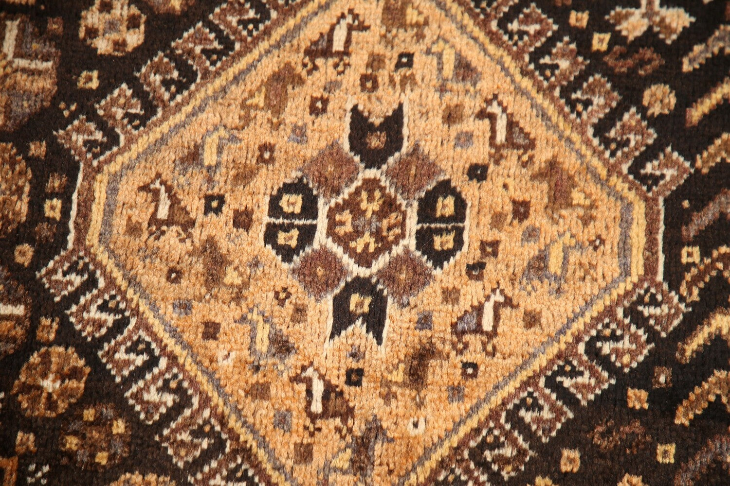 A Beautiful Genuine Persia ( Persia ) Qashqai rug is Hand Knotted by skillful weavers in Persia ( Persia ) with 100% Wool Material. This rug is in Very Good (Evenly Low Pile) condition. dimensions are 8' 10'' X 4' 0'' in foot and 269 X 122 in centimeter. the primary color is Brown.