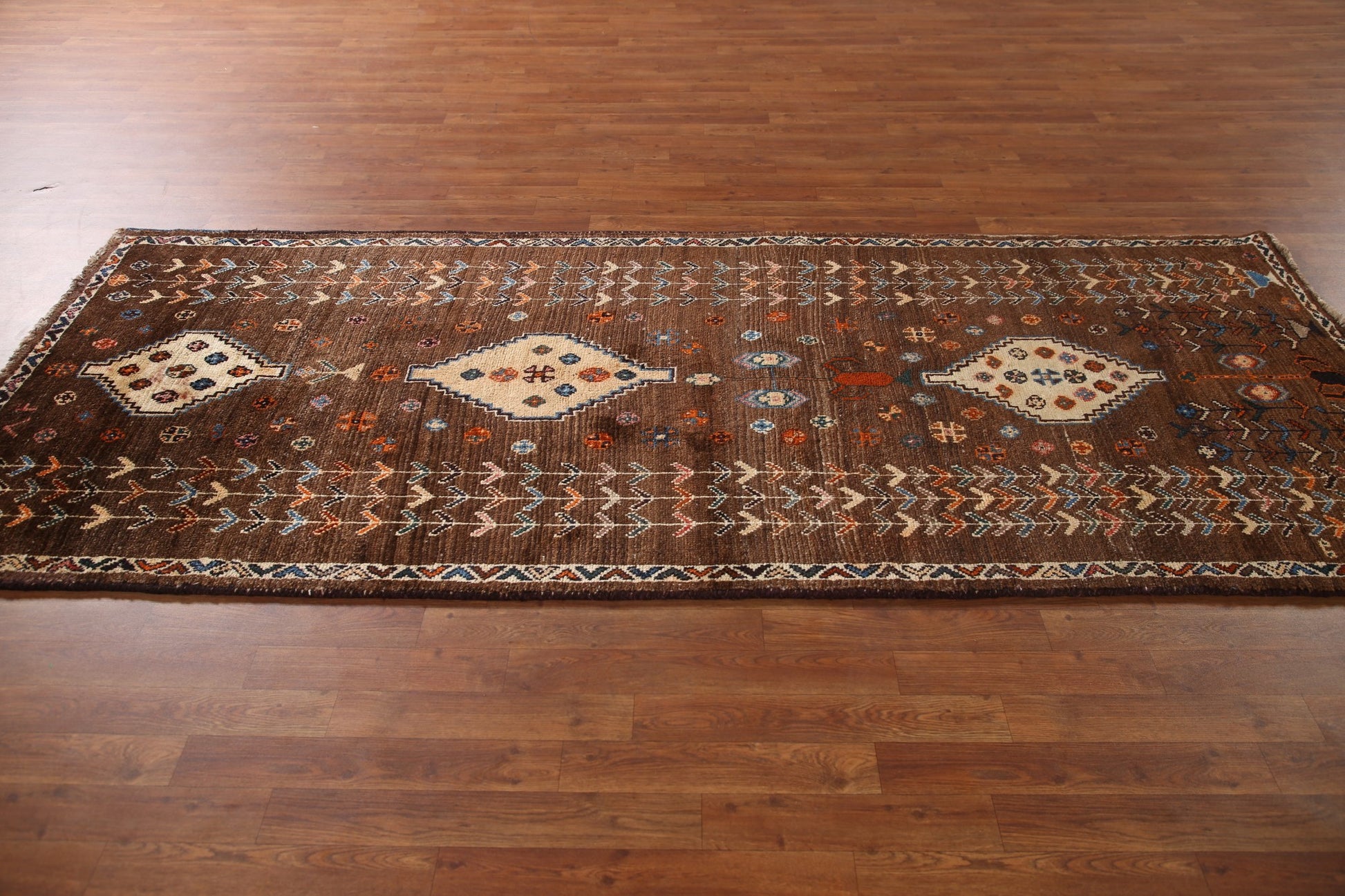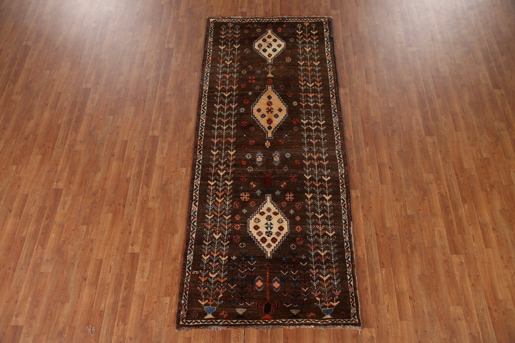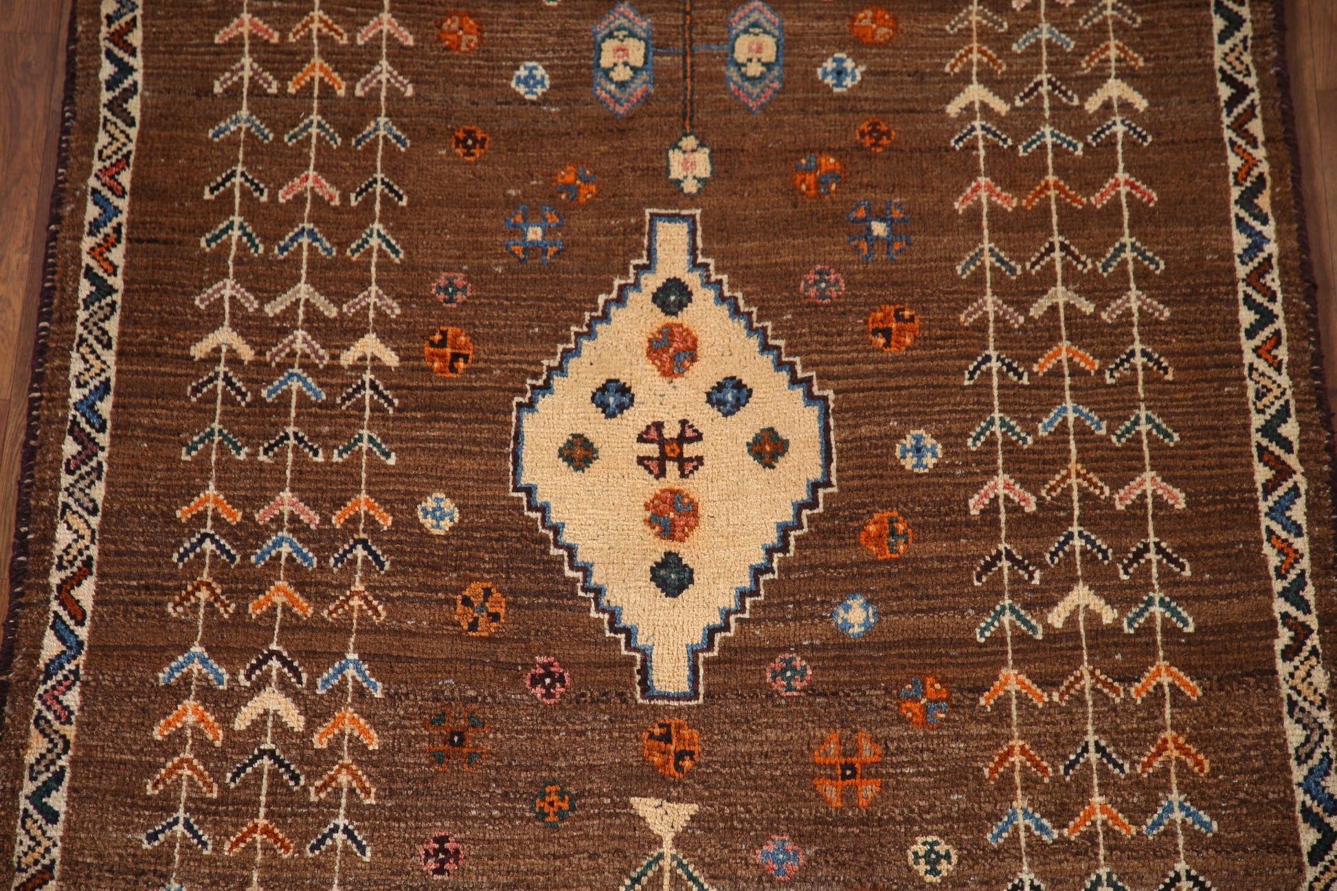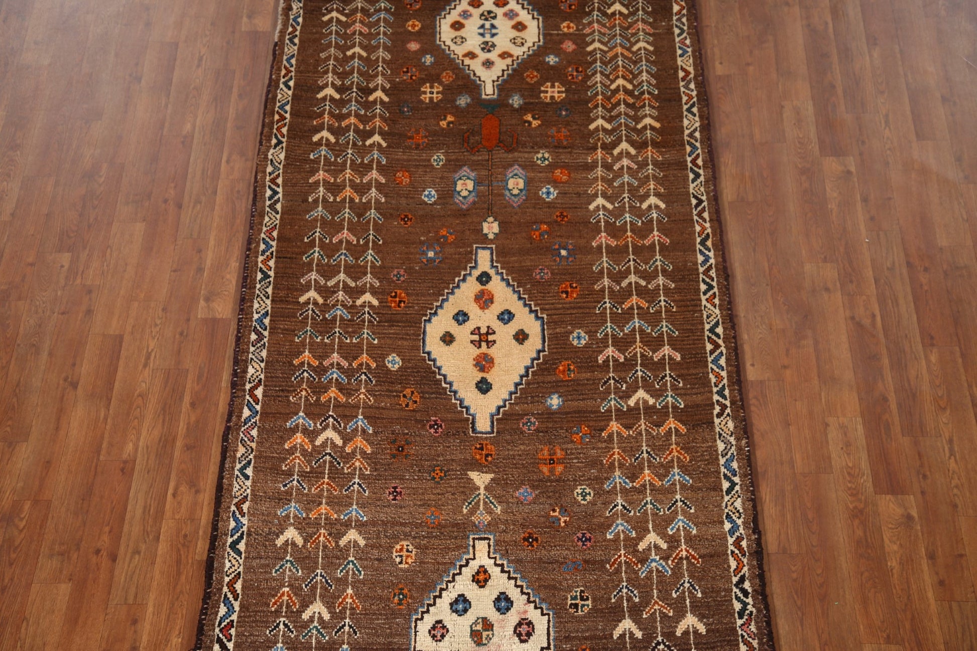 Brown Tribal Gabbeh Persian Runner Rug 4x9