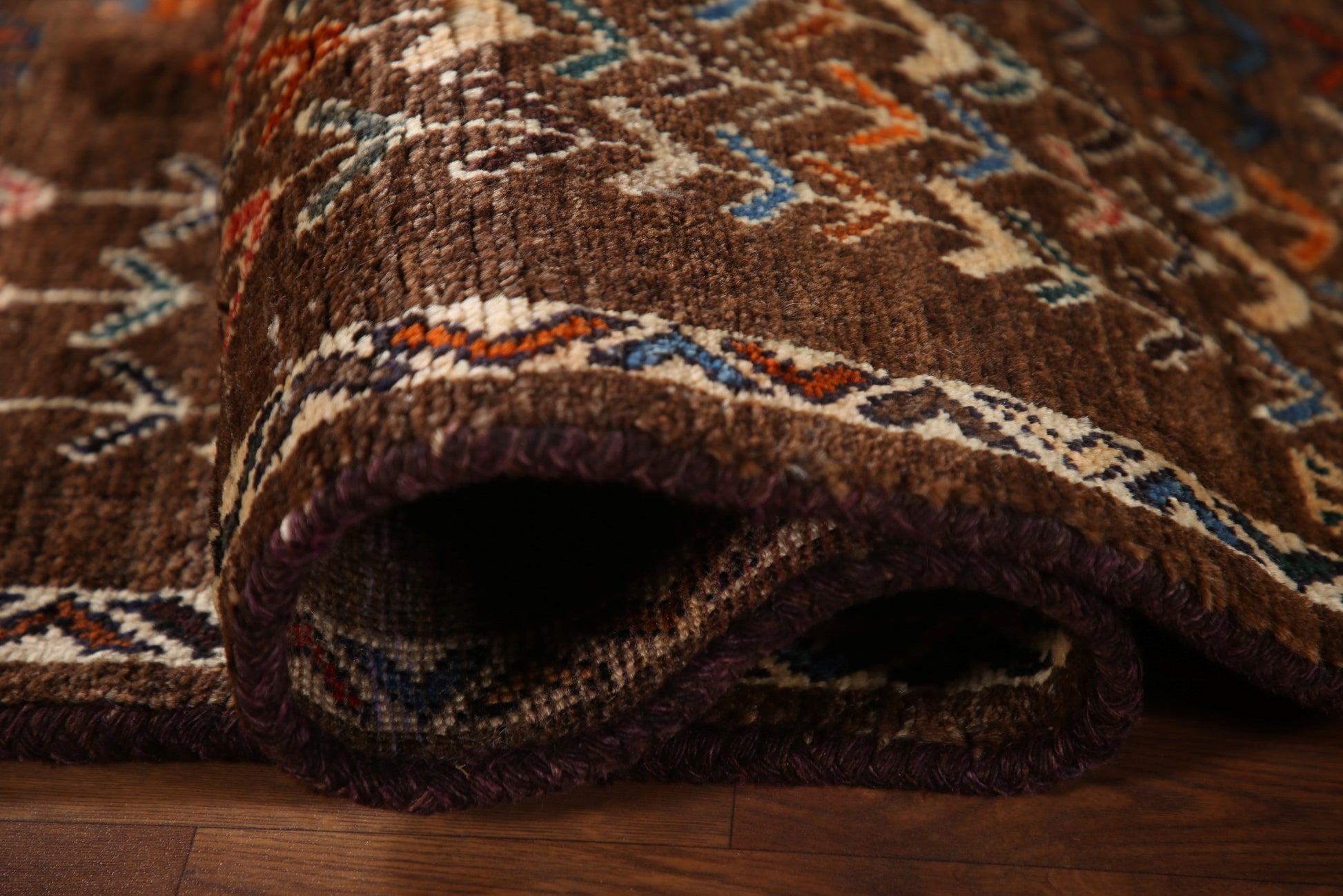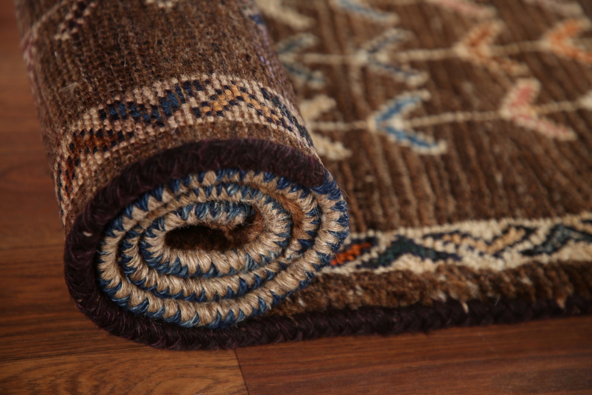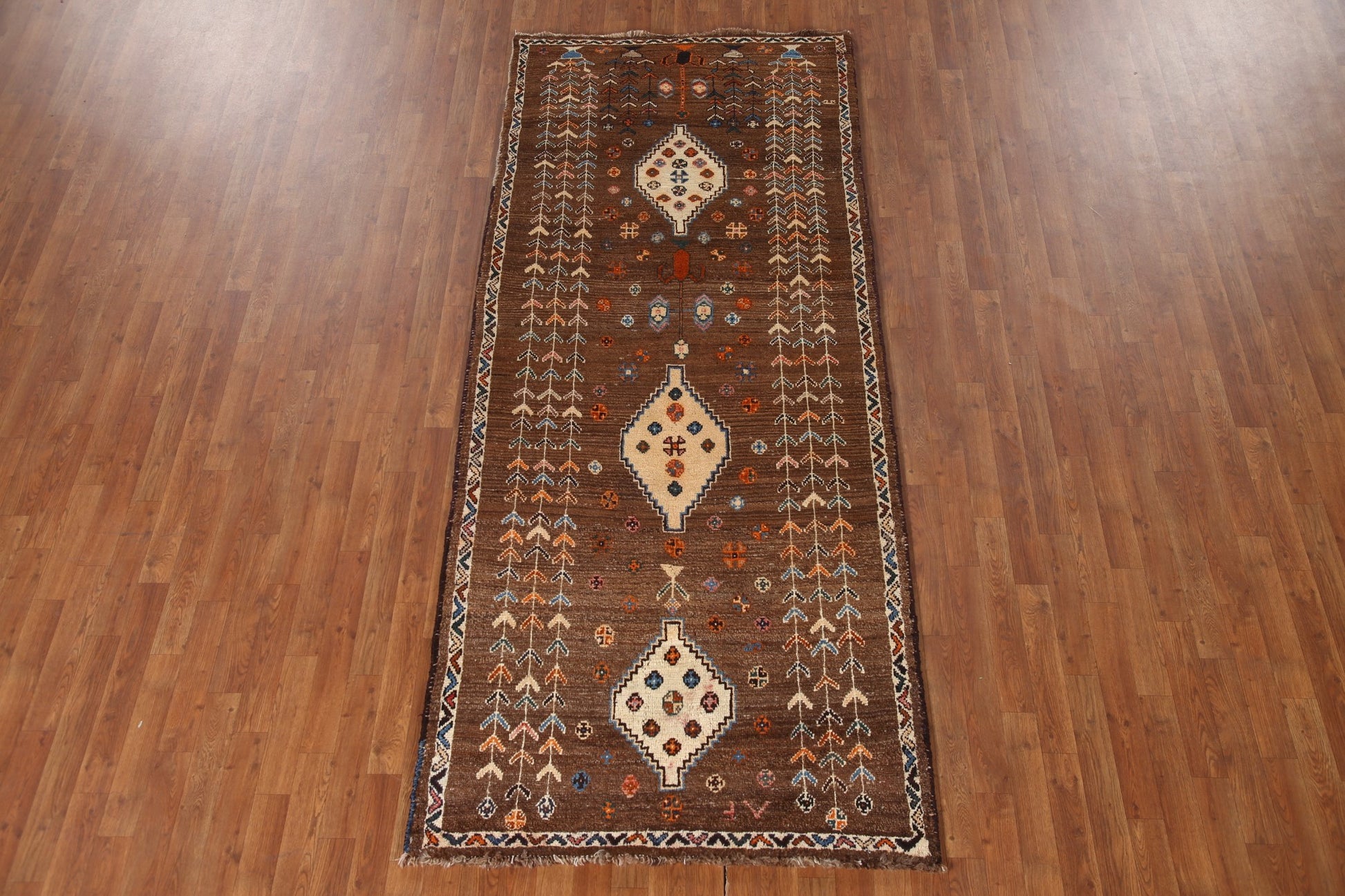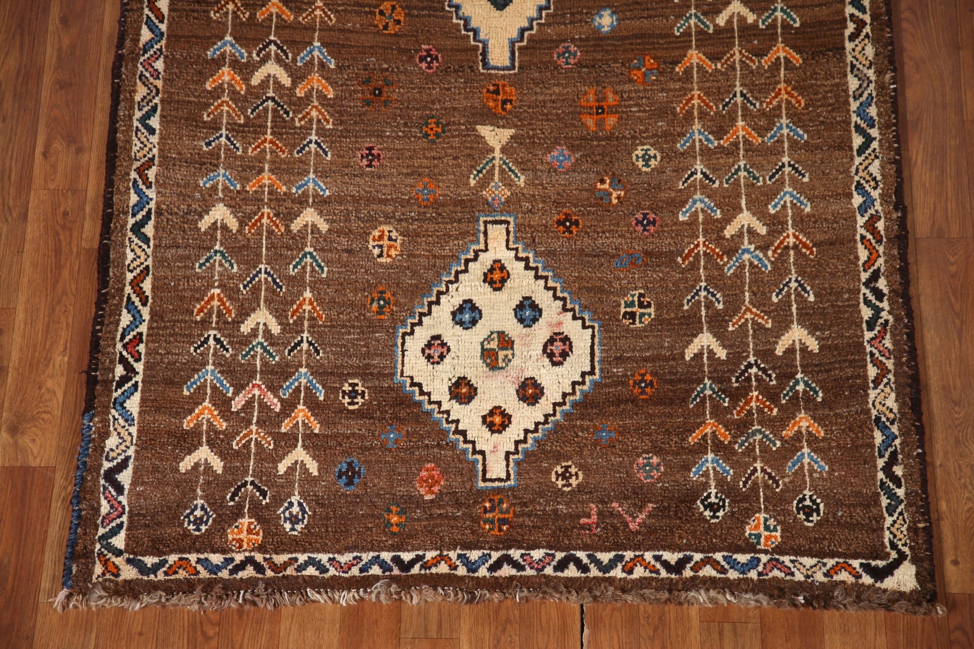 Brown Tribal Gabbeh Persian Runner Rug 4x9