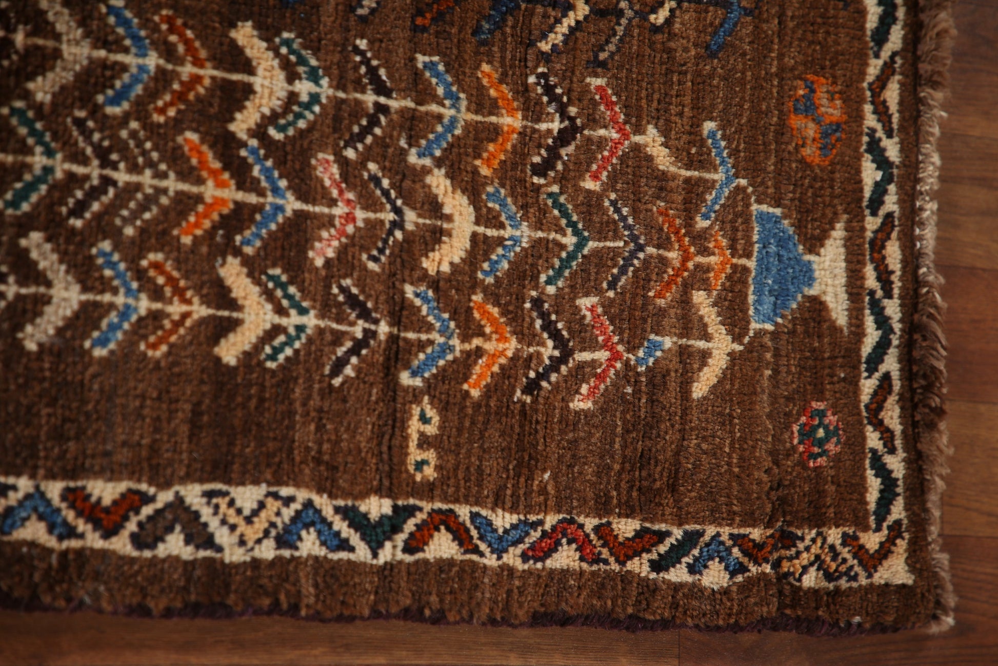 A Beautiful Genuine Persia ( Persia ) Gabbeh rug is Hand Knotted by skillful weavers in Persia ( Persia ) with 100% Wool Material. This rug is in Very Good condition. dimensions are 9' 4'' X 4' 0'' in foot and 284 X 122 in centimeter. the primary color is Brown.