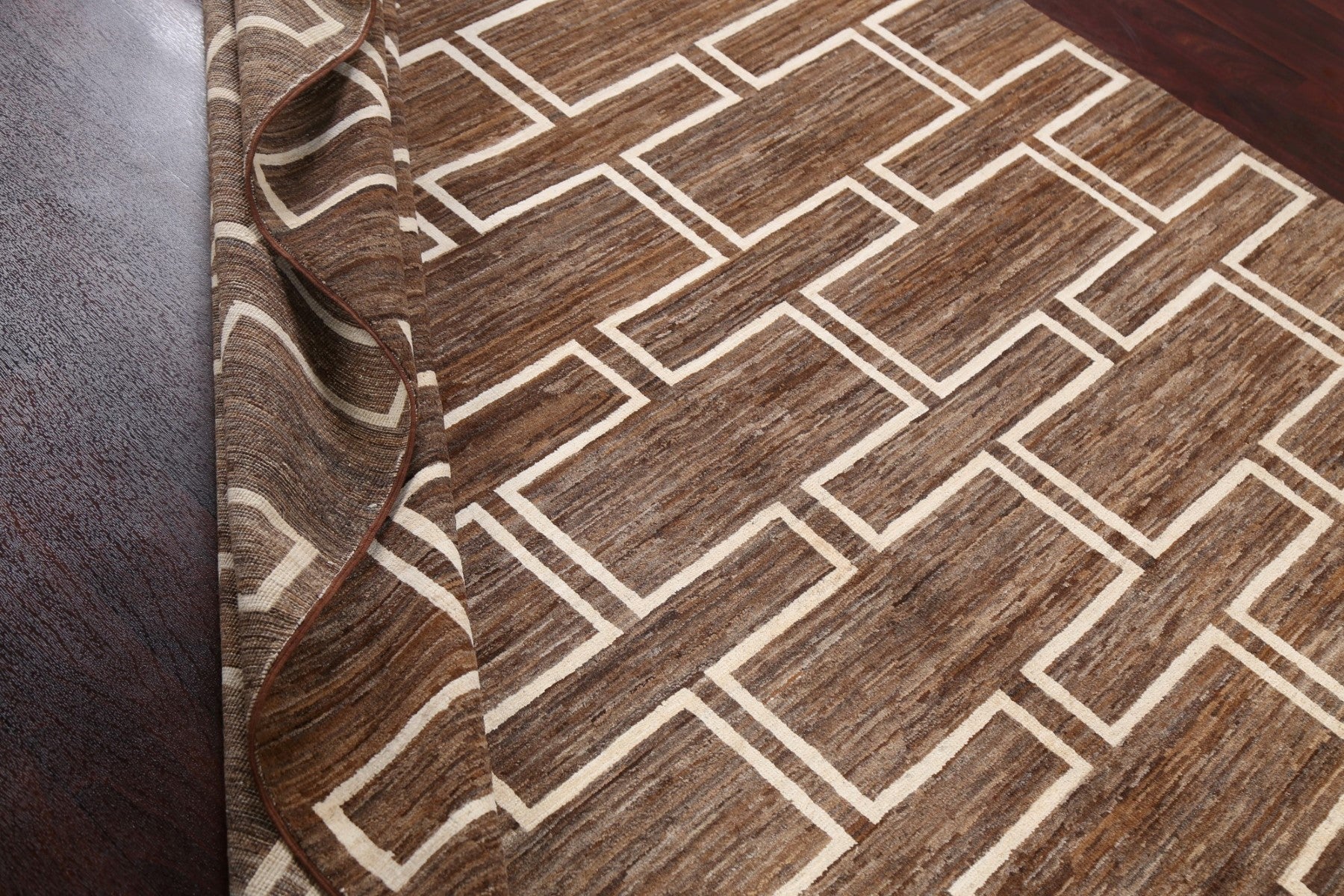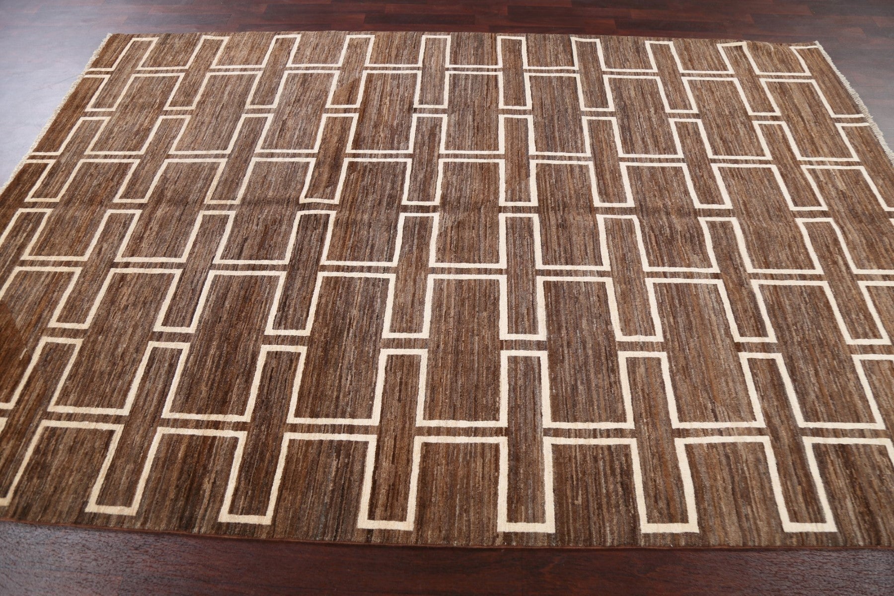 A Beautiful Genuine Persia ( Persia ) Gabbeh rug is Hand Knotted by skillful weavers in Persia ( Persia ) with 100% Wool Material. This rug is in New, First Quality condition. dimensions are 9' 1'' X 6' 3'' in foot and 277 X 191 in centimeter. the primary color is Brown.