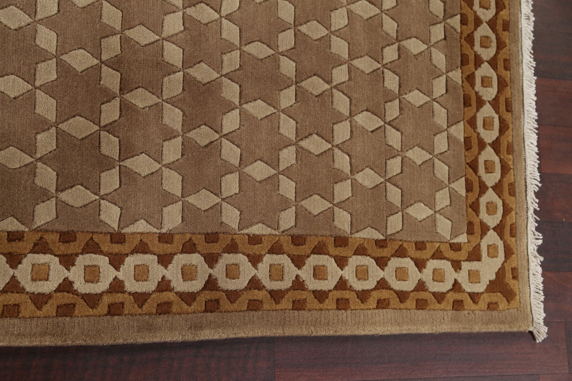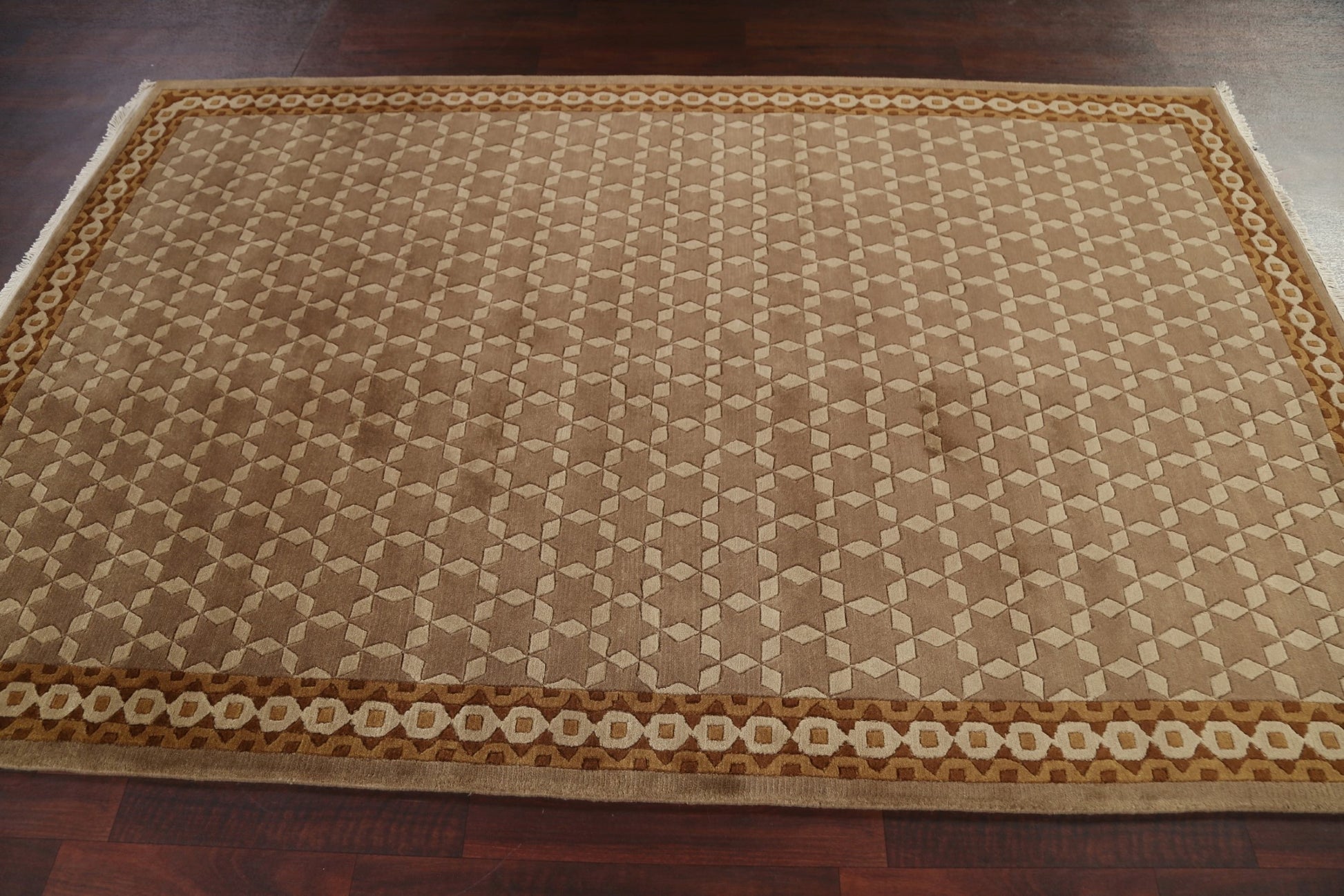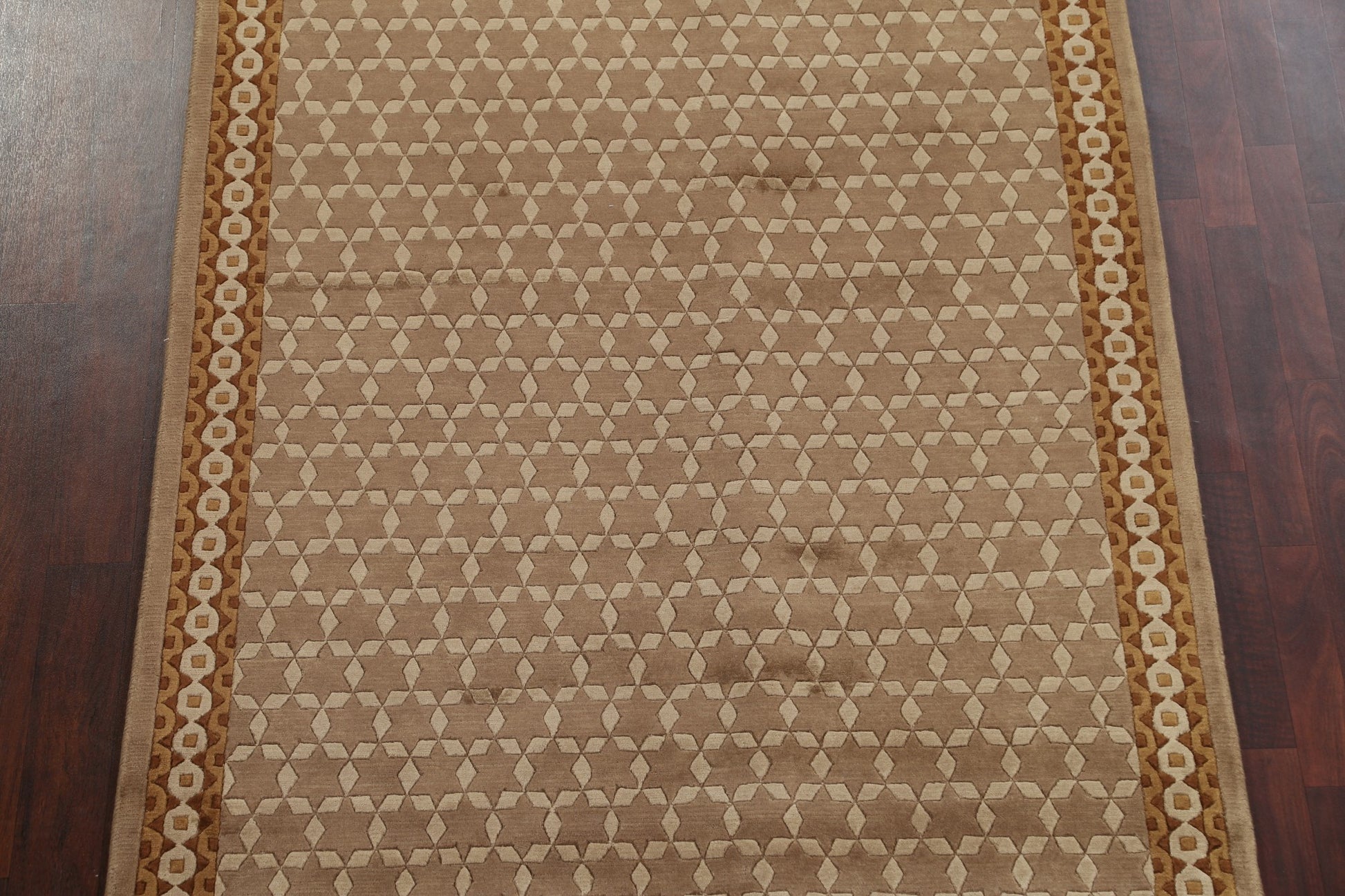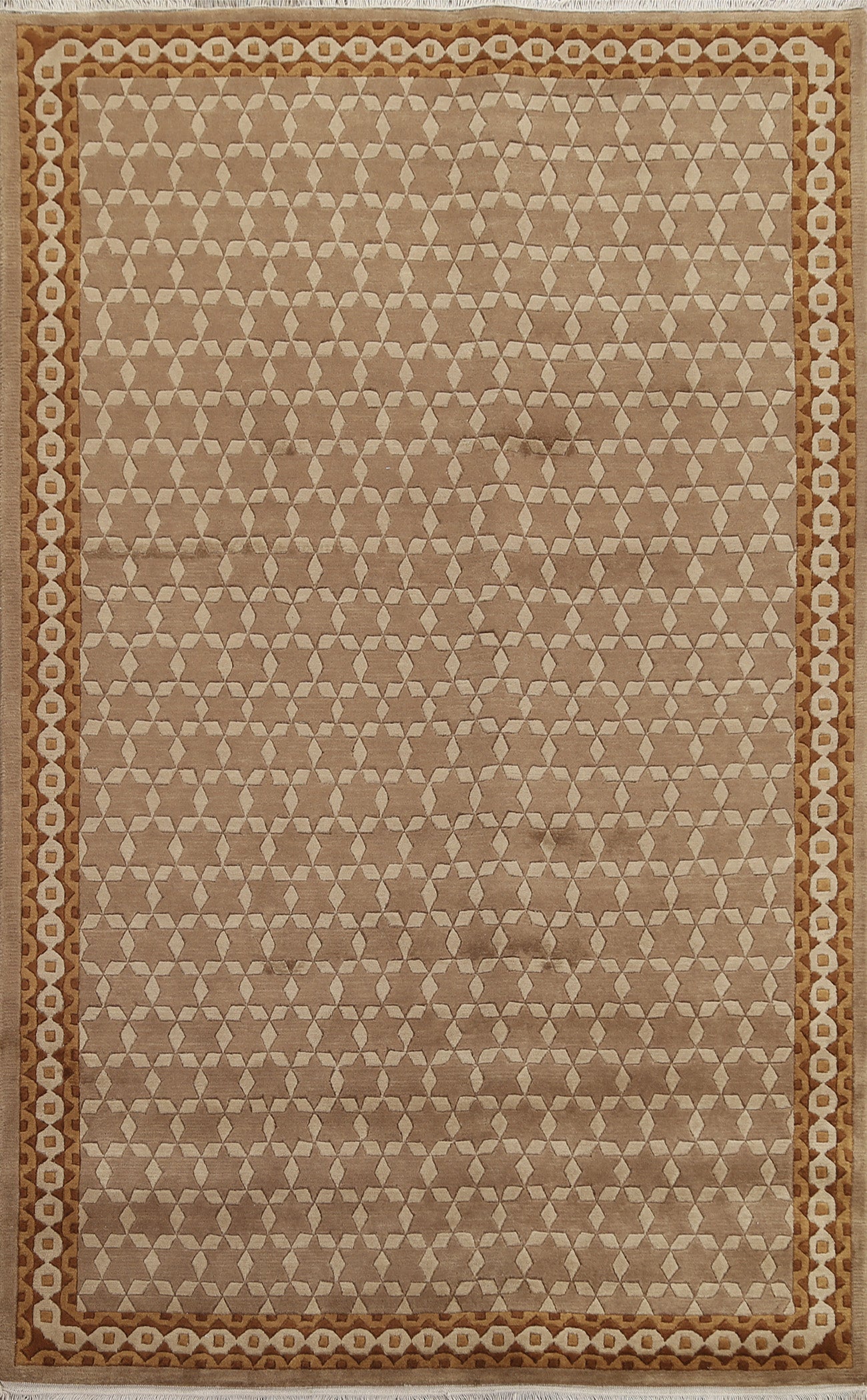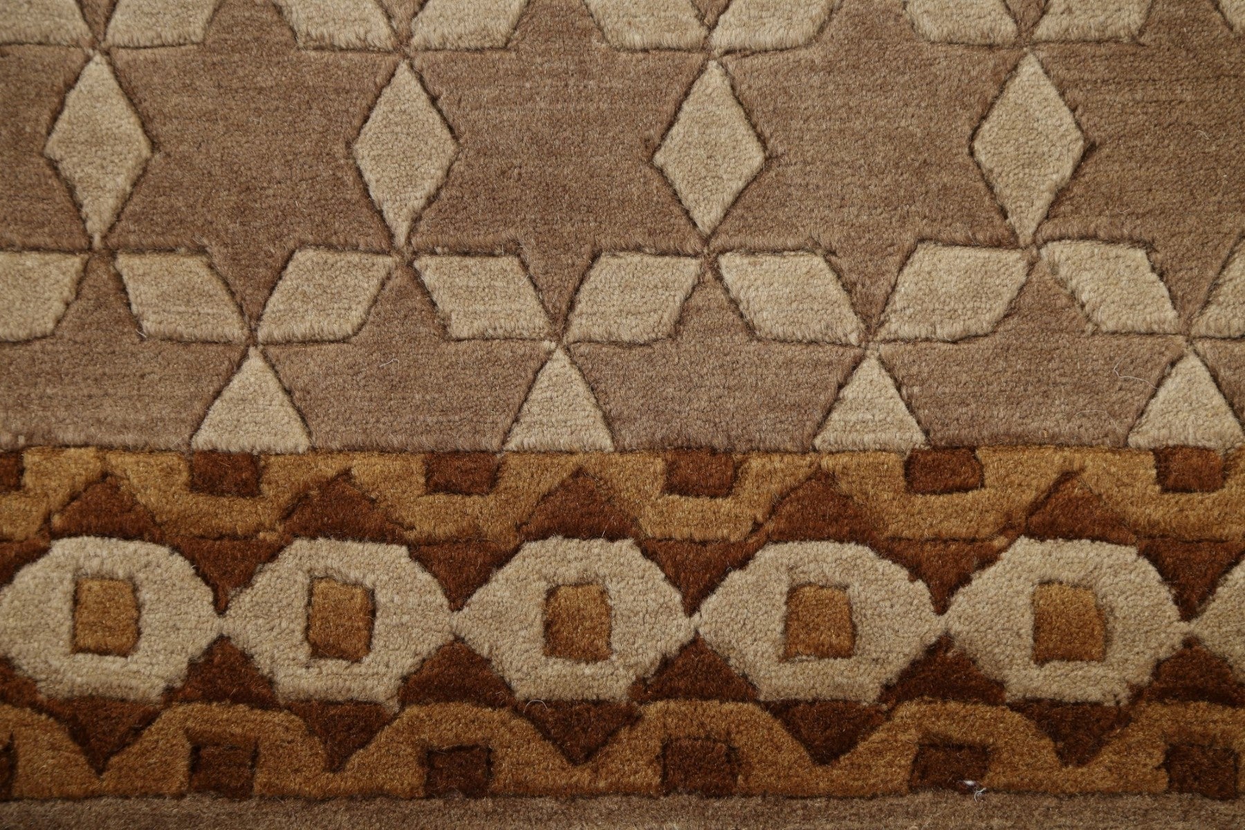 Brown Wool Geometric Nepalese Oriental Area Rug 5x8