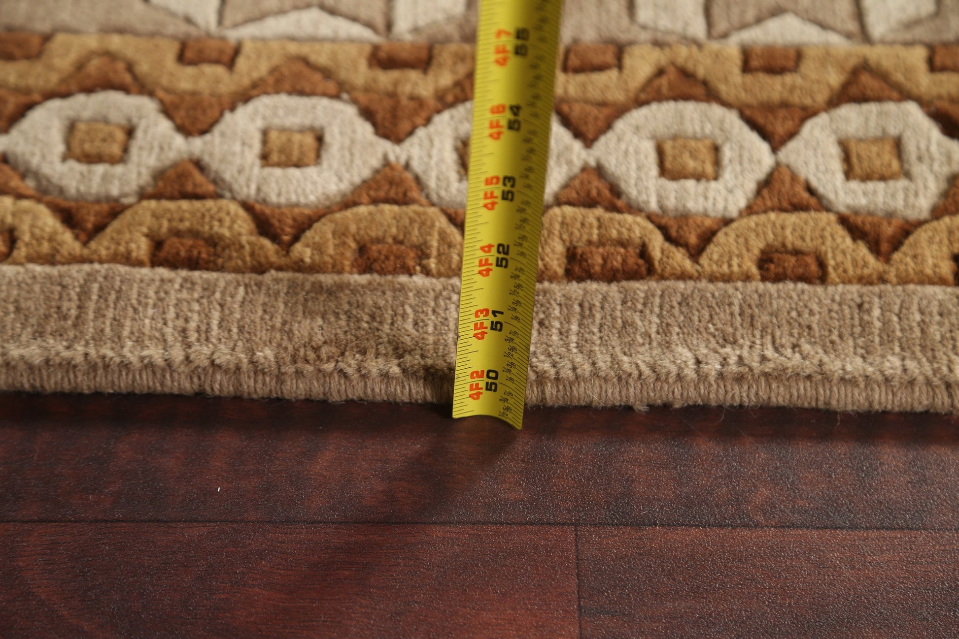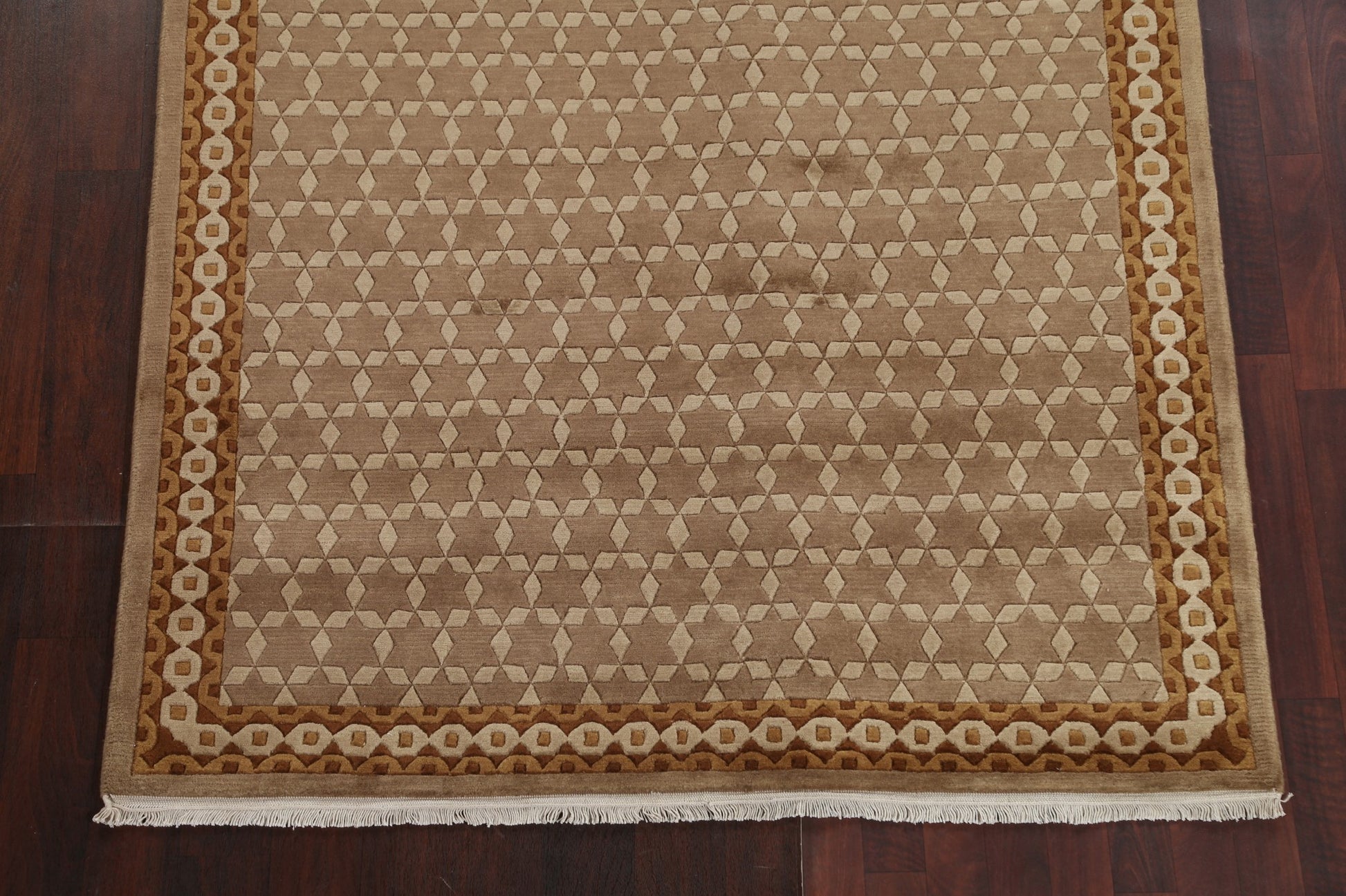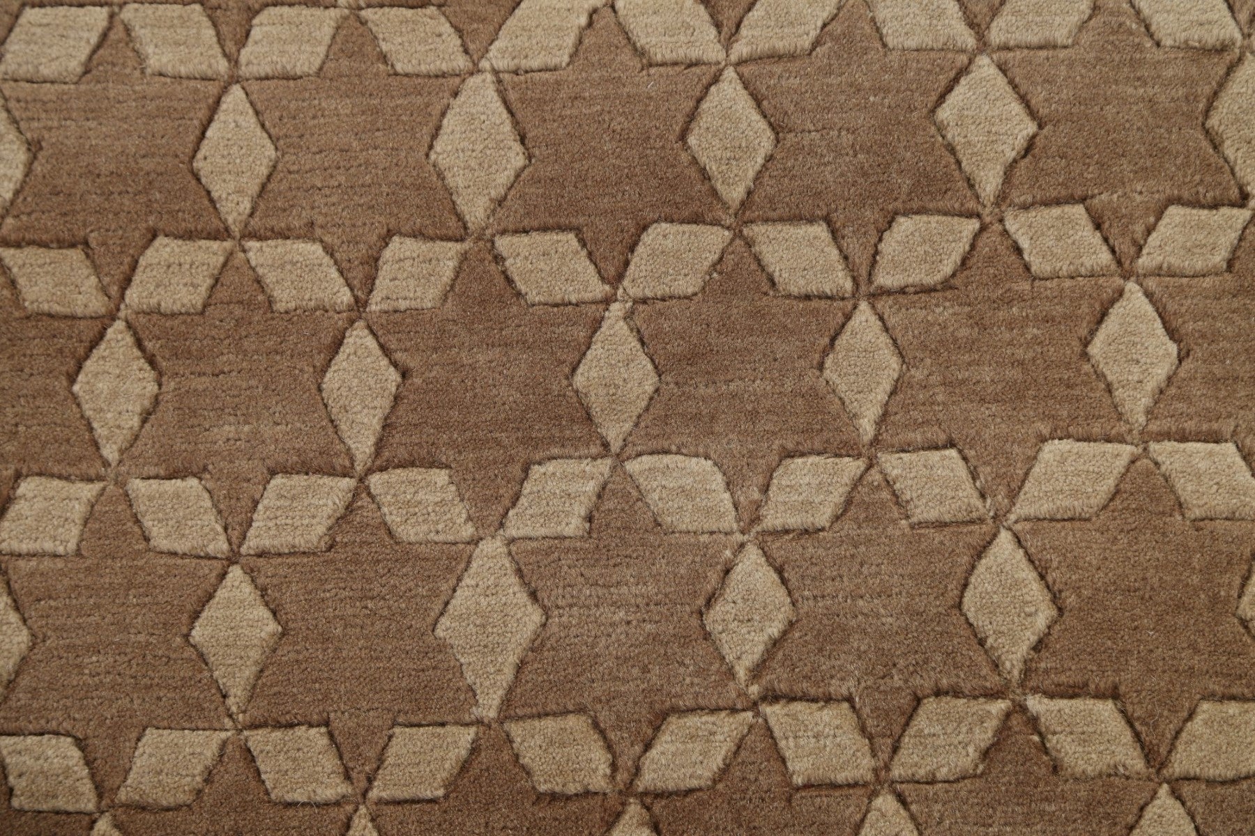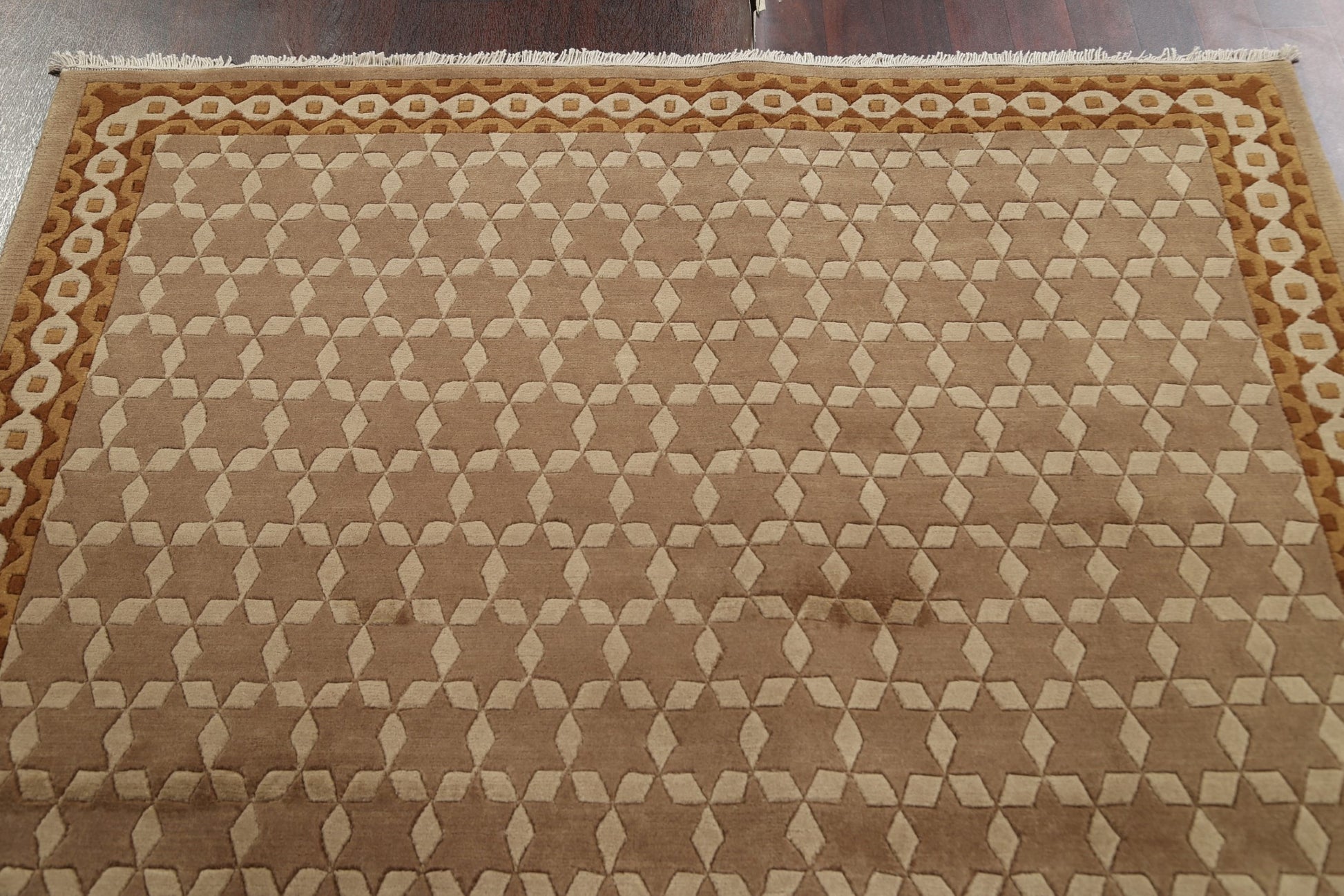 Brown Wool Geometric Nepalese Oriental Area Rug 5x8