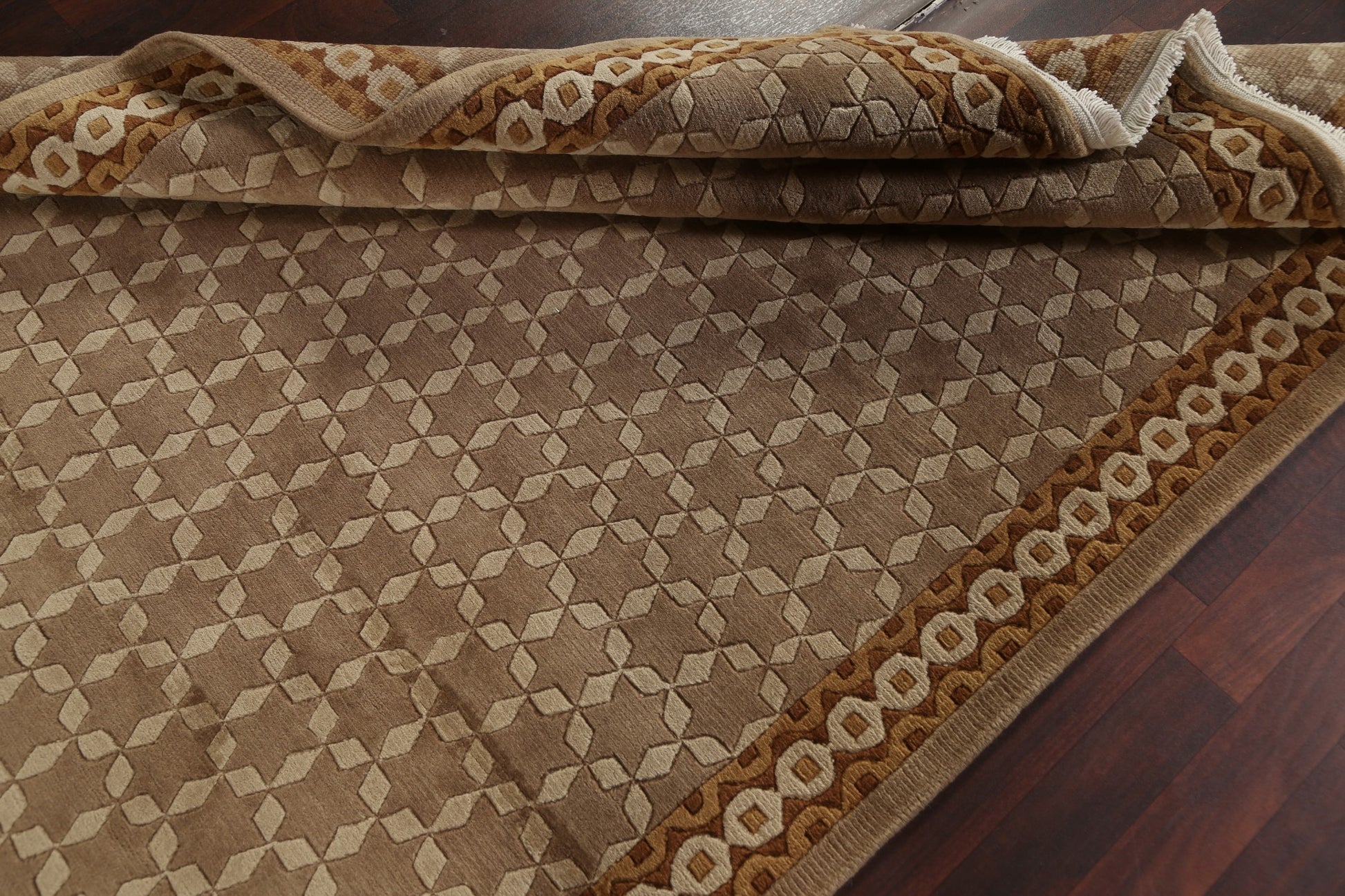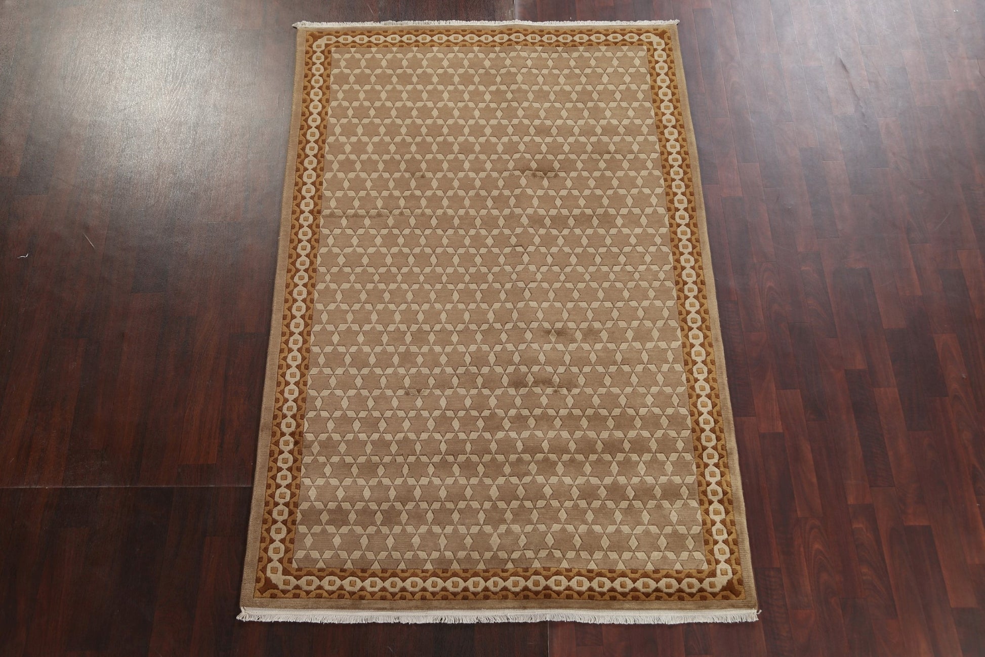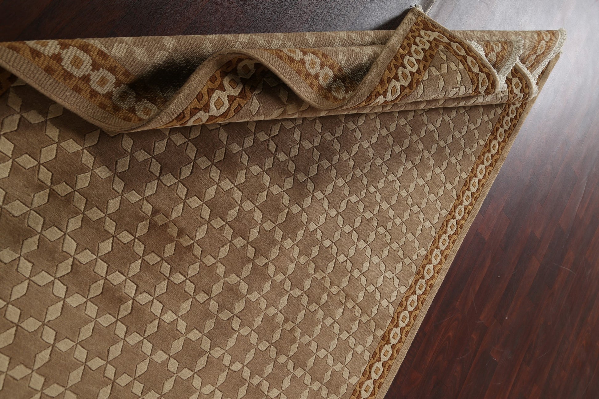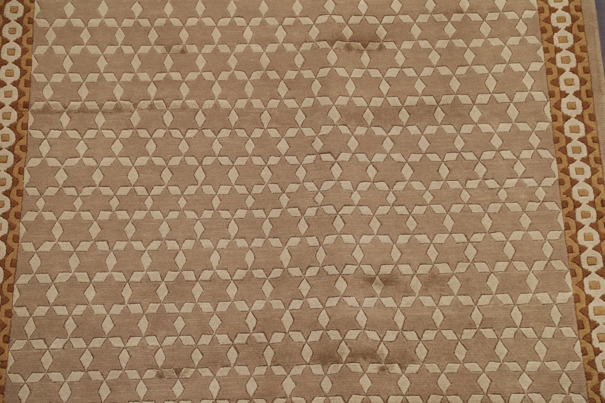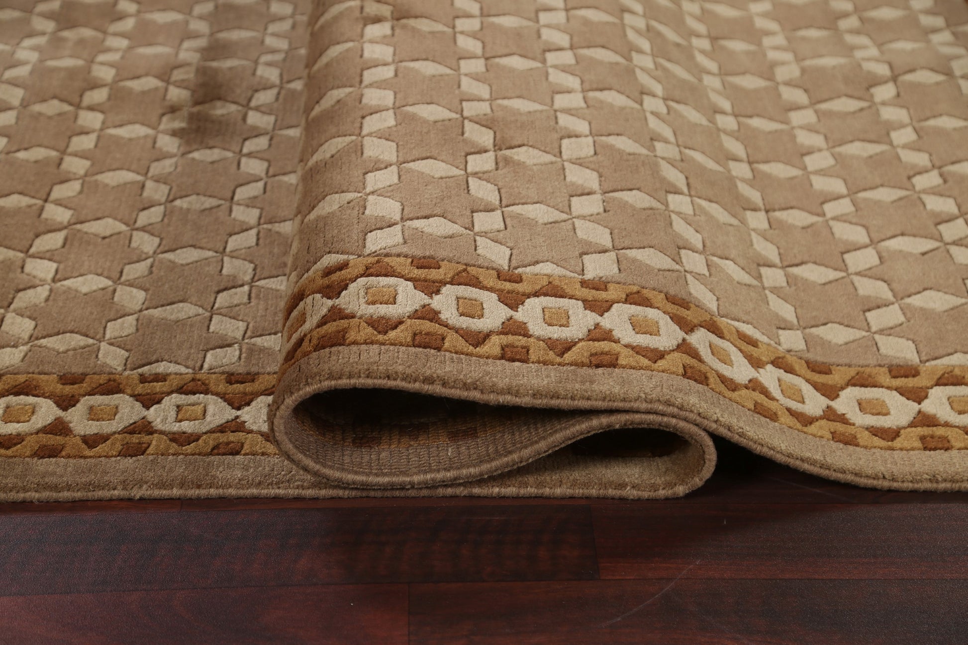 Brown Wool Geometric Nepalese Oriental Area Rug 5x8