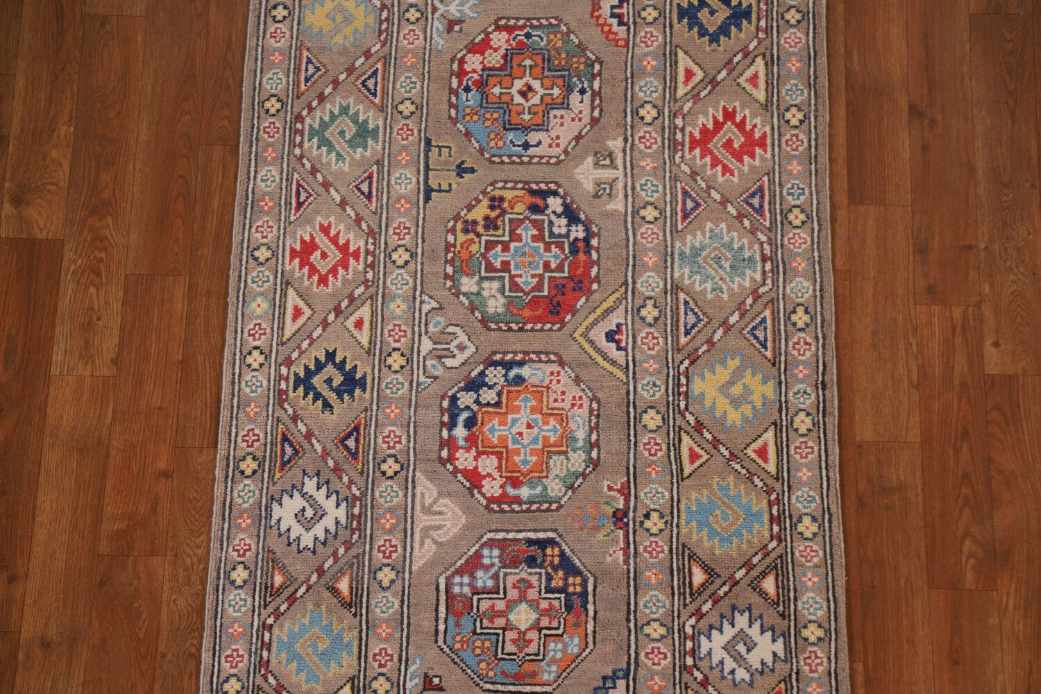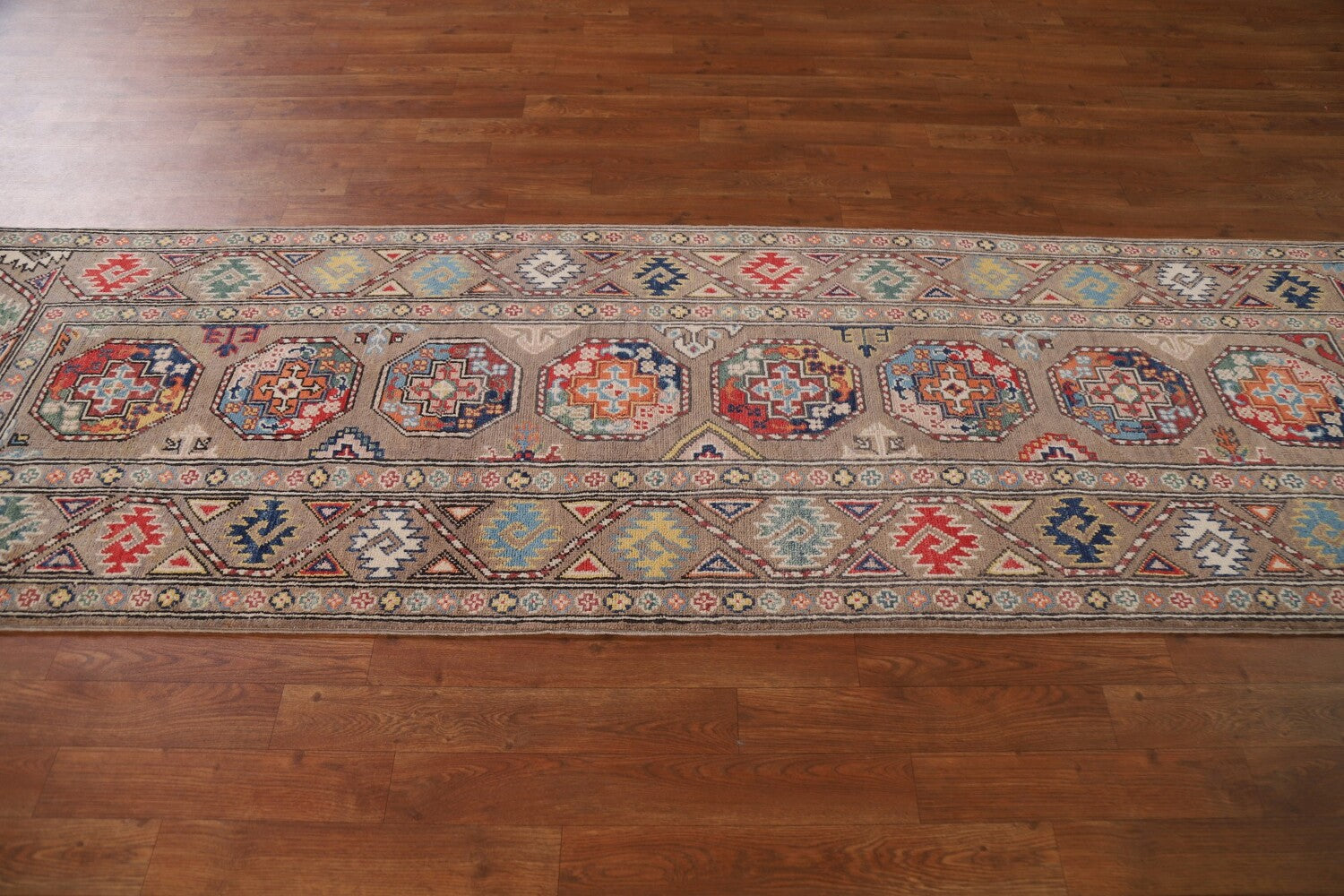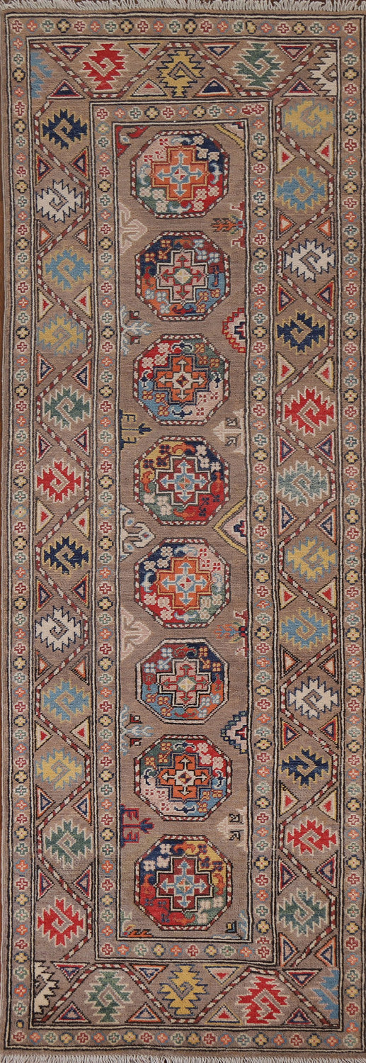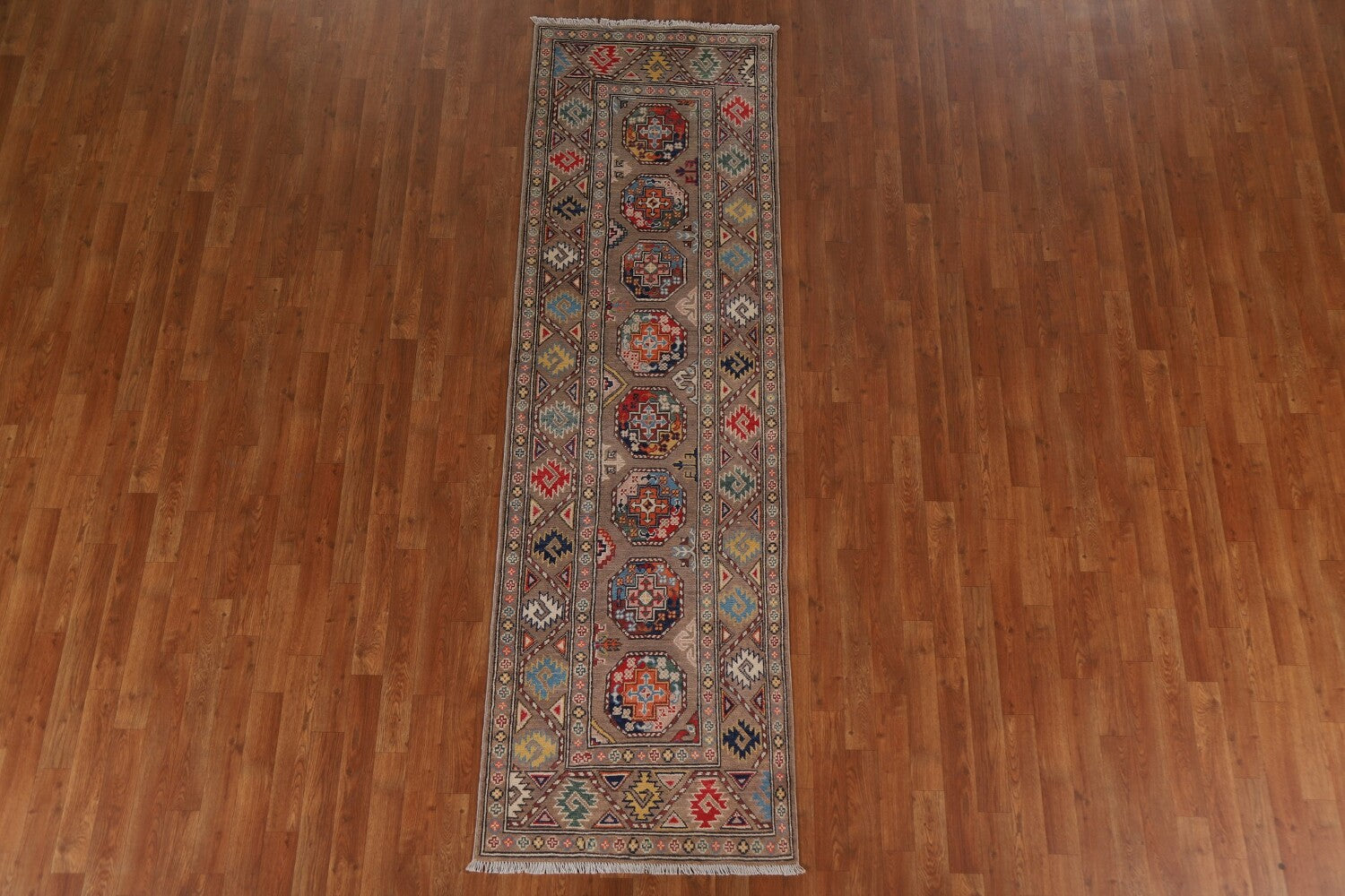 Brown Wool Kazak Oriental Runner Rug 3x9