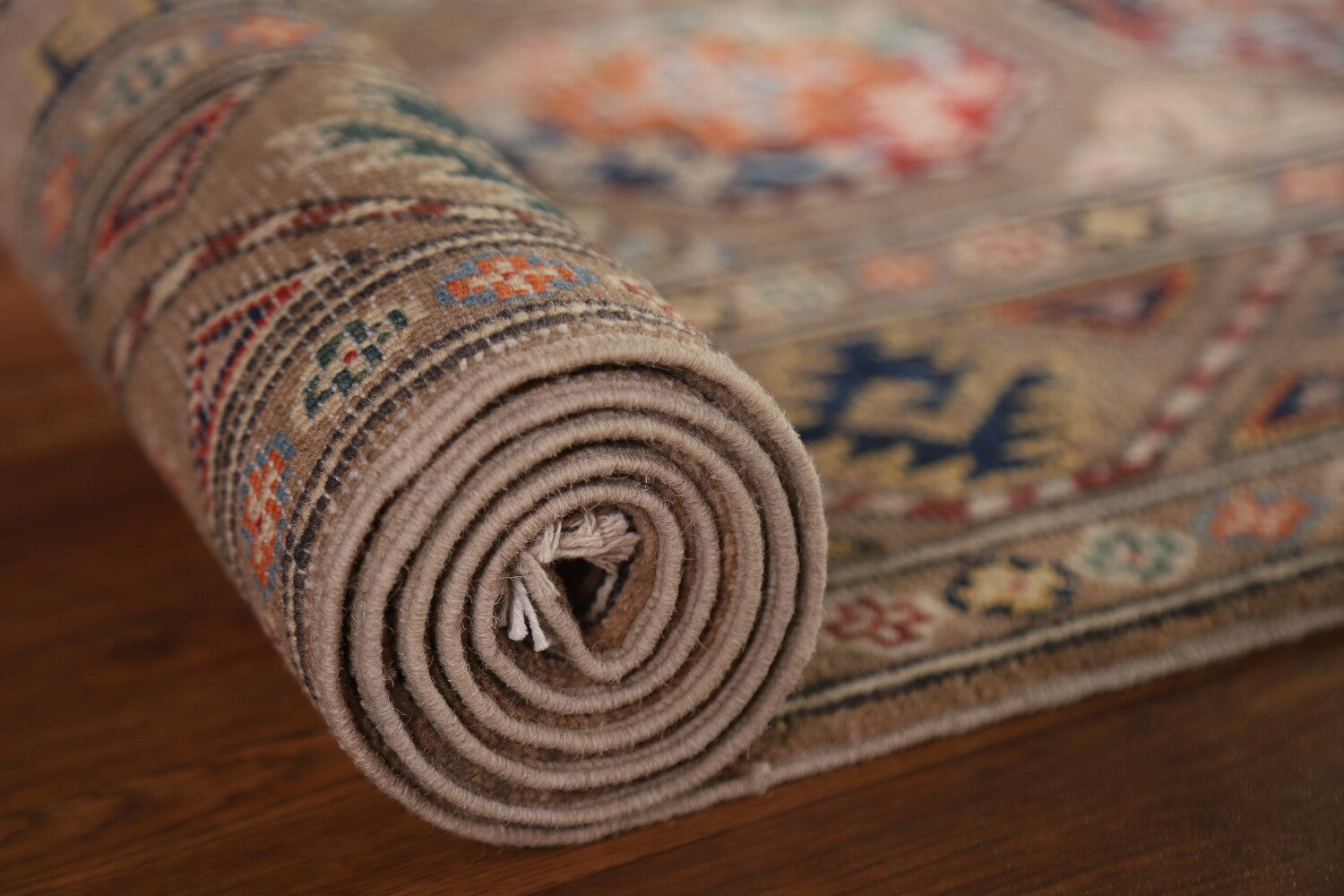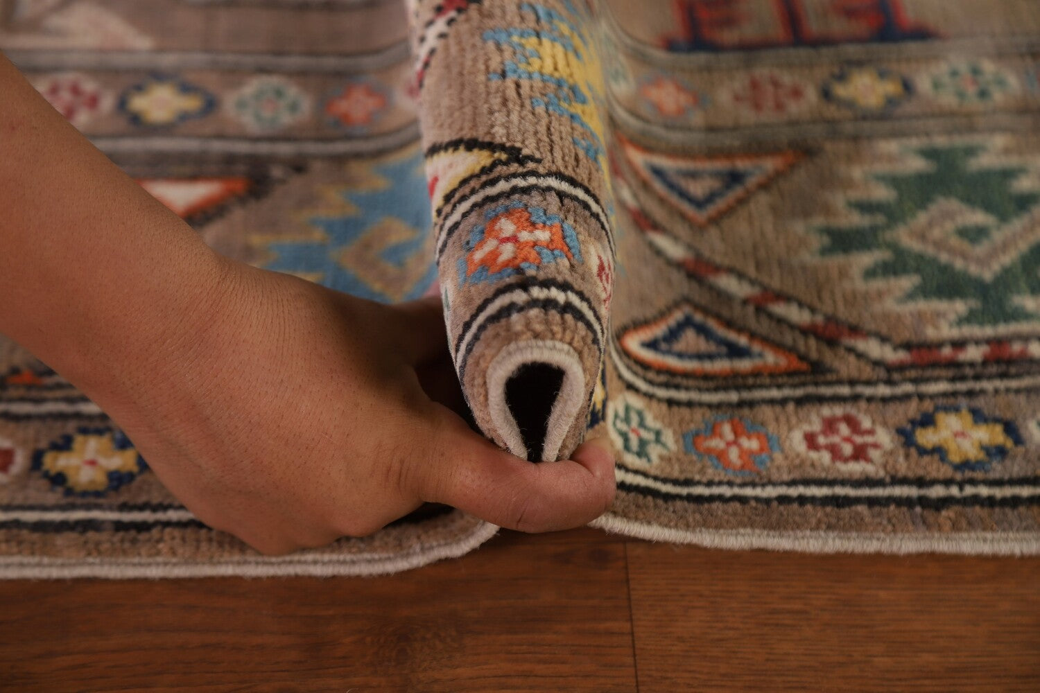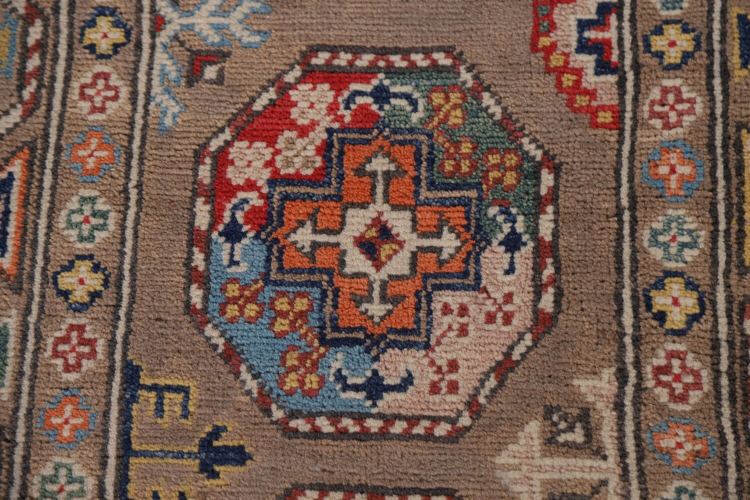 Brown Wool Kazak Oriental Runner Rug 3x9
