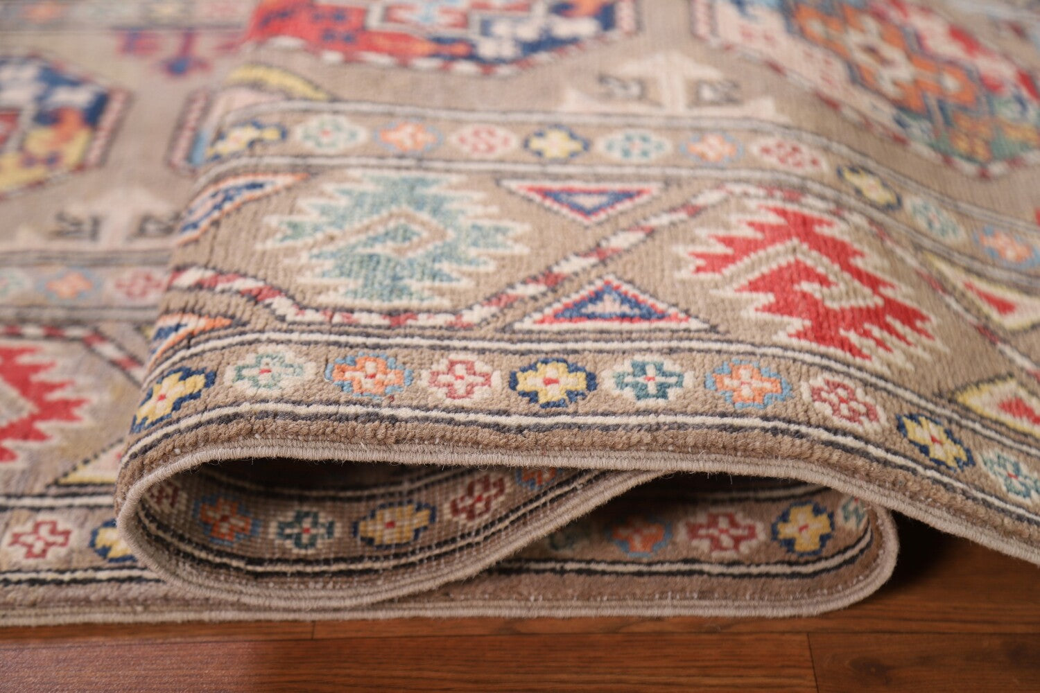 A Beautiful Genuine Pakistan Kazak rug is Hand Knotted by skillful weavers in Pakistan with 100% Wool Material. This rug is in New, First Quality condition. dimensions are 8' 8'' X 2' 7'' in foot and 264 X 79 in centimeter. the primary color is Brown.