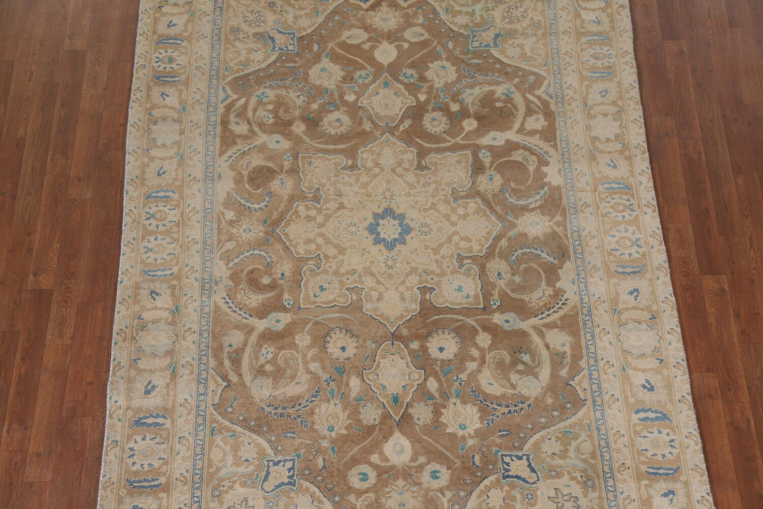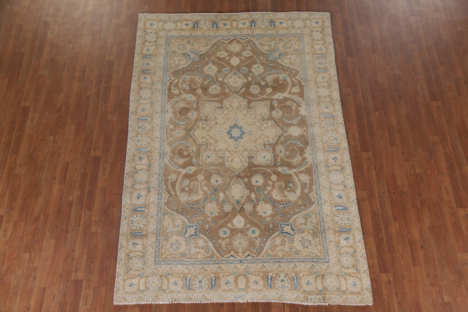 A Beautiful Genuine Persia ( Persia ) Mashad rug is Hand Knotted by skillful weavers in Persia ( Persia ) with 100% Wool Material. This rug is in Very Good (Evenly Low Pile-Repair) condition. dimensions are 9' 0'' X 6' 0'' in foot and 274 X 183 in centimeter. the primary color is Brown.