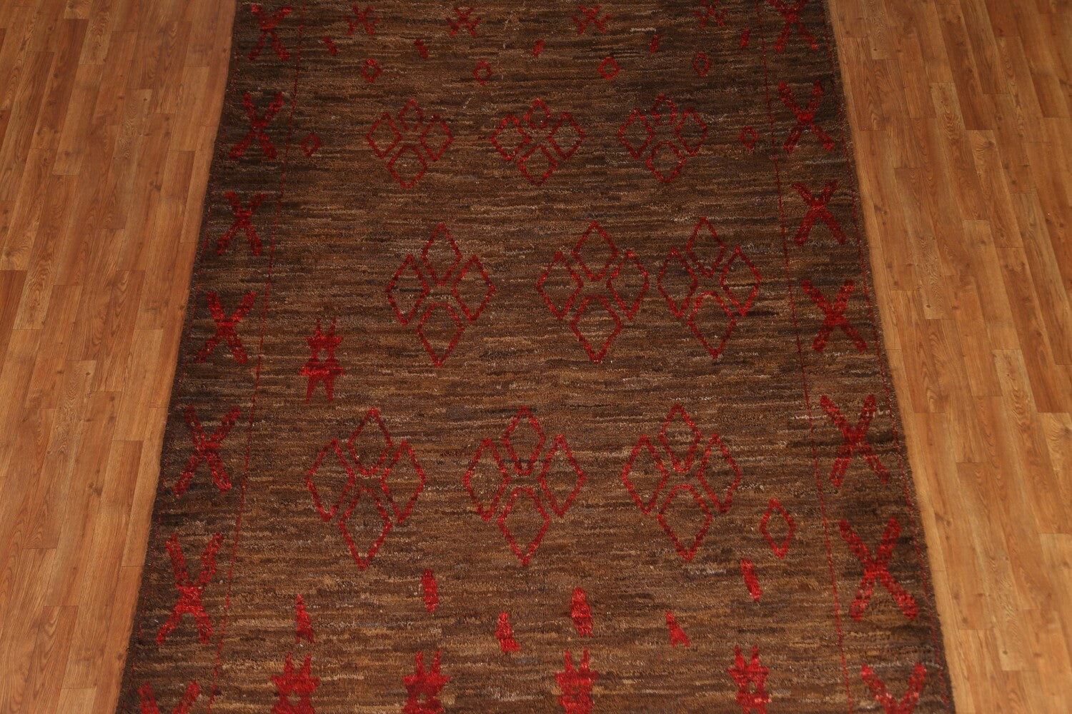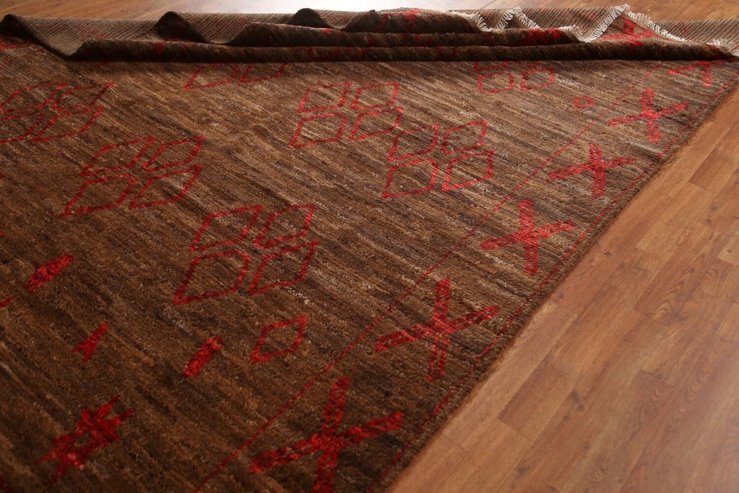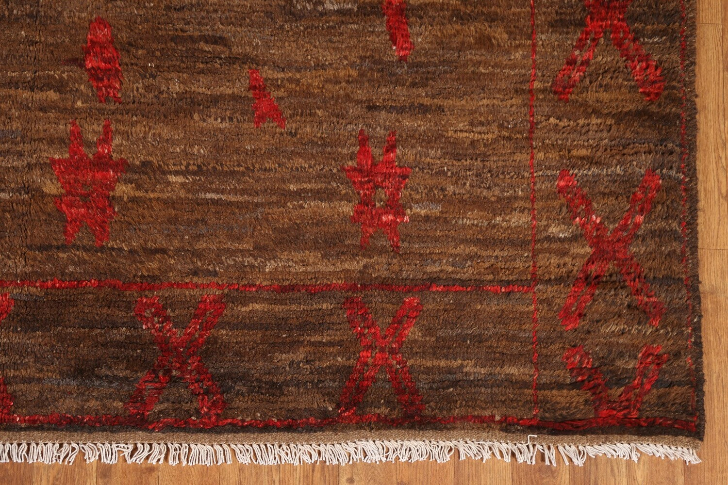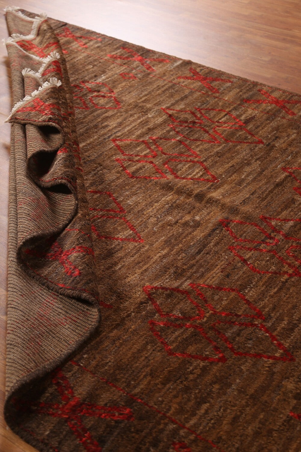 A Beautiful Genuine Pakistan Moroccan rug is Hand Knotted by skillful weavers in Pakistan with 100% Wool Material. This rug is in New, First Quality condition. dimensions are 10' 0'' X 6' 6'' in foot and 305 X 198 in centimeter. the primary color is Brown.
