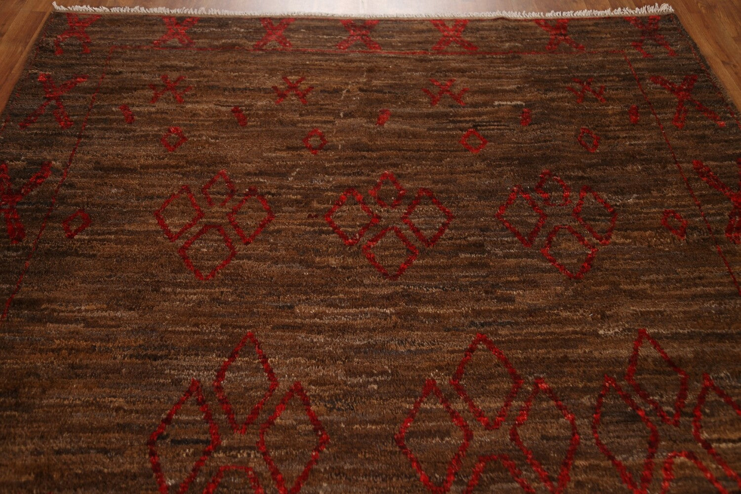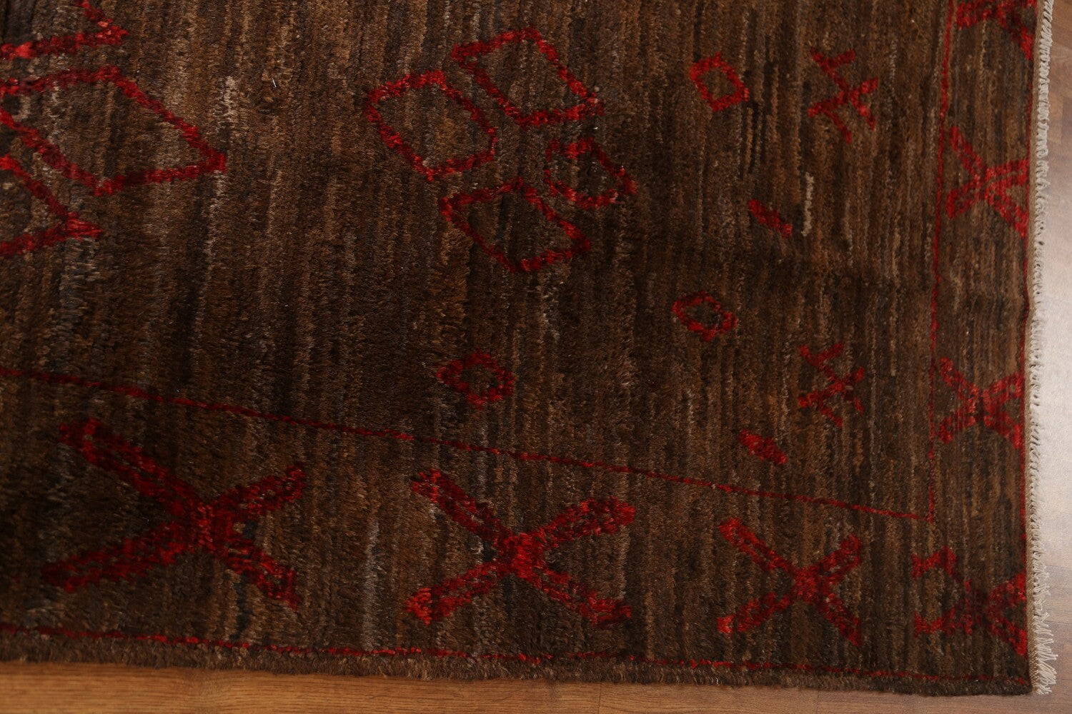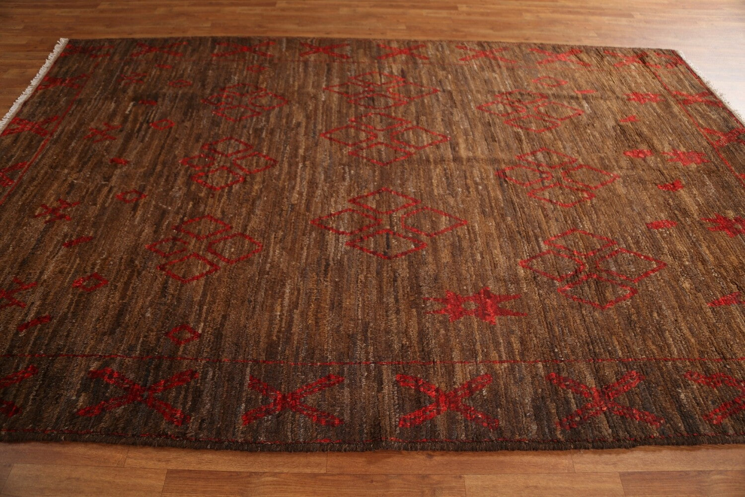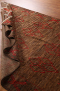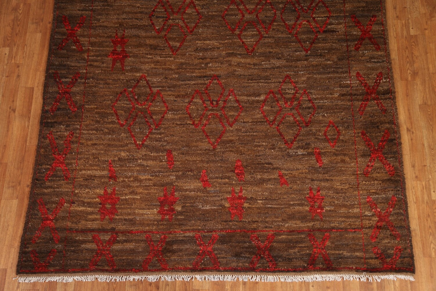A Beautiful Genuine Pakistan Moroccan rug is Hand Knotted by skillful weavers in Pakistan with 100% Wool Material. This rug is in New, First Quality condition. dimensions are 10' 0'' X 6' 6'' in foot and 305 X 198 in centimeter. the primary color is Brown.