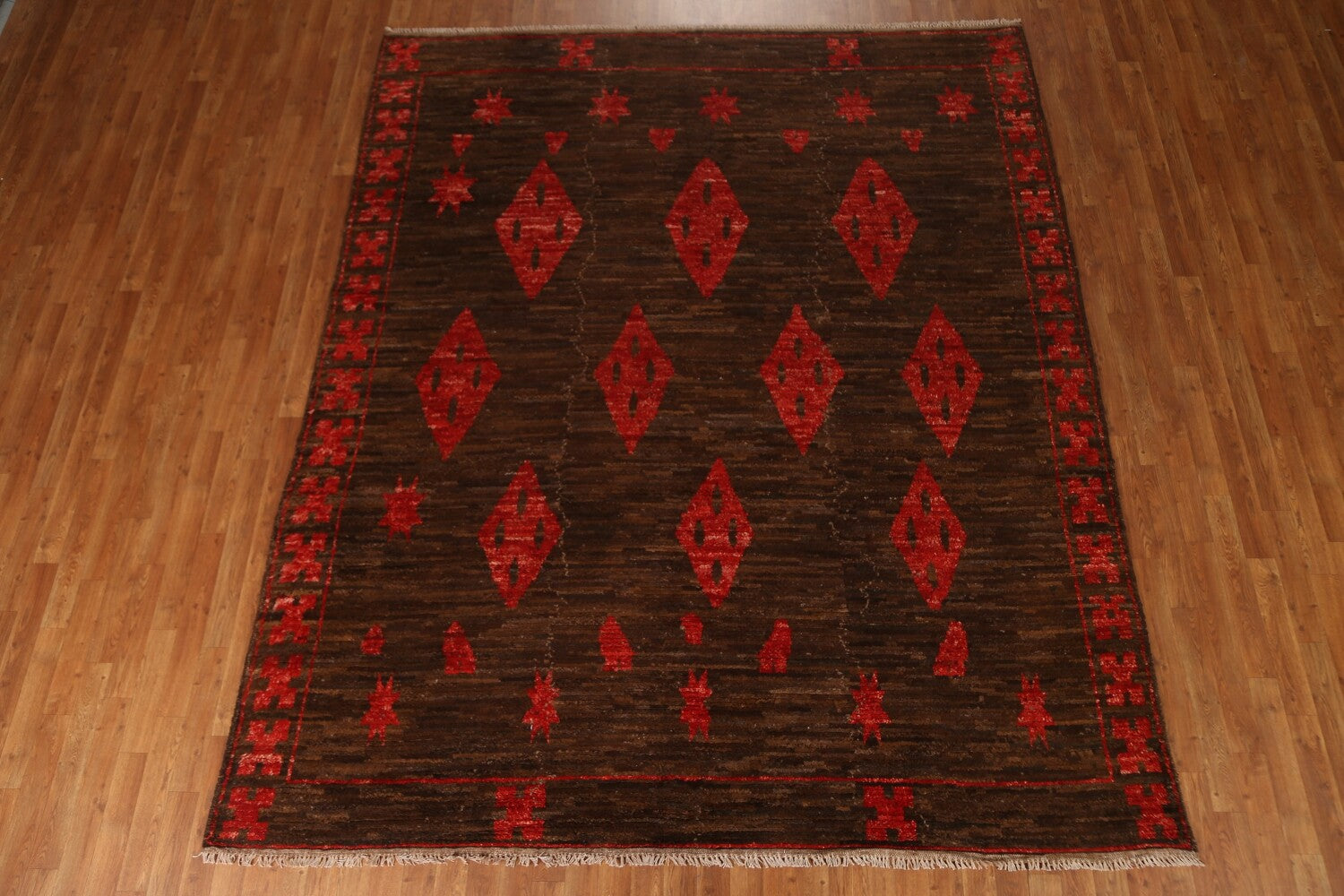Brown Wool Moroccan Oriental Area Rug 8x10