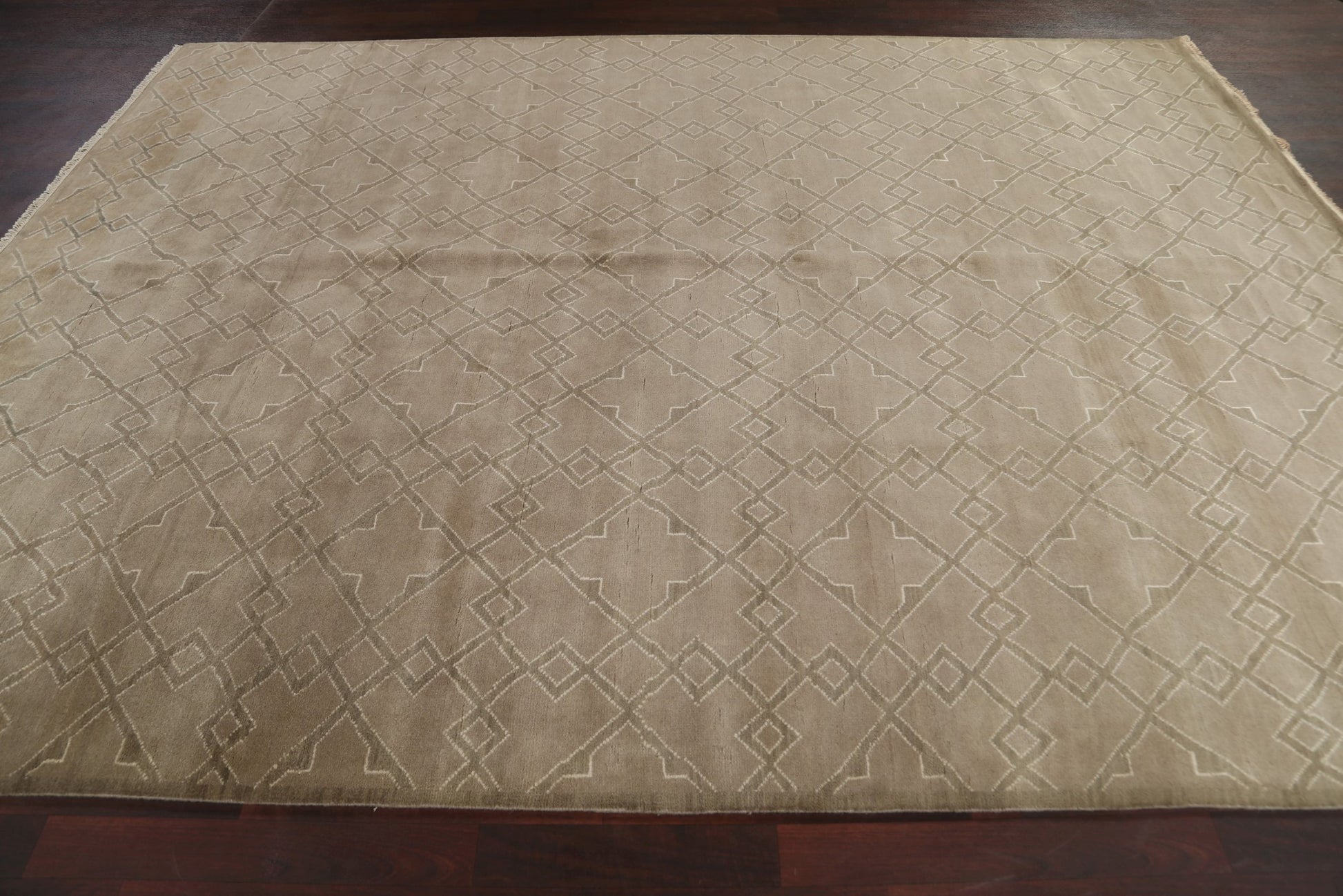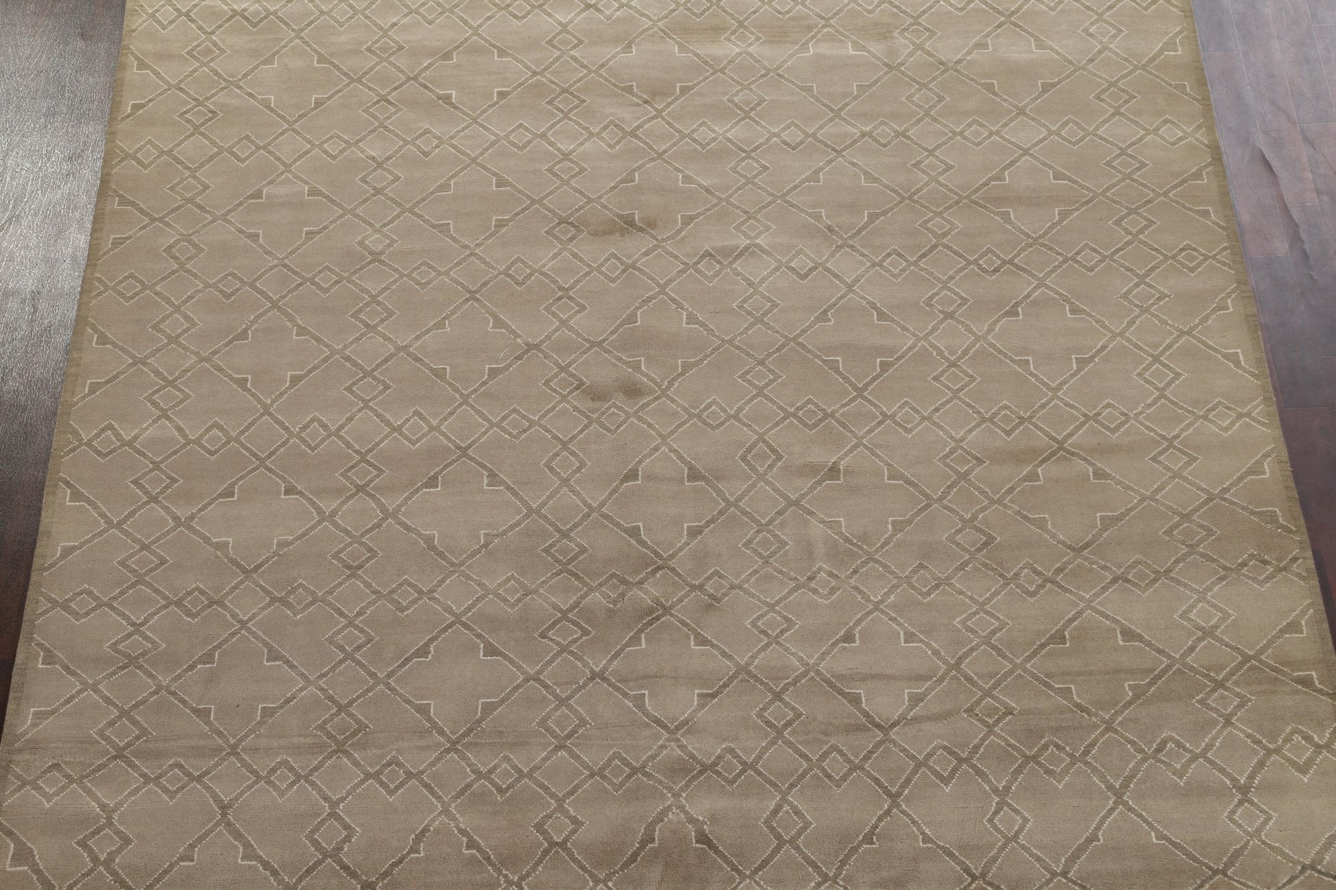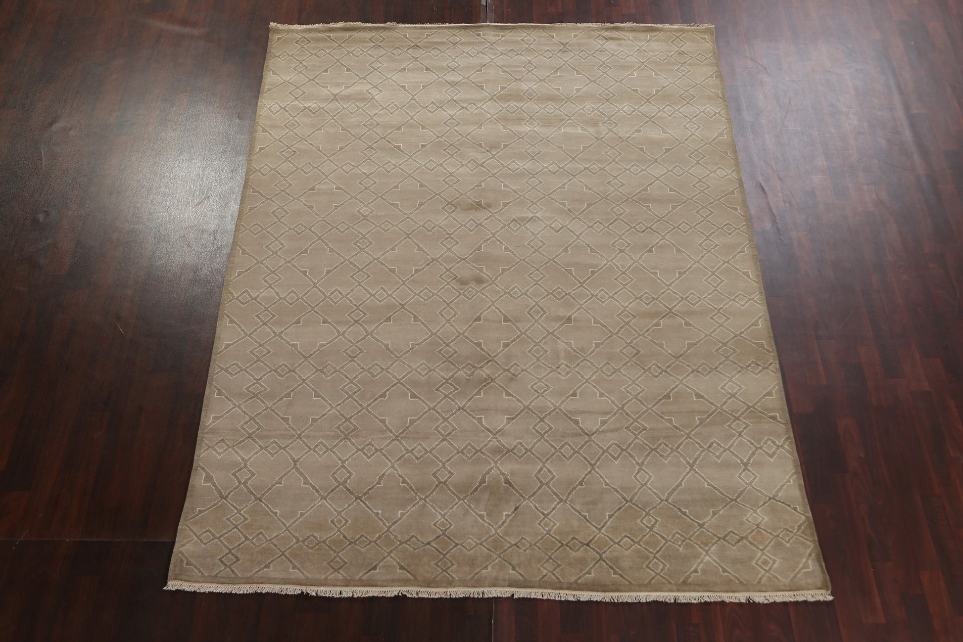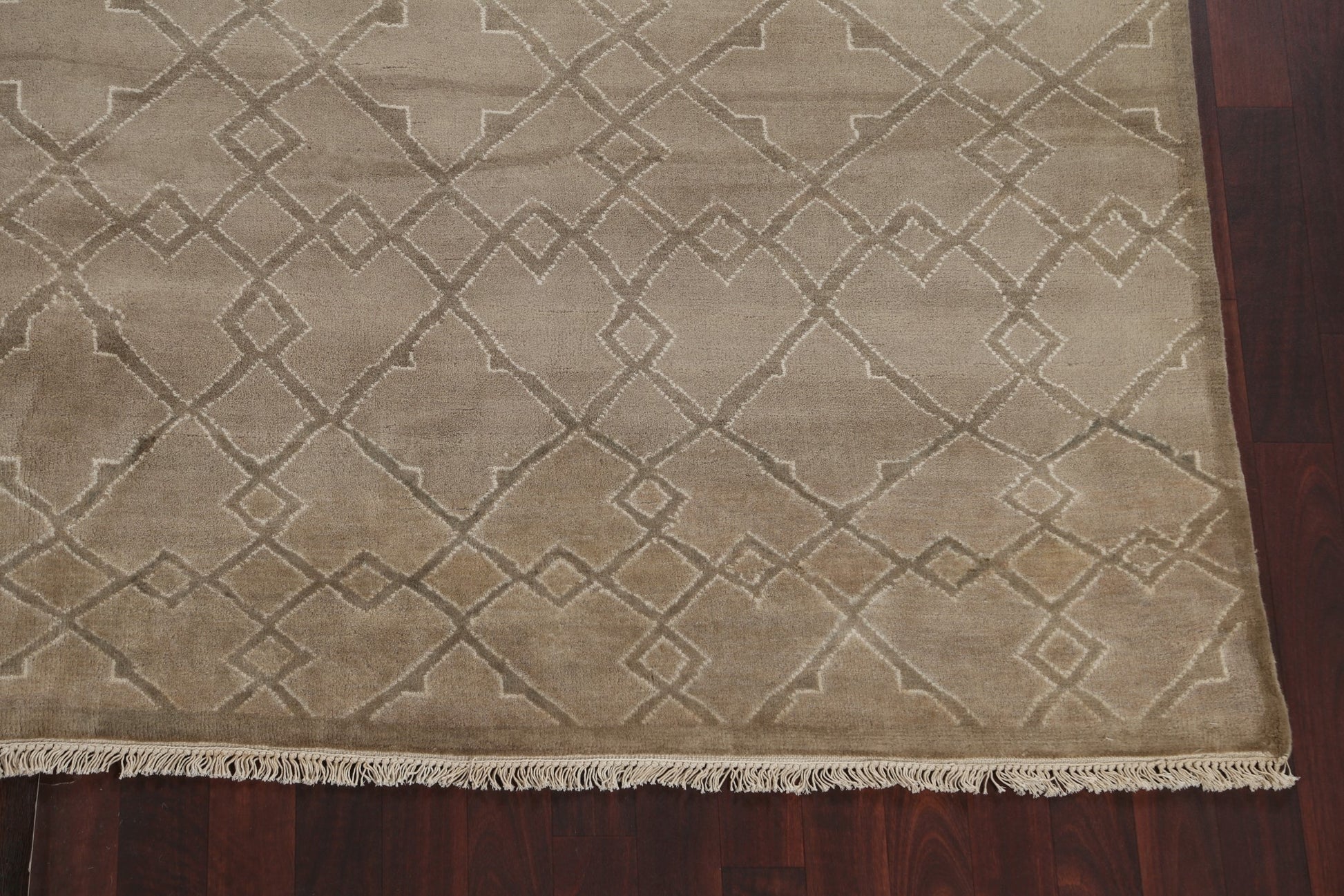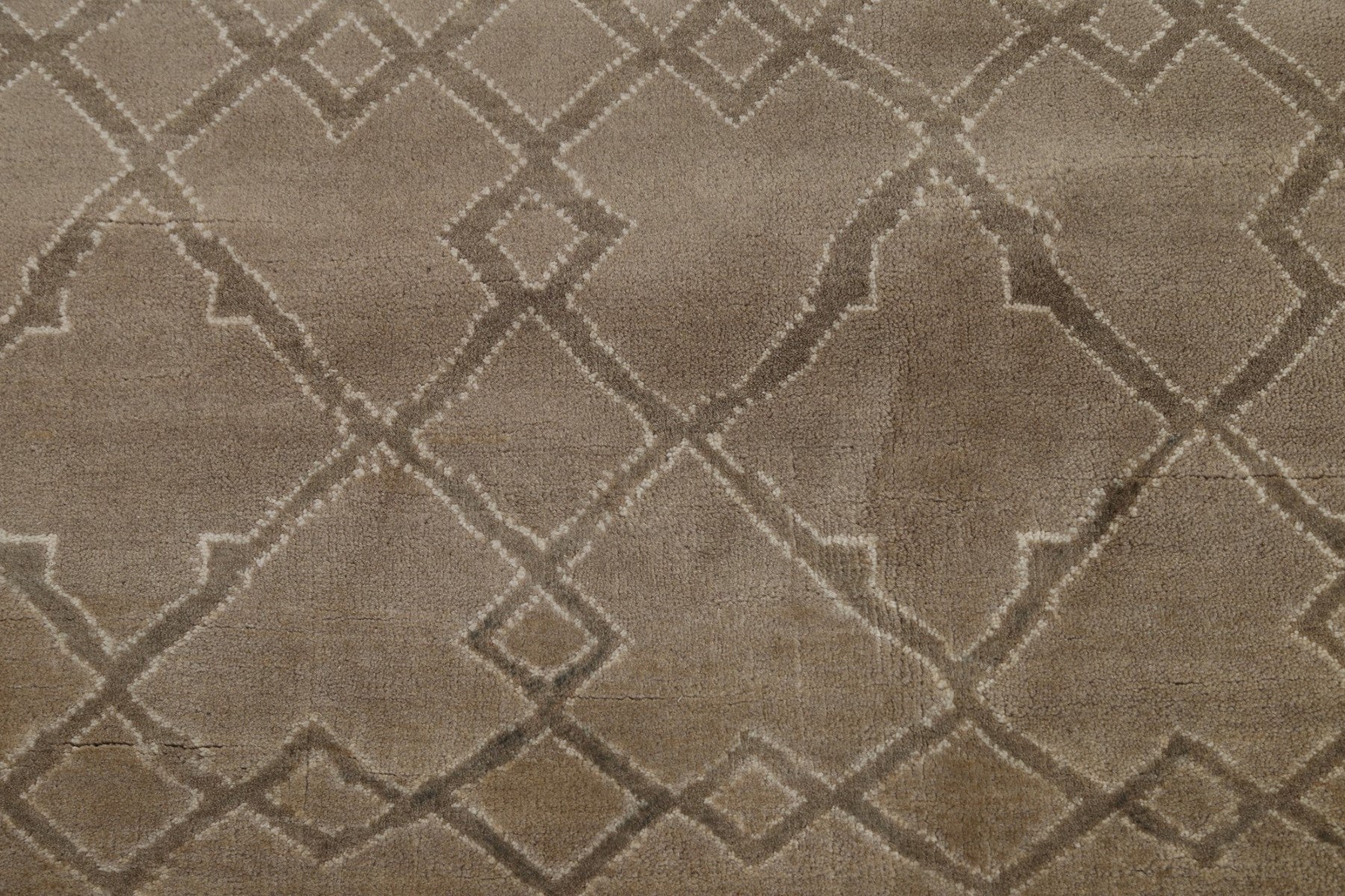 A Beautiful Genuine India Moroccan rug is Hand Knotted by skillful weavers in India with 100% Wool Material. This rug is in New, First Quality condition. dimensions are 10' 8'' X 8' 1'' in foot and 325 X 246 in centimeter. the primary color is Brown.